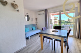 VENTE - PORT-FREJUS - Idéalement placé sur les quais de PORT-FREJUS dans une résidence de standing sécurisée, bel appartement de deux pièces principales en étage avec ascenseur. Sans aucune perte de place, il se compose d'une entrée, d'un séjour climatisé avec coin cuisine de 19,90m² prolongé par une agréable terrasse de plus de 6m², d'une chambre et d'une salle de bains avec WC. Vous apprécierez l'emplacement privilégié de cet appartement proche des plages, des commerces et des restaurants accessibles à pied.