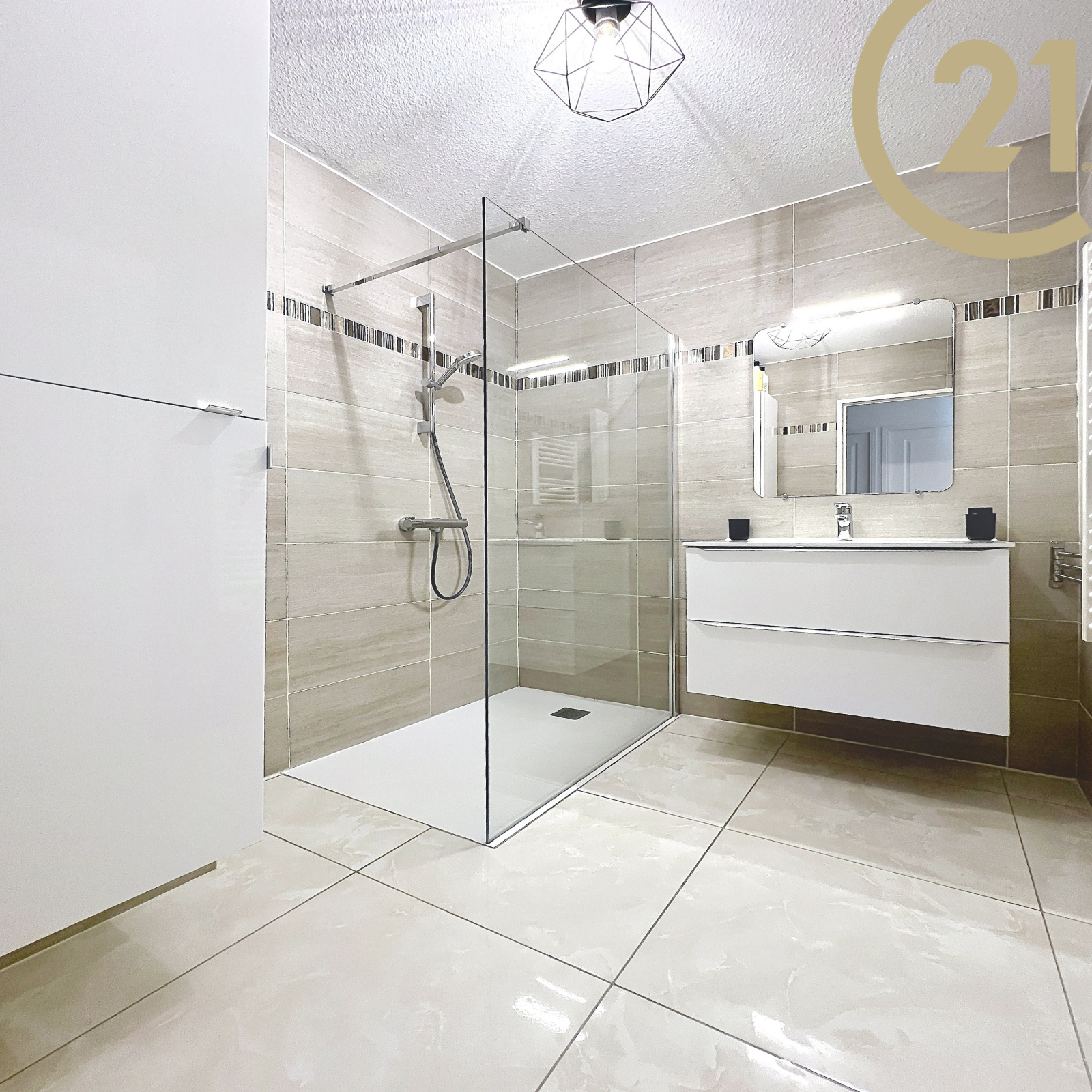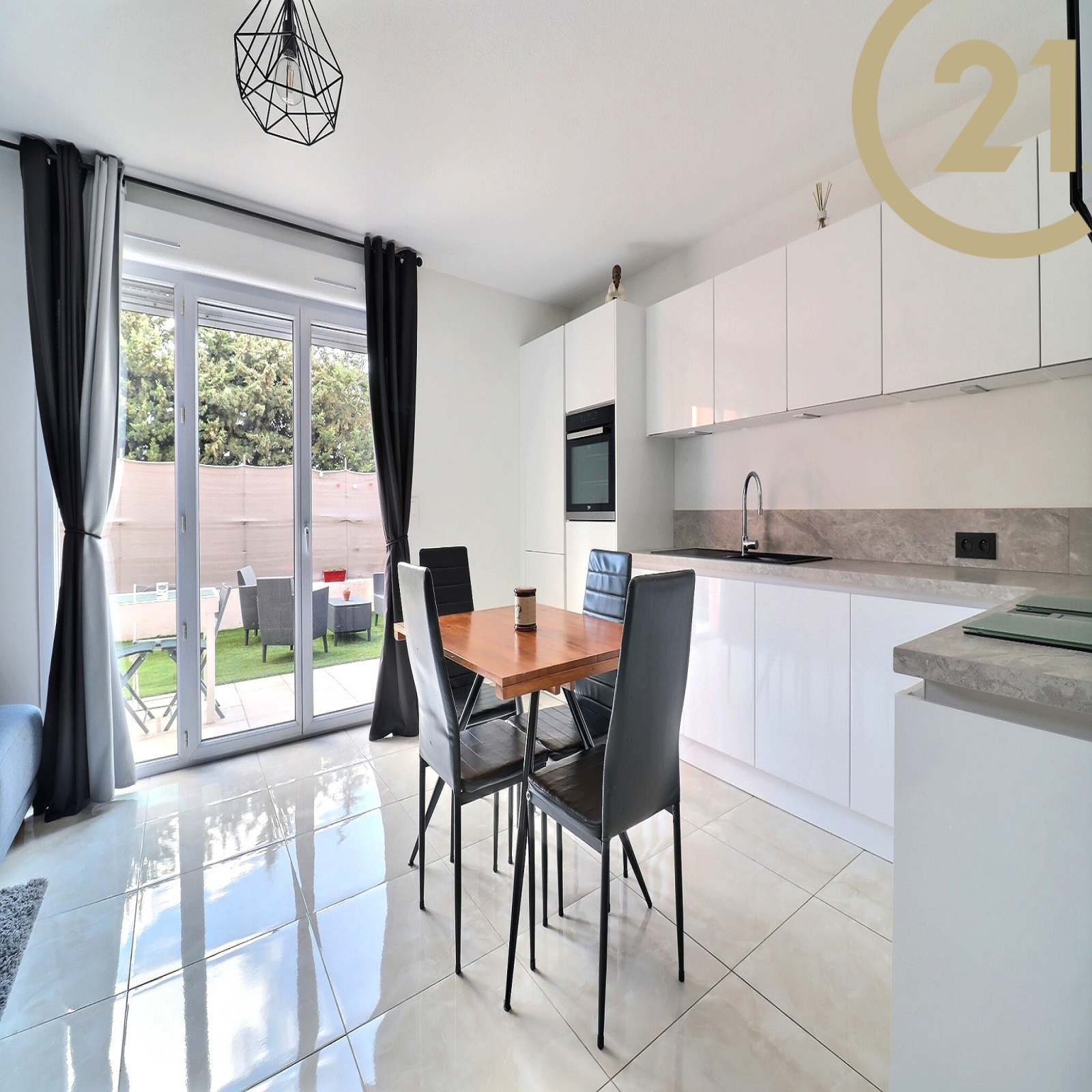 EXCLUSIVITE FREJUS - Bel appartement 3 pièces traversant de 61,89 m² situé en rez-de-jardin dans une résidence sécurisée et soigneusement entretenue à proximité immédiate du centre-ville et de toutes les commodités. Cet appartement rénové avec goût et en parfait état offre une entrée avec cellier/buanderie, un séjour avec cuisine ouverte entièrement équipée donnant sur une terrasse et un jardin, deux chambres avec placards, une salle d'eau dotée d'une grande douche et des WC séparés avec lave-mains. Une place de parking privative est vendue avec l'appartement. Etablissements scolaires, tous commerces et centre-ville accessibles en quelques minutes à pied. Copropriété de 51 lots principaux et 93 lots secondaires. Charges annuelles : 1362 €