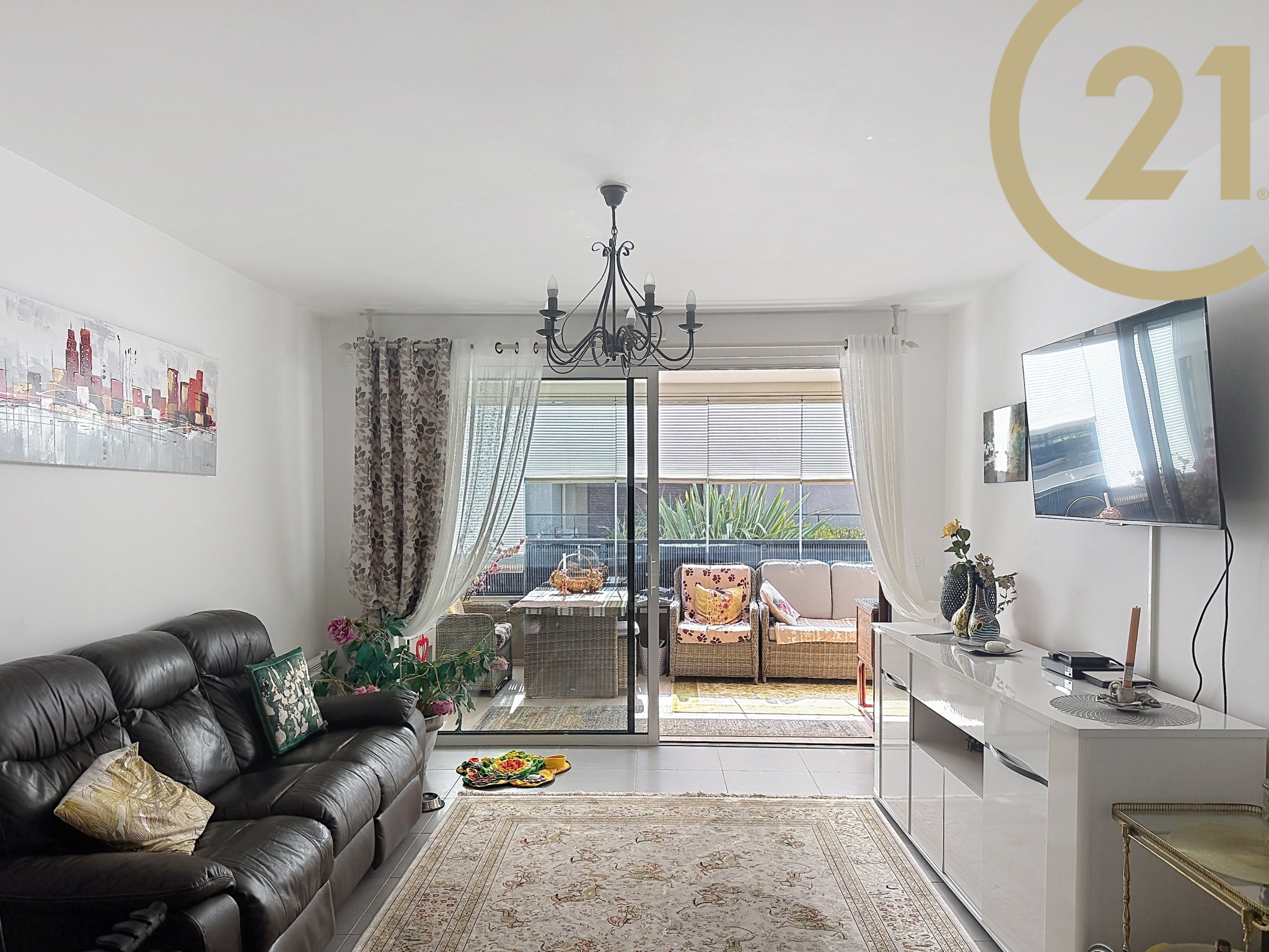 La pièce de vie, conviviale et bien agencée, s’articule autour d’un séjour avec cuisine ouverte, aménagée et équipée. Elle s’ouvre directement sur une belle terrasse véranda, véritable prolongement de l’espace de vie, idéale pour profiter d’un espace supplémentaire en toute saison.
