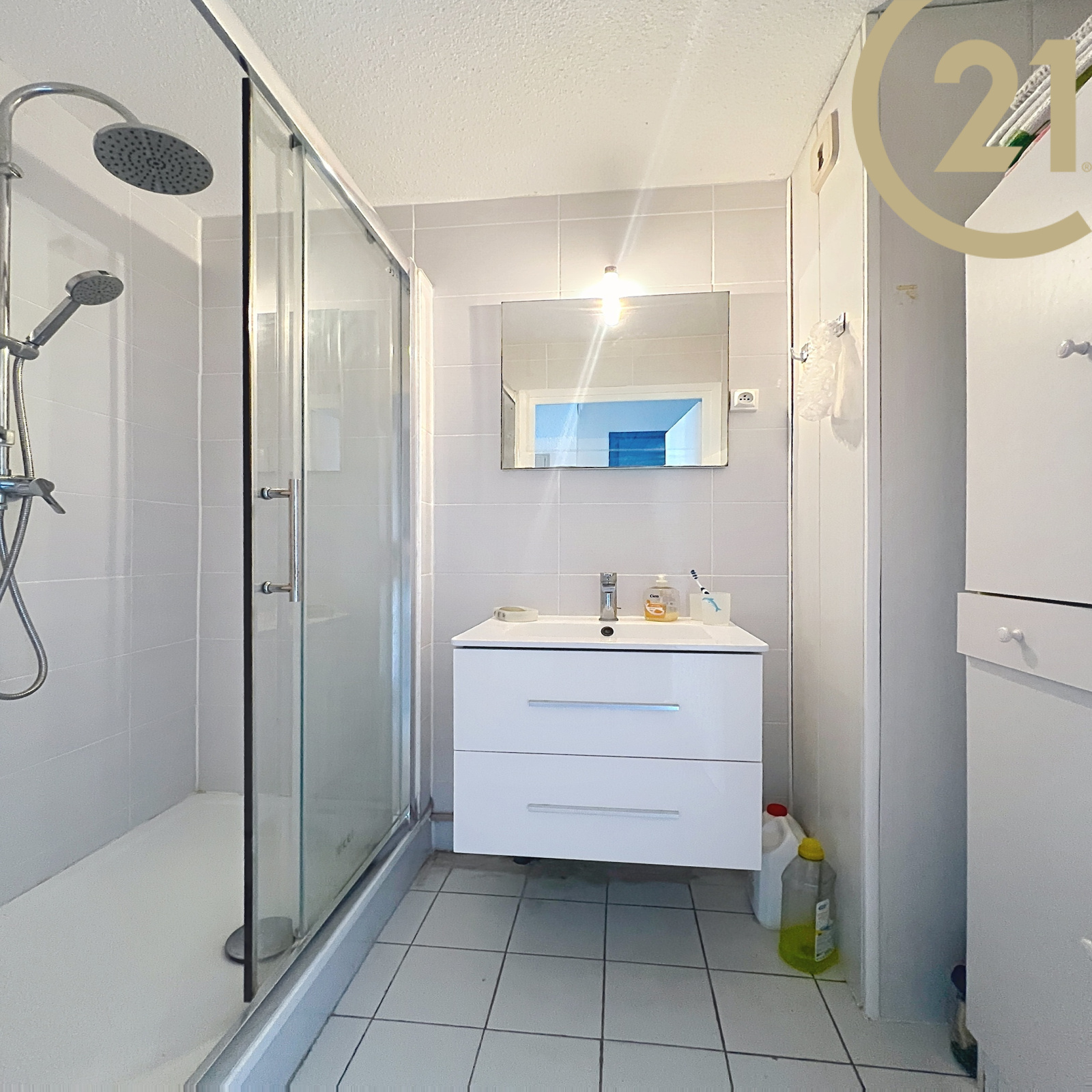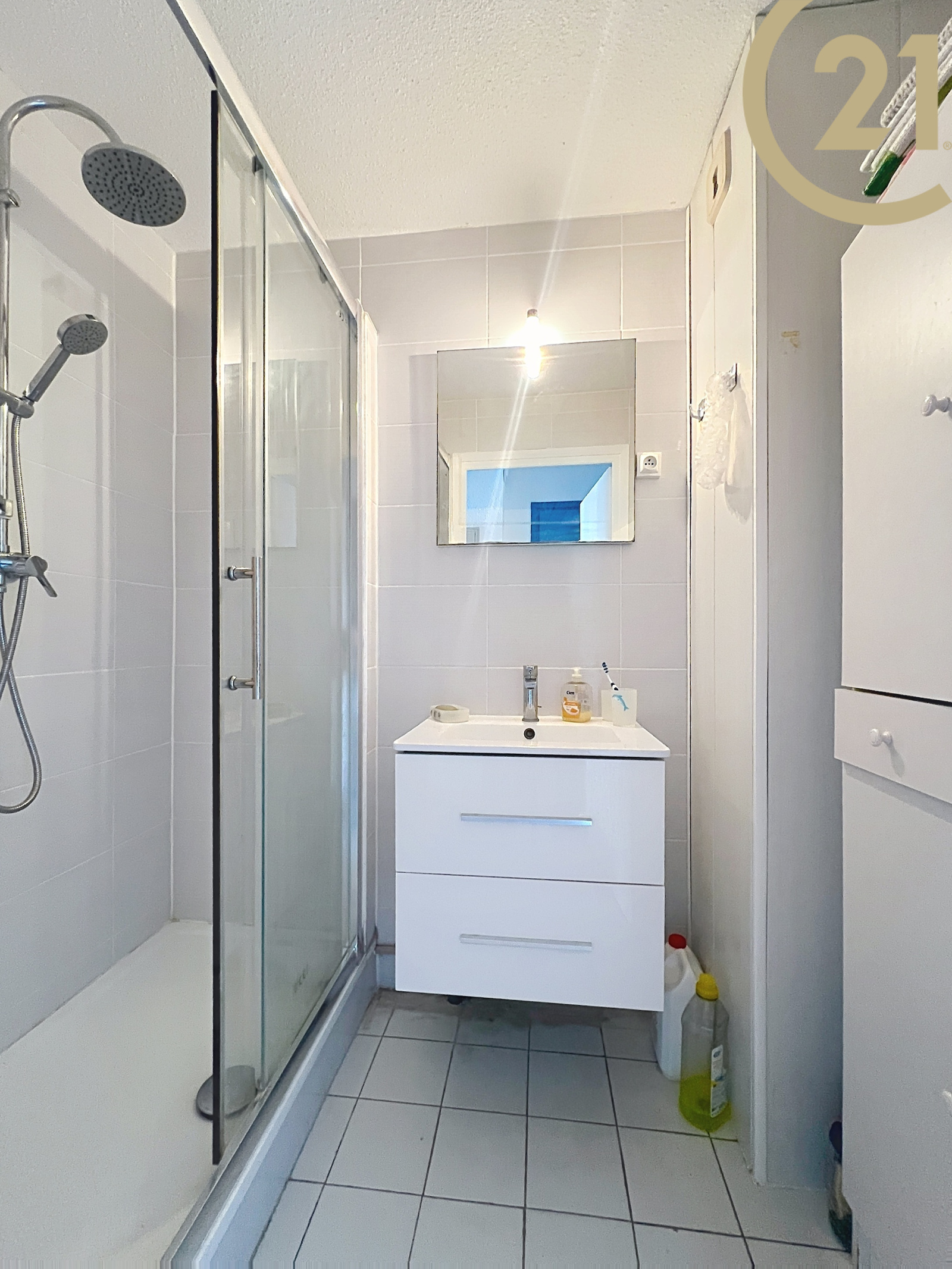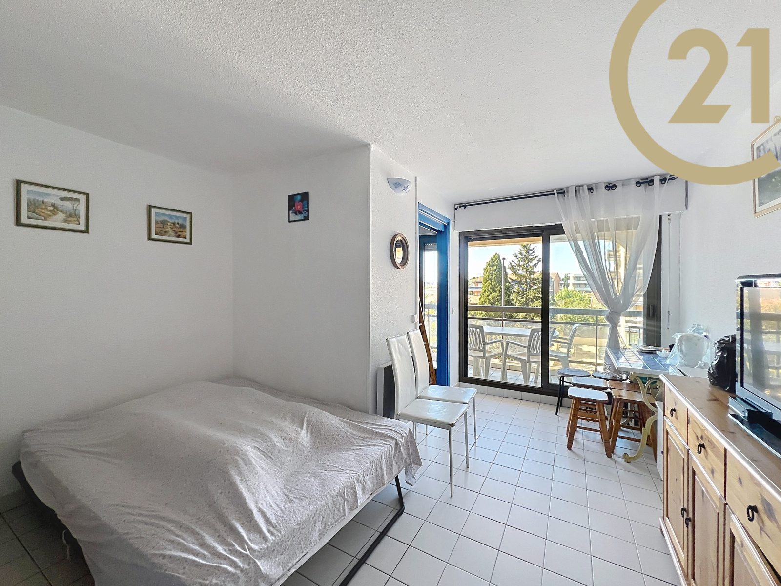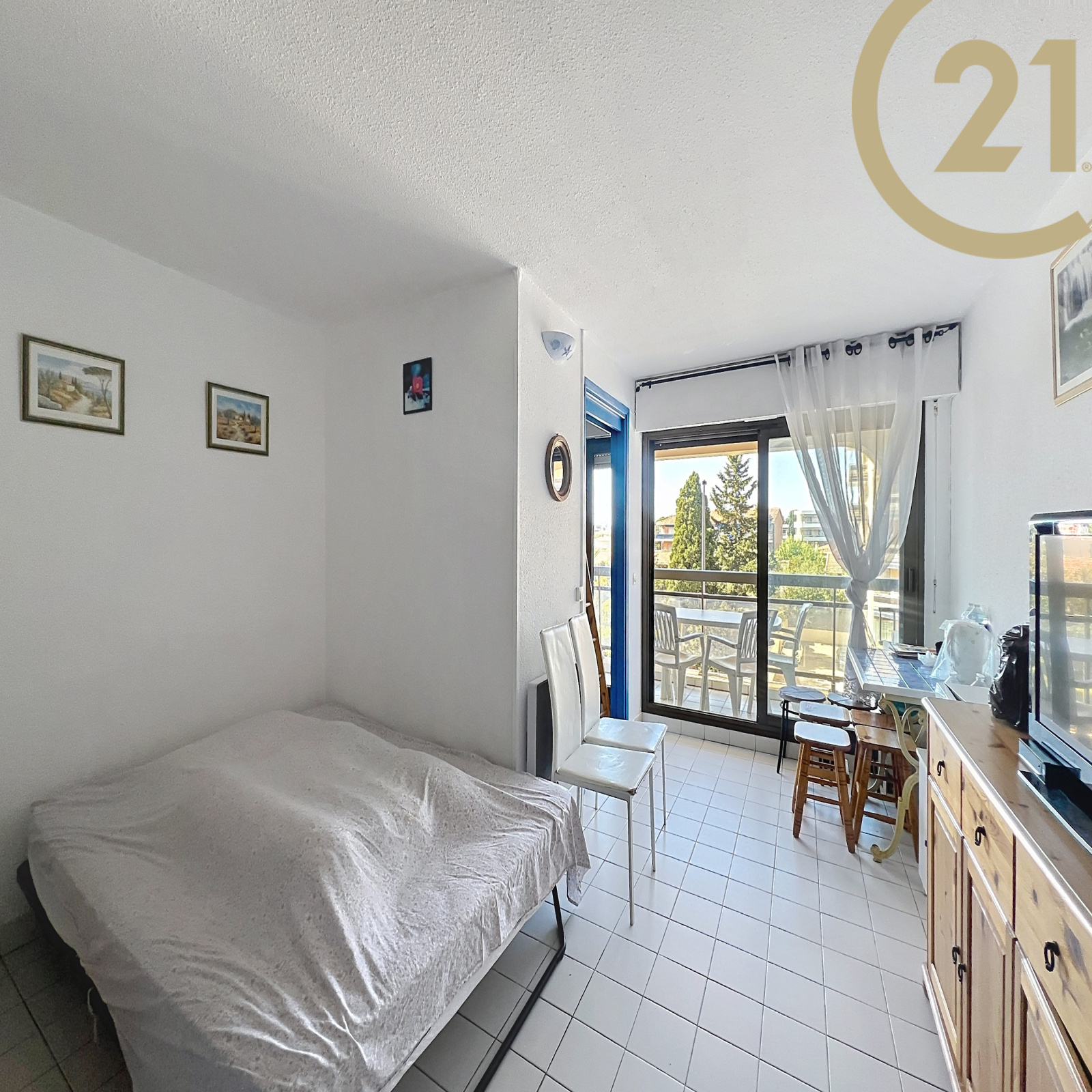 Ce studio bien agencé offre une entrée, un séjour donnant sur une terrasse, un coin cabine, une kitchenette, une salle d'eau moderne et un WC indépendant. Vendu meublé.
