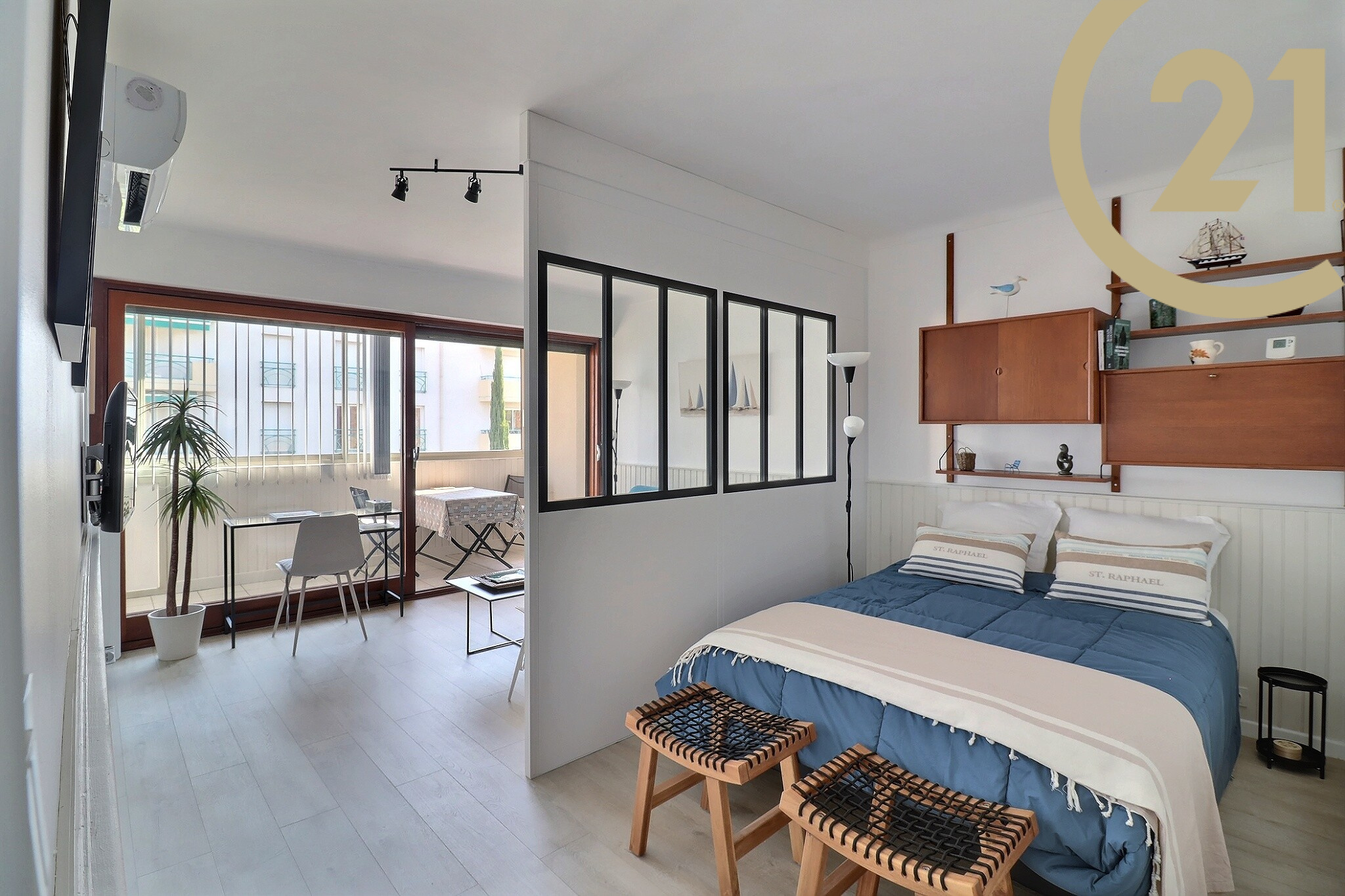 FREJUS BASE NATURE - Idéalement situé dans une impasse au calme absolu, au pied de la base nature et des plages, dans une petite copropriété de 15 lots, nous vous proposons ce studio avec coin nuit au 2ème et dernier étage sans ascenseur. Il vous offre : une entrée, une grande pièce de vie lumineuse avec coin nuit, une loggia de 9m² ensoleillée, une cuisine rénovée, une salle de bains et un WC indépendant. Une place de parking privative complète le lot. L'appartement a été rénové, vous n'avez plus qu'à poser vos valises !
