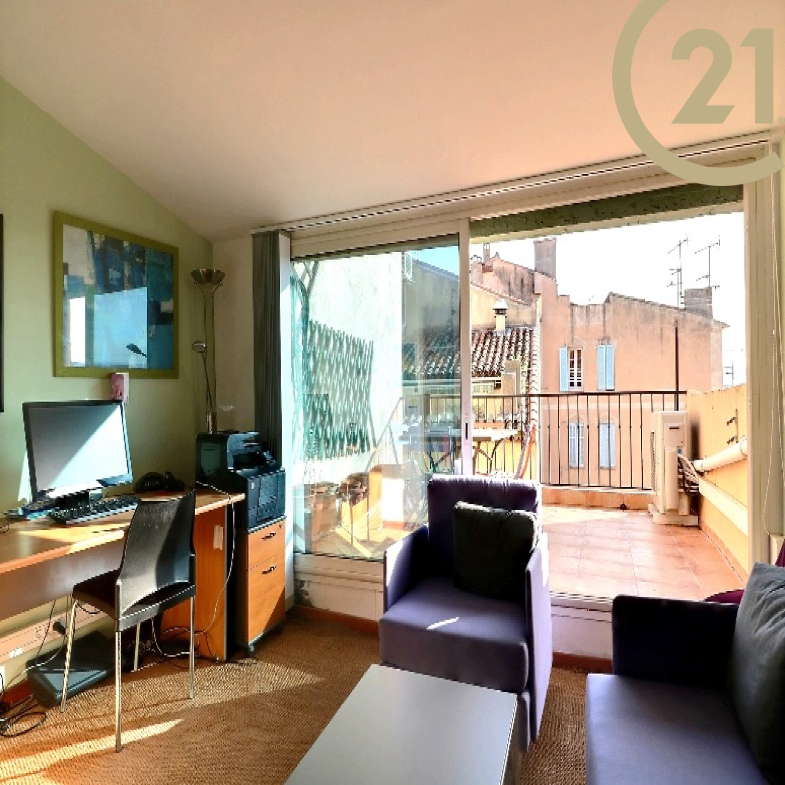 EXCLUSIVITE - FREJUS CENTRE - Jolie maison 4 pièces avec terrasse tropézienne située dans à l'angle d'une rue calme au coeur du centre historique de Fréjus. Cette jolie maison rénovée de 88,48 m² offre un espace séjour / cuisine au rez-de-chaussée avec WC et coin buanderie (possibilité de créer une salle d'eau), une grande pièce de plus de 25 m² au premier étage, une pièce de 21 m² au deuxième étage avec salle de bain et WC et un plateau au dernier étage donnant sur une spacieuse terrasse tropézienne carrelée bénéficiant d'une jolie vue dégagée jusqu'à la mer. Double vitrage et climatisation dans toutes les pièces et tableau électrique neuf. Parking public gratuit le soir situé à 3 minutes à pied. Ce bien offre un environnement très calme à quelques mètres seulement de la place de la mairie, de sa magnifique cathédrale classée monument historique, de tous les commerces et des écoles. Aucune charge de copropriété.