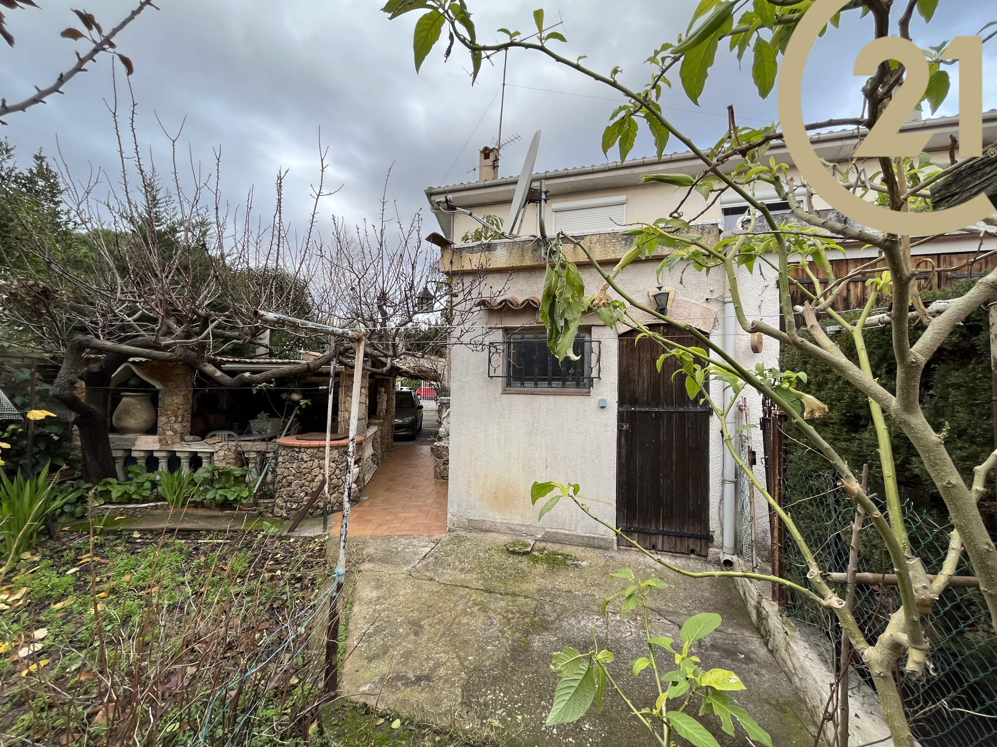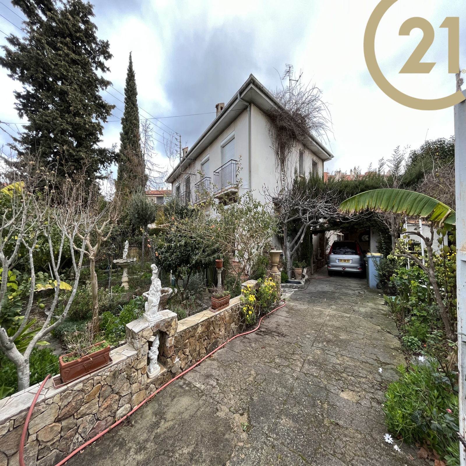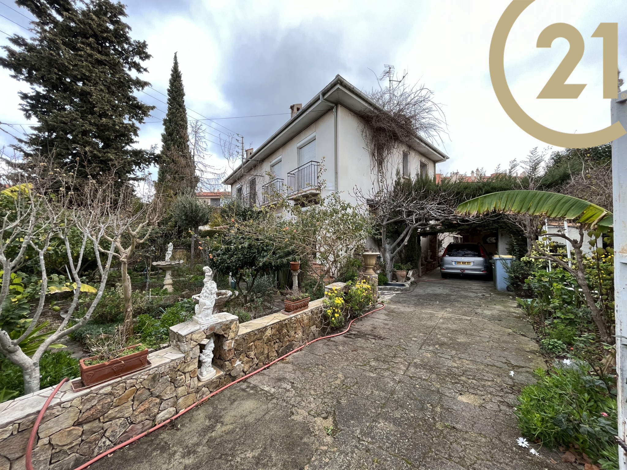 FREJUS - Maison mitoyenne d'un coté édifiée sur un agréable jardin d'environs 350 m2 à proximité de tous les commerces, des plages et du centre ville.Elle se compose d'une entrée sur cuisine indépendante, d'un séjour avec deux ouvertures sur l'extérieur, d'un WC indépendant, d'un espace buanderie et atelier. A l'étage, elle offre trois chambres, une salle de bains et un WC indépendant. Beau jardin plat et arboré, plusieurs espaces détente complété par un abri voiture et un atelier.Possibilité de stationner deux véhicules dans la propriété.