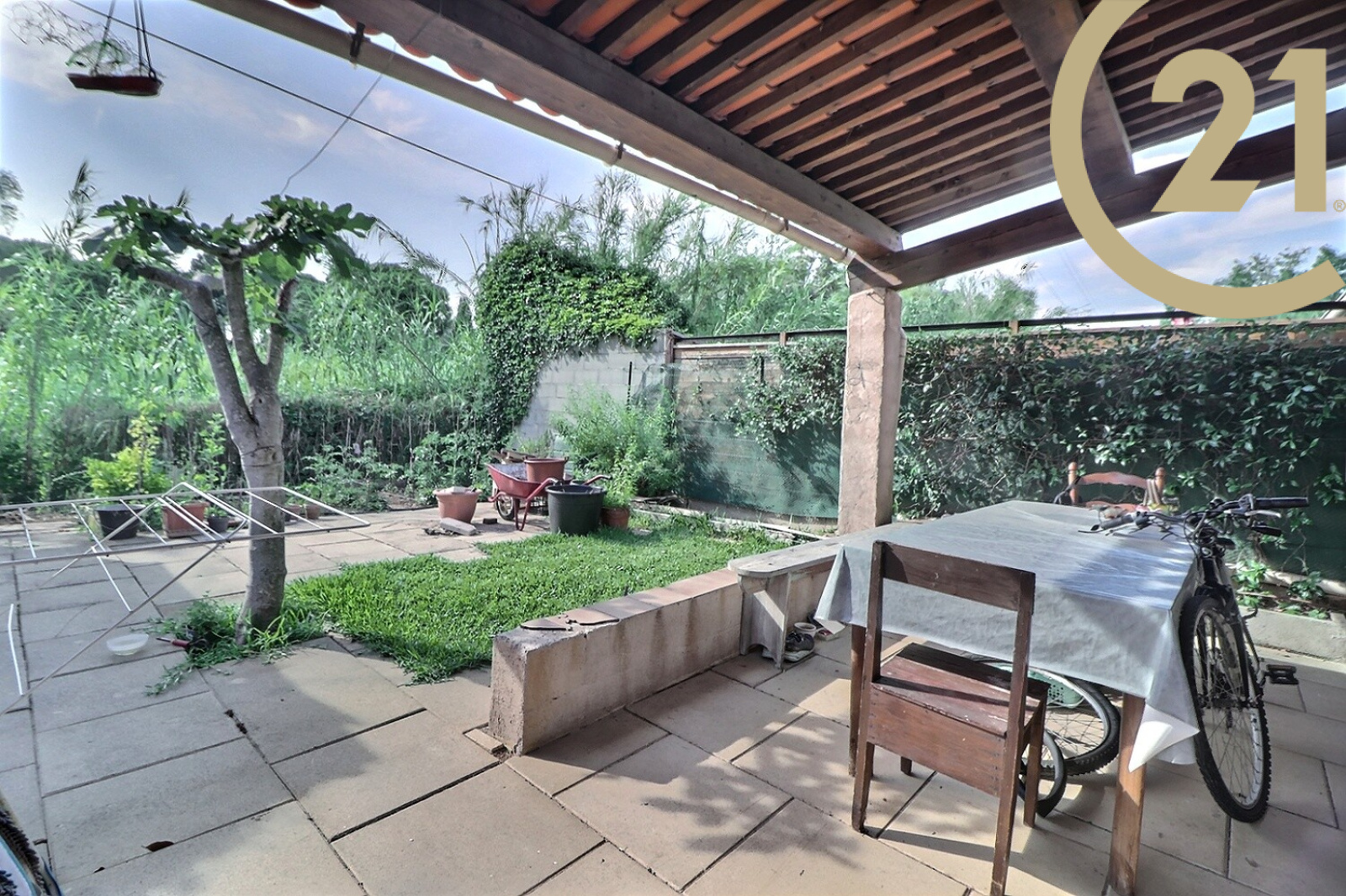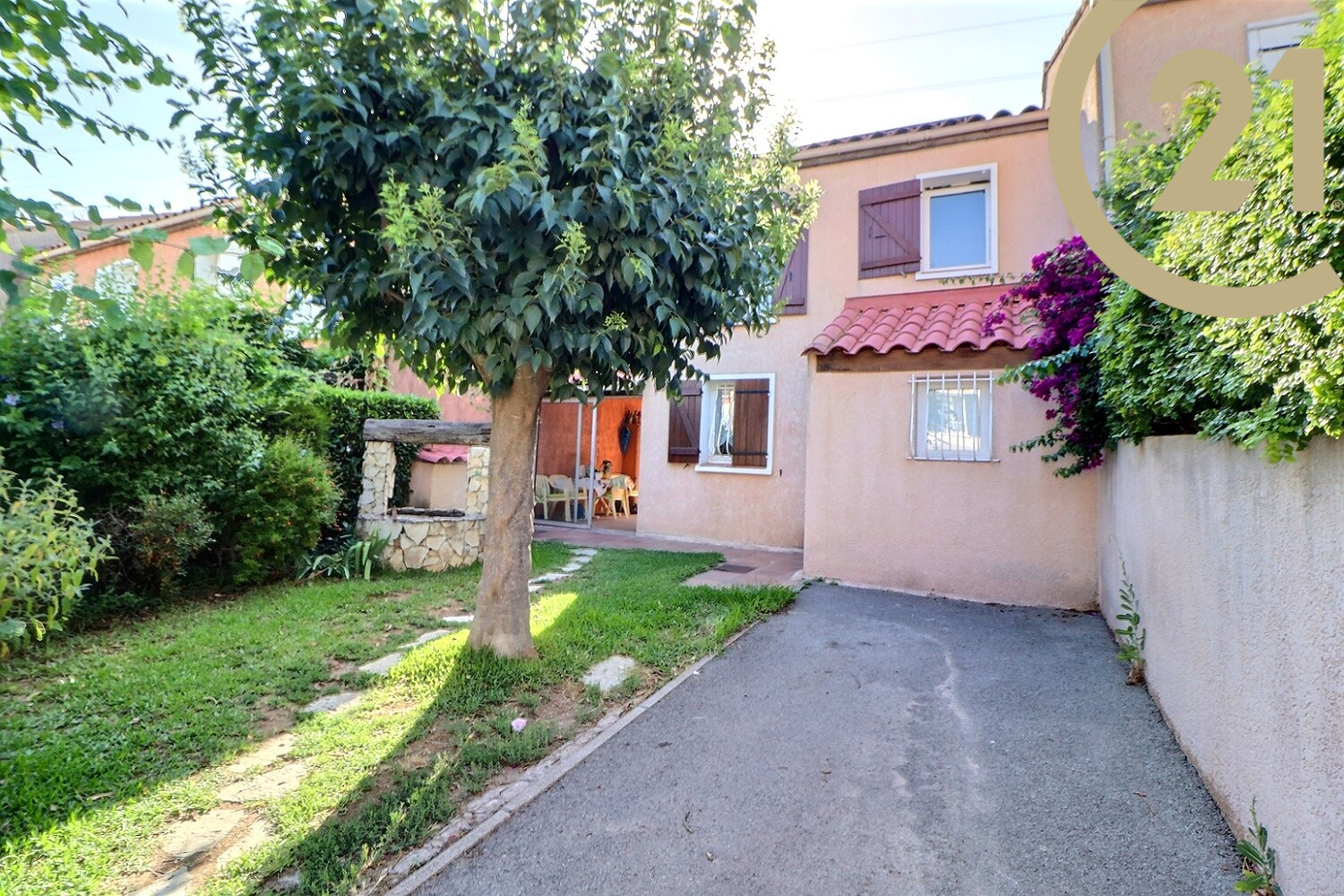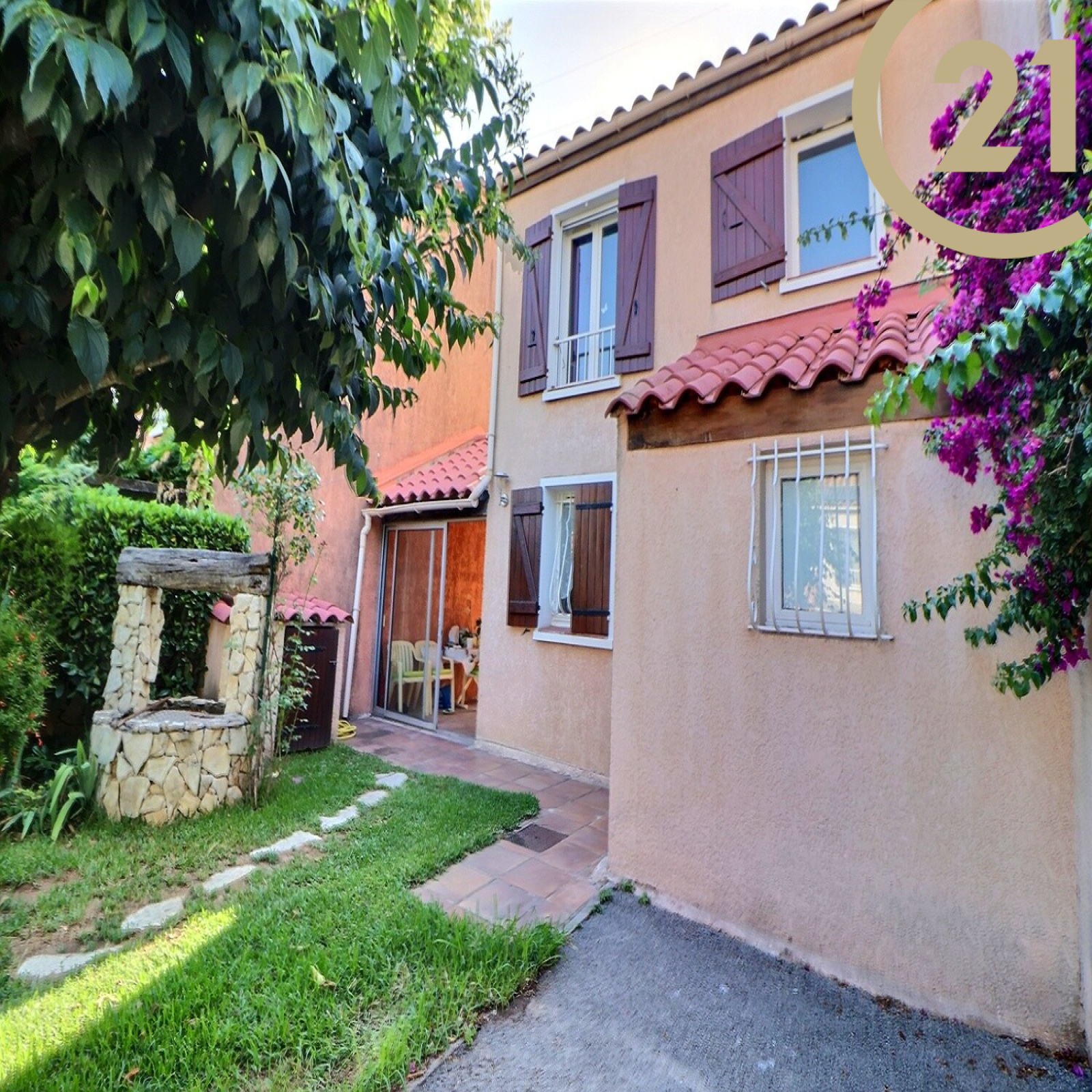 EXCLUSIVITE FREJUS, à proximité du centre-ville, des commerces et des écoles. Cette maison mitoyenne de 4 pièces d'une superficie de 89 m² est située en zone inondable. Au RDC : vous trouverez un séjour, une cuisine, une salle d'eau avec WC, un cellier offrant de nombreux rangements, une véranda et un abri de jardin; le tout implanté sur un terrain arboré de 145 m². Au 1er étage : vous trouverez trois chambres, une salle de bains et un WC indépendant. Au second, se trouve une mezzanine pouvant faire office d'une pièce supplémentaire ou d'un espace de stockage et de rangements. Le jardin est exposé ouest et bénéficie d'une vue sur la verdure au calme. Possibilité de garer un véhicule à l'intérieur et un autre devant la maison. Plusieurs places de parking visiteurs dans la copropriété. Le toit de la maison est équipé de panneaux solaires.