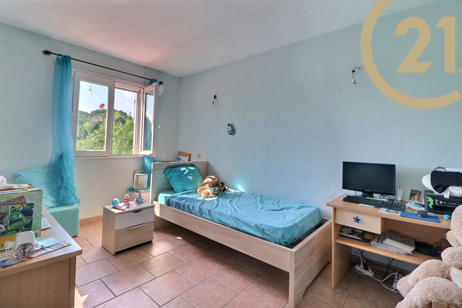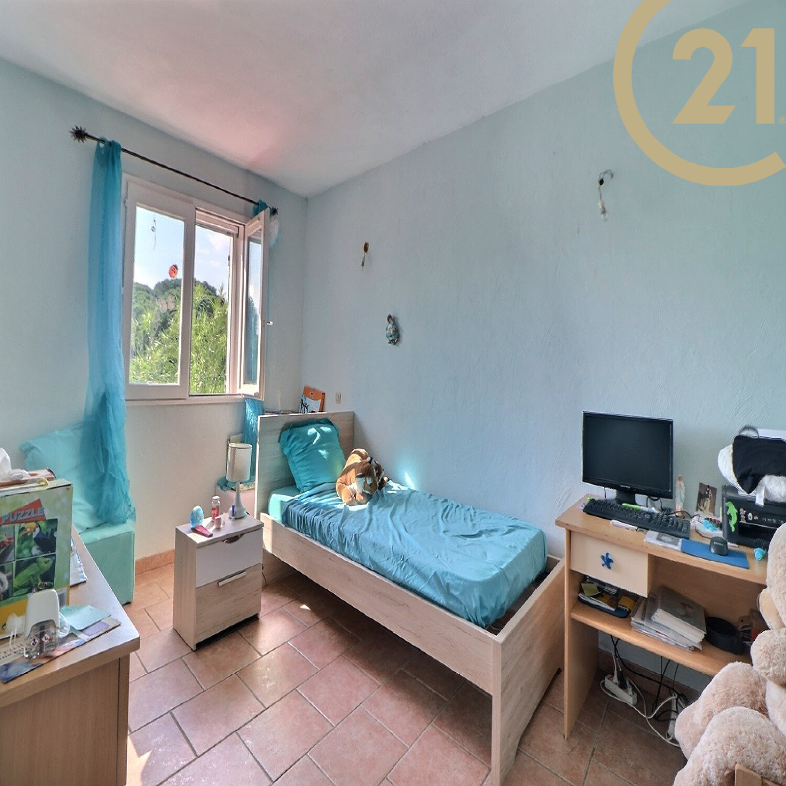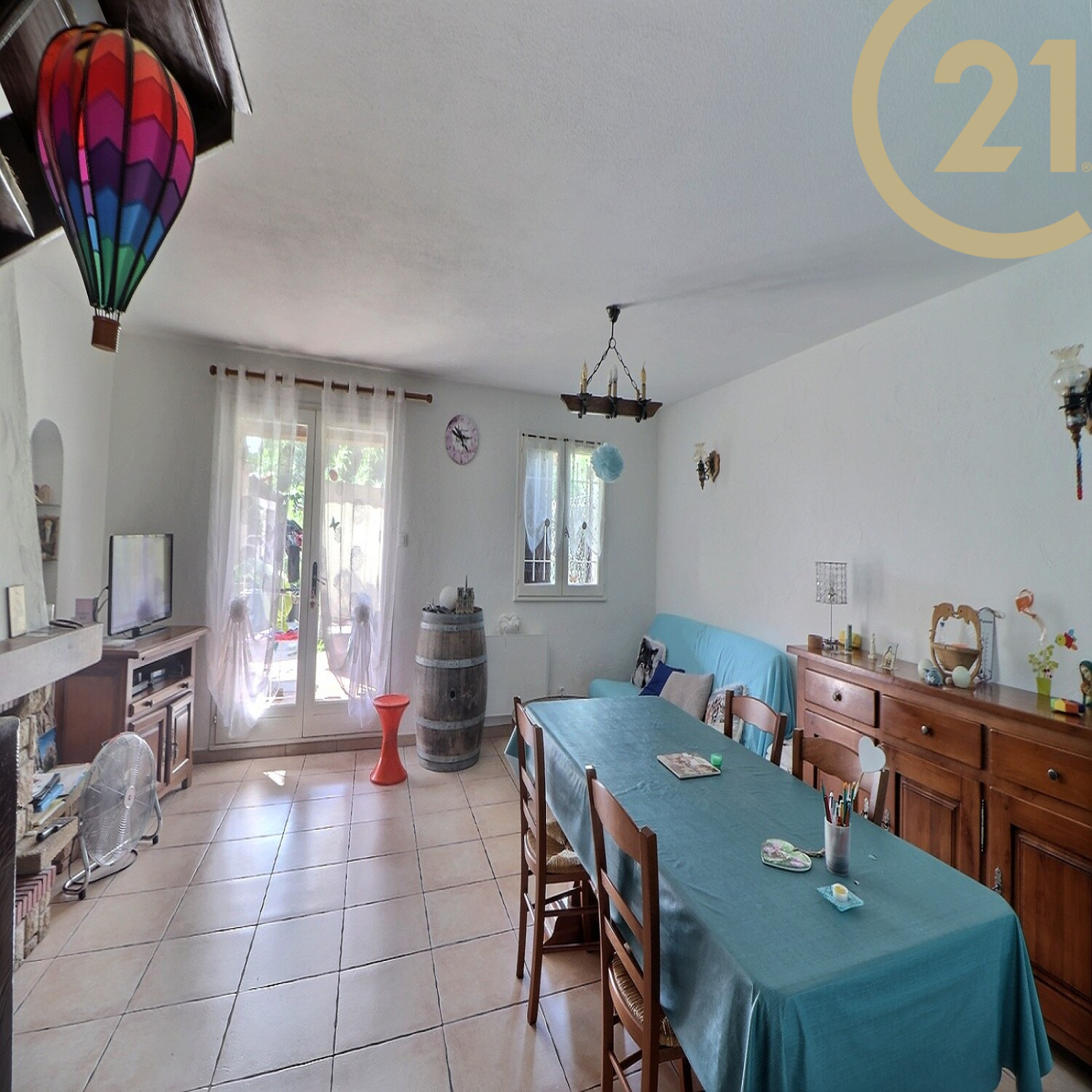 EXCLUSIVITE FREJUS, à proximité du centre-ville, des commerces et des écoles. Cette maison mitoyenne de 4 pièces d'une superficie de 89 m² est située en zone inondable. Au RDC : vous trouverez un séjour, une cuisine, une salle d'eau avec WC, un cellier offrant de nombreux rangements, une véranda et un abri de jardin; le tout implanté sur un terrain arboré de 145 m². Au 1er étage : vous trouverez trois chambres, une salle de bains et un WC indépendant. Au second, se trouve une mezzanine pouvant faire office d'une pièce supplémentaire ou d'un espace de stockage et de rangements. Le jardin est exposé ouest et bénéficie d'une vue sur la verdure au calme. Possibilité de garer un véhicule à l'intérieur et un autre devant la maison. Plusieurs places de parking visiteurs dans la copropriété. Le toit de la maison est équipé de panneaux solaires.