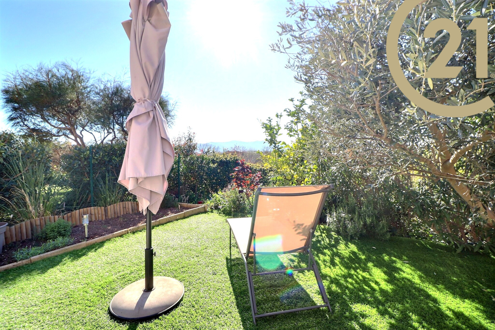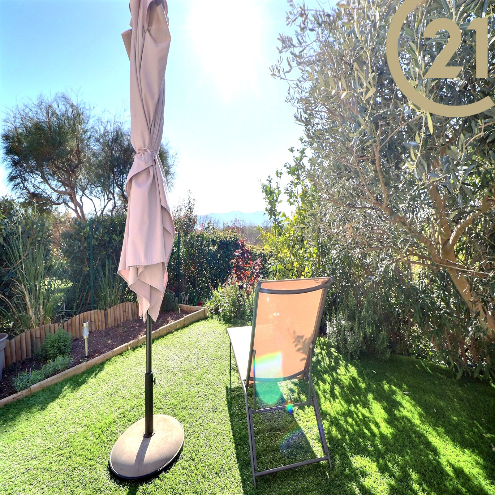 Beau jardin arboré de 44,30 m² exposé Ouest avec vue dégagée sur le Rocher de Roquebrune et terrasse de 16,50 m².
