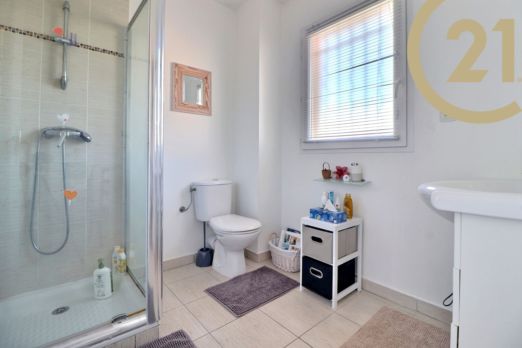 EXCLUSIVITE FREJUS - Dans un domaine sécurisé, découvrez cette villa 4 pièces de 84,64 m² de construction récente (2011). Elle est composée de plain-pied : d'une entrée avec placard, d'un beau séjour avec cuisine US aménagée et équipée s'ouvrant sur le jardin ainsi que d'une chambre avec salle d'eau et WC. A l'étage l'espace nuit comprend : un dégagement avec placard, deux chambres avec placards et une salle d'eau avec WC.