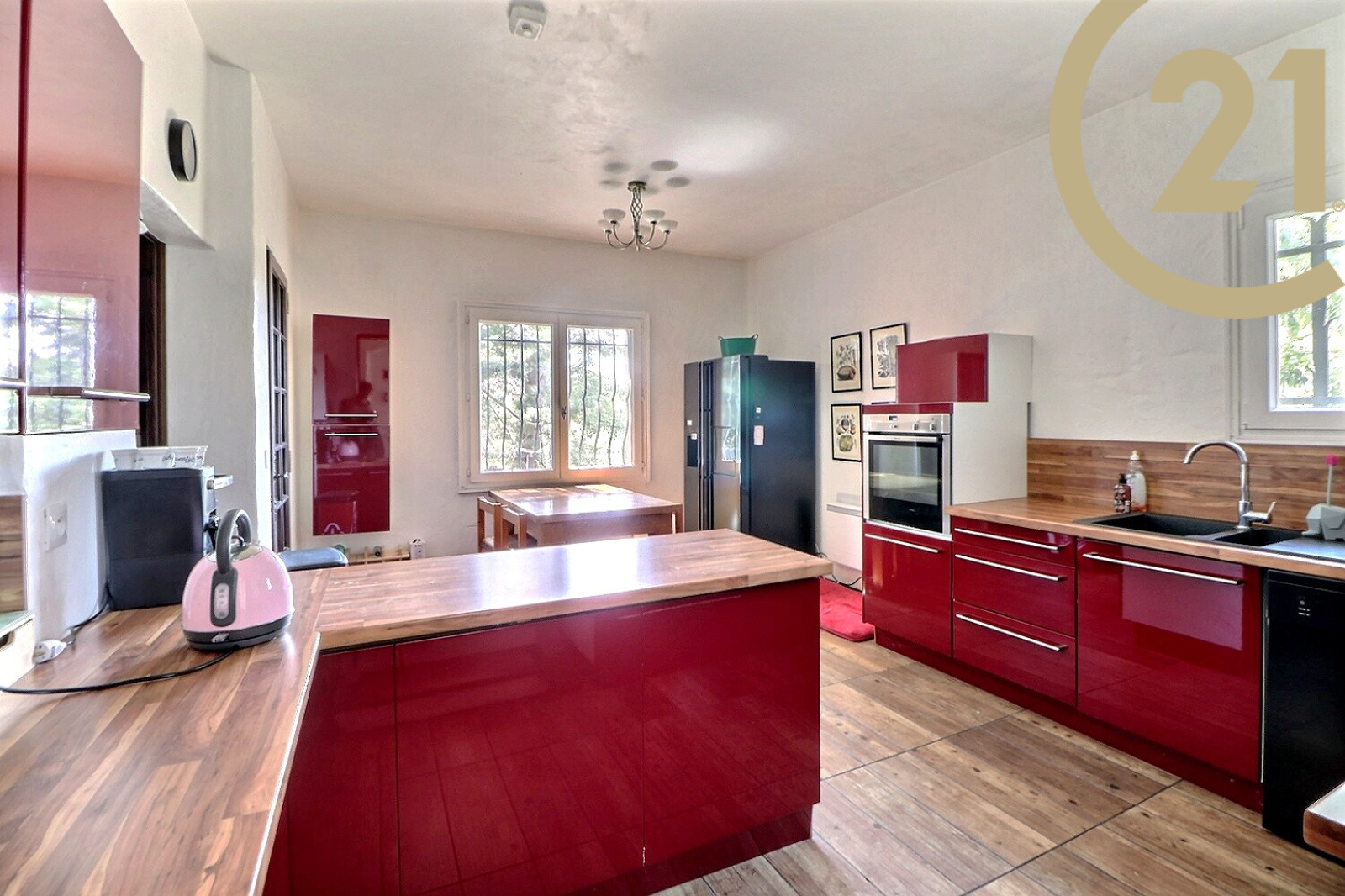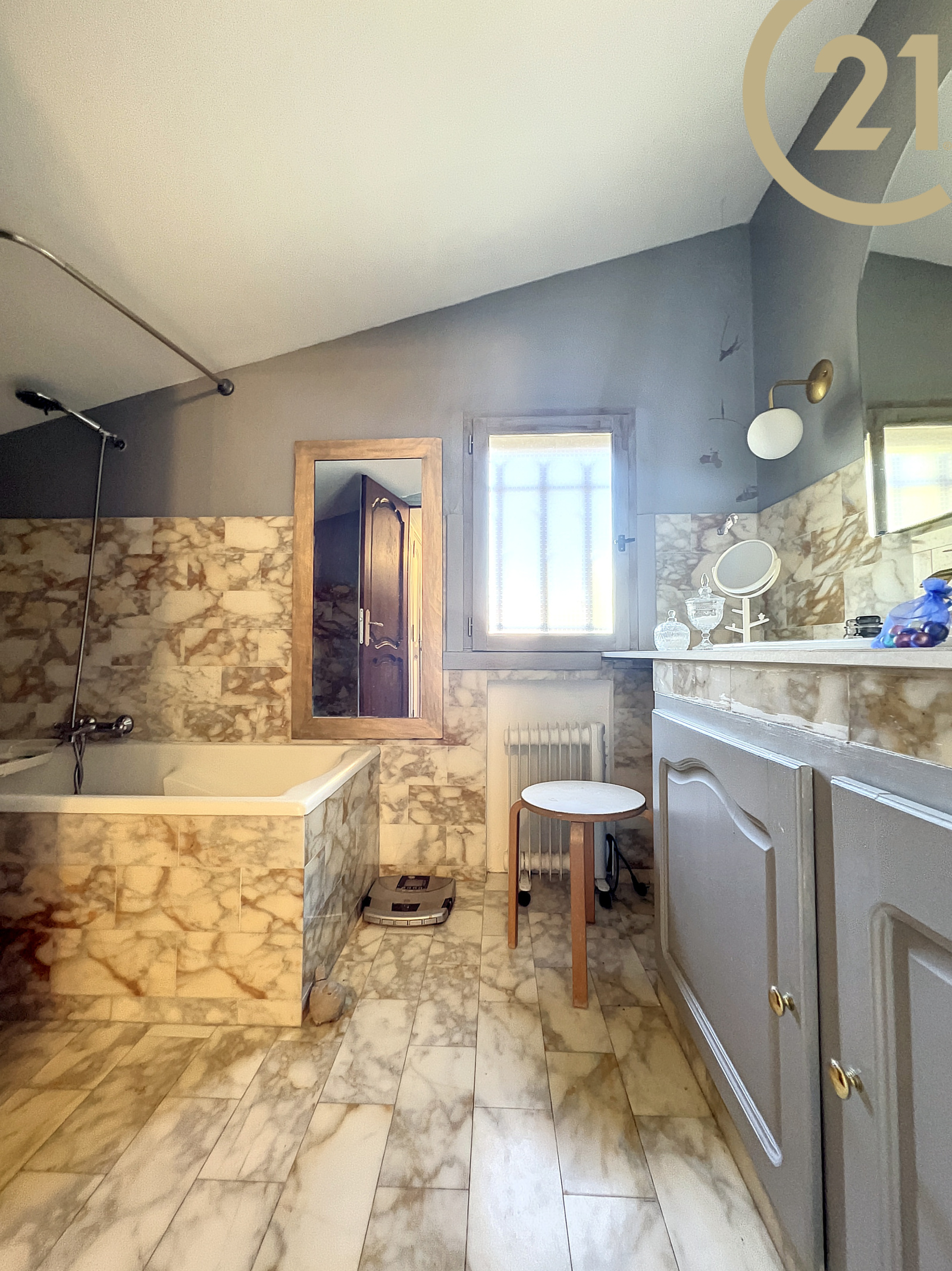 Cette villa 7 pièces se compose au rez-de-chaussée : d'un hall d'entrée, d'un double séjour lumineux avec une belle hauteur sous plafond donnant sur une terrasse, d'une cuisine indépendante récente entièrement équipée, d'une grande suite parentale avec salle de bains et WC, d'une chambre avec salle d'eau, d'un bureau et d'une salle d'eau avec WC.