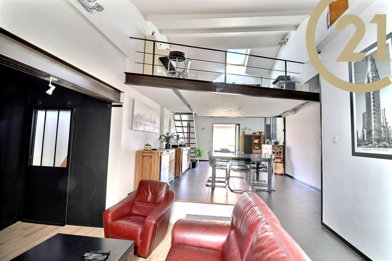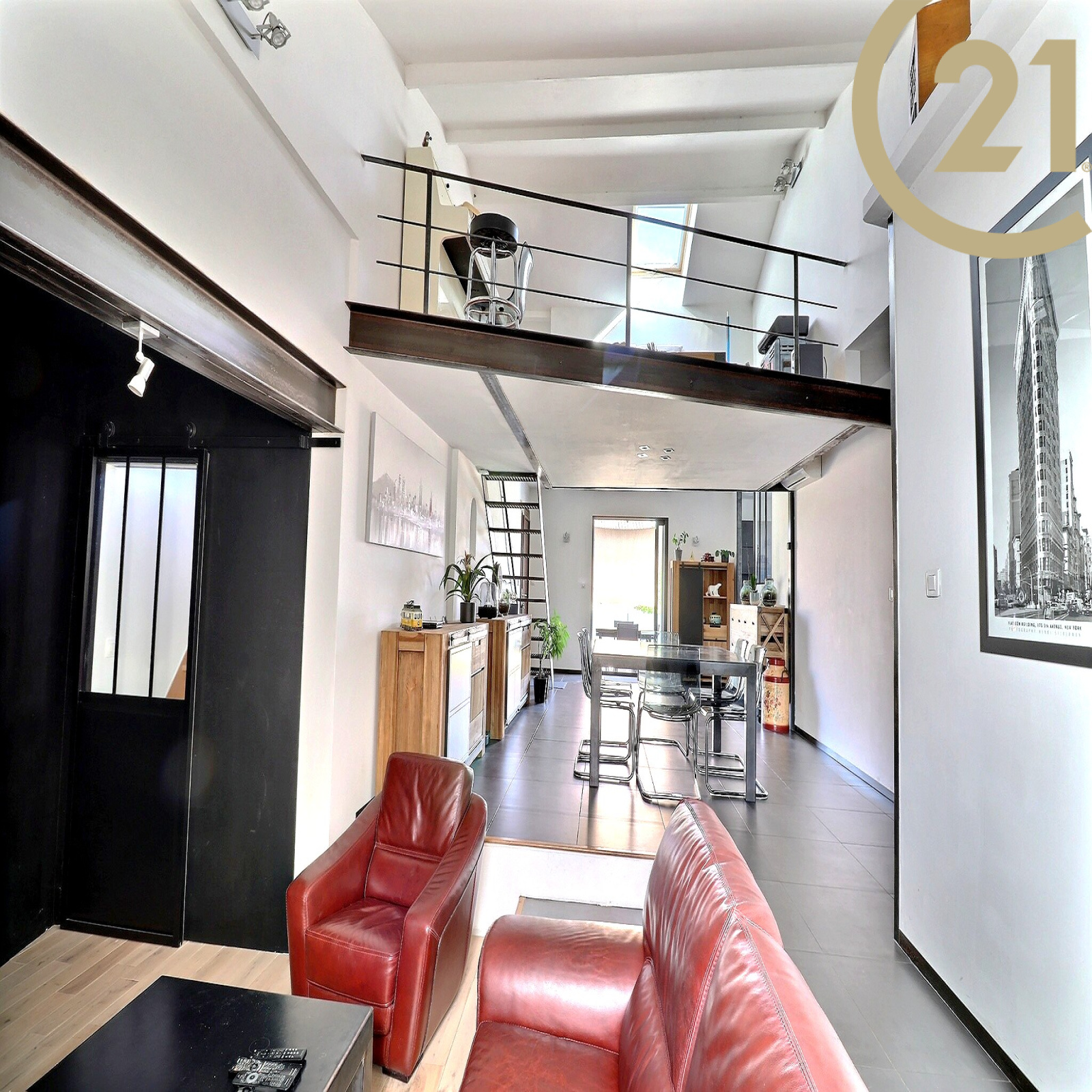 Elle se compose : d'un beau séjour 47m² avec mezzanine, d'une cuisine équipée, de deux chambres, d'une salle d'eau et d'un WC séparé.