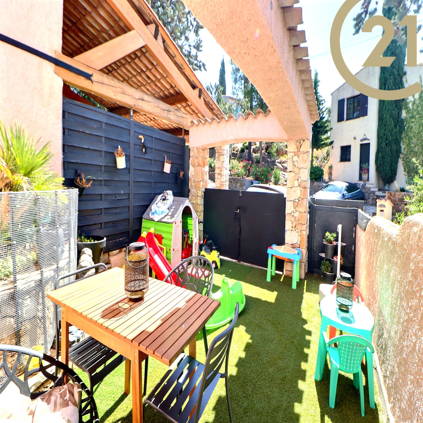 Une piscine privative sans vis-à-vis, un abris voiture ainsi qu'un terrain de pétanque complètent ce bien.