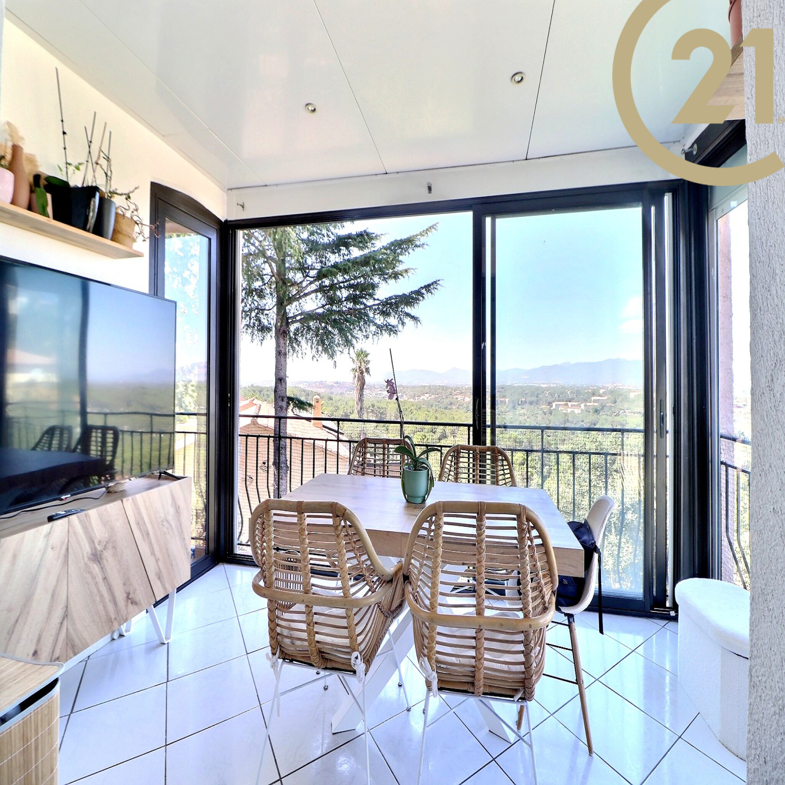Ils se composent chacun d'un séjour donnant sur une belle véranda avec vue dégagée sur le rocher de Roquebrune, d'une cuisine indépendante équipée, de 3 chambres ainsi que d'une salle de bains pour l'un et salle d'eau pour l'autre et d'un WC.