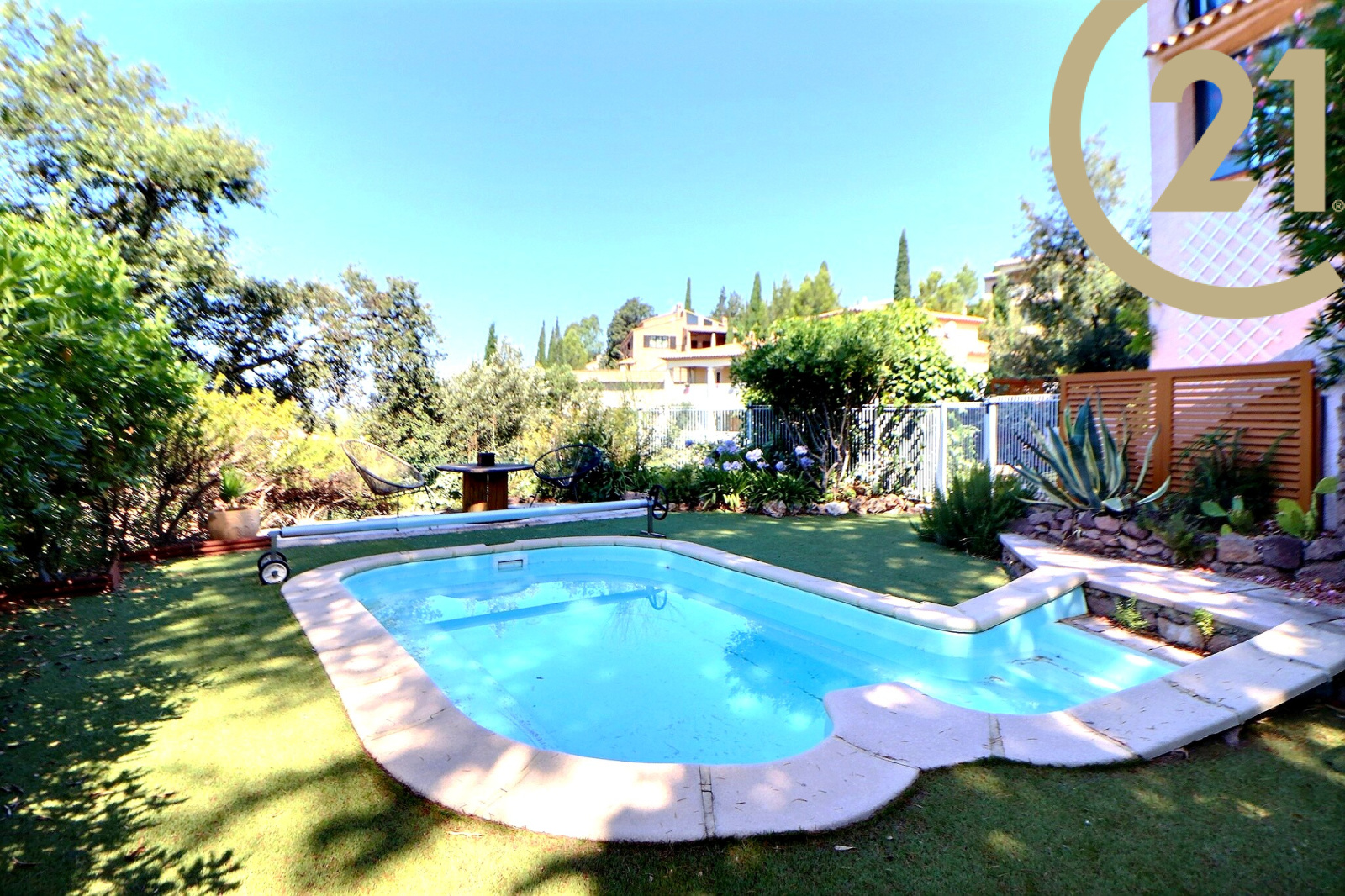 VENTE - FREJUS - CAPITOU - Dans un domaine sécurisé avec gardien, découvrez cette maison divisée en 2 appartements de Type T4, tout deux exposés plein sud et équipés de très belles prestations (climatisation réversible gainable et split).
