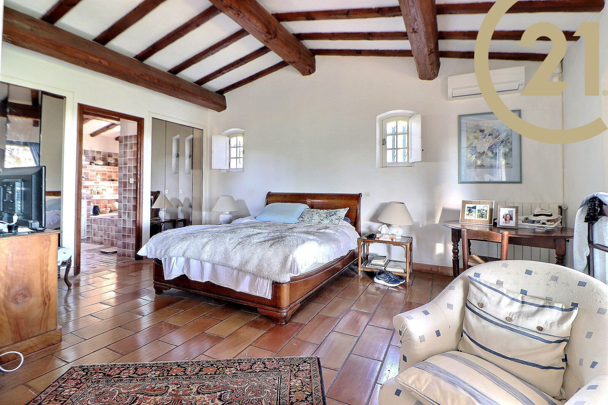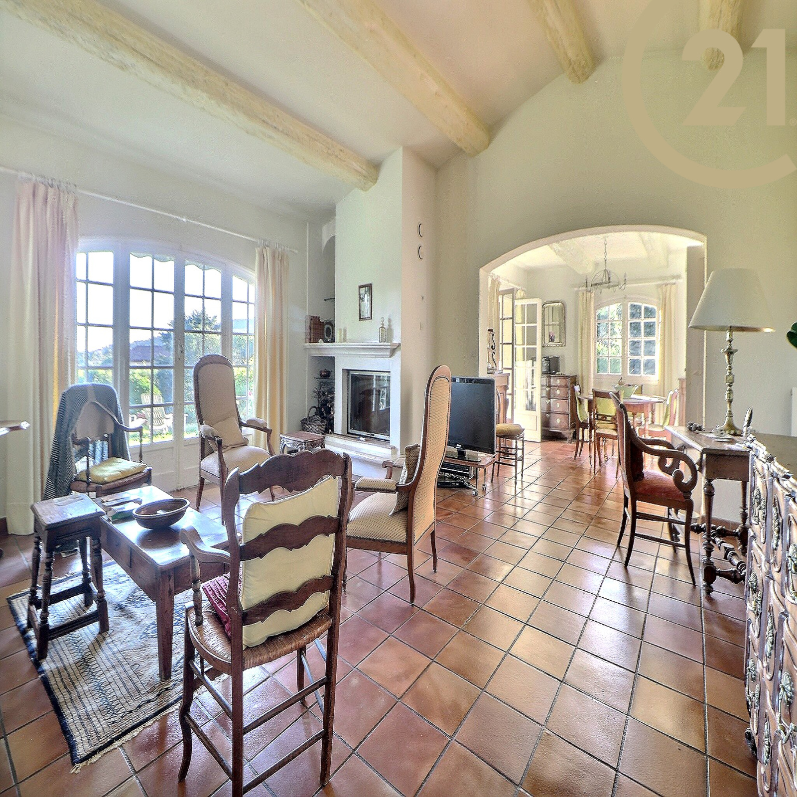 Cette villa au charme traditionnel parfaitement entretenue offre de plain-pied : un spacieux séjour de 46 m² avec cheminée et belle hauteur sous plafond donnant sur l'espace terrasse et piscine, un espace véranda, une cuisine indépendante aménagée donnant sur une terrasse, une arrière cuisine, et un WC indépendant. L'espace nuit se compose : d'une suite parentale avec salle de bains et WC, de trois chambres, d'une salle de bains et d'un WC indépendant.