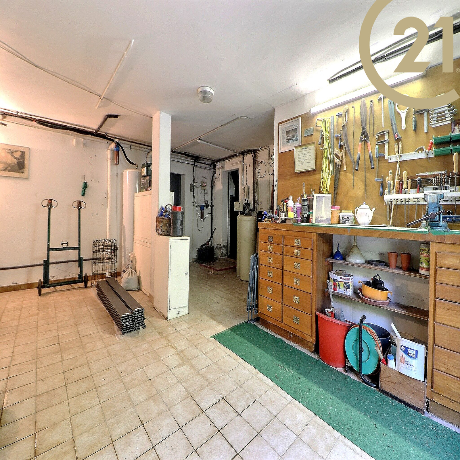 Un studio indépendant de 18m² complète cette maison. Grand garage carrelé de 32 m² avec cave de 12 m² et pièce attenante de 11 m².