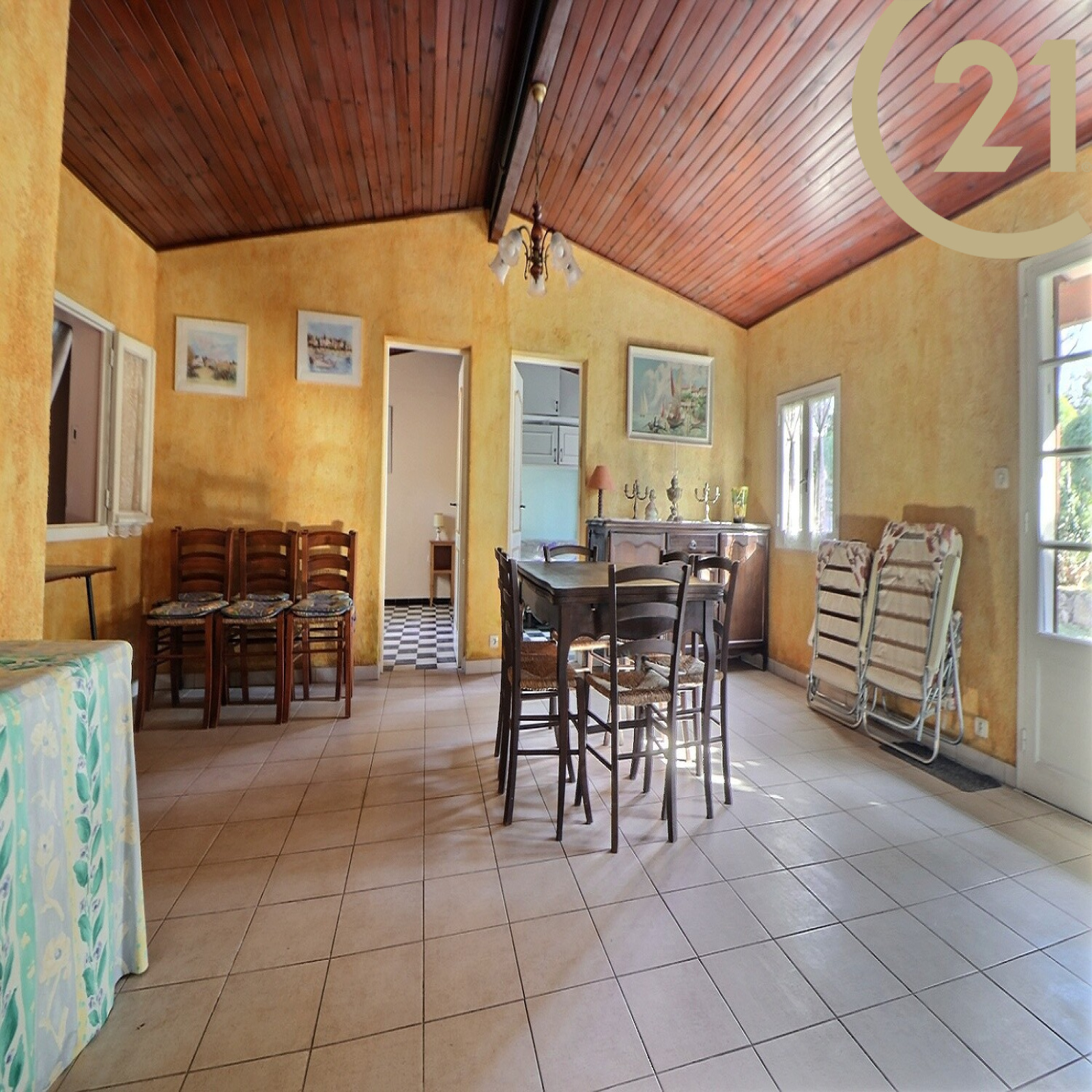 EXCLUSIVITE FREJUS - TOUR DE MARE - Maison de plain pied nichée au coeur de la verdure sur le secteur de la Tour de Mare, idéale 1er achat ou maison de vacances. La maison est composée d'une entrée, un séjour avec coin cuisine, 3 chambres, un WC avec lavabo, une salle de bains avec WC. Vous pouvez garer votre voiture sur le terrain. Aucun vis à vis. Vous pourrez profitez d'un espace convivial de chaque côté de la maison en fonction de l'ensoleillement. Une visite s'impose sans tarder.