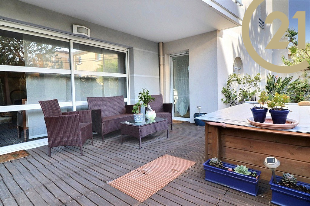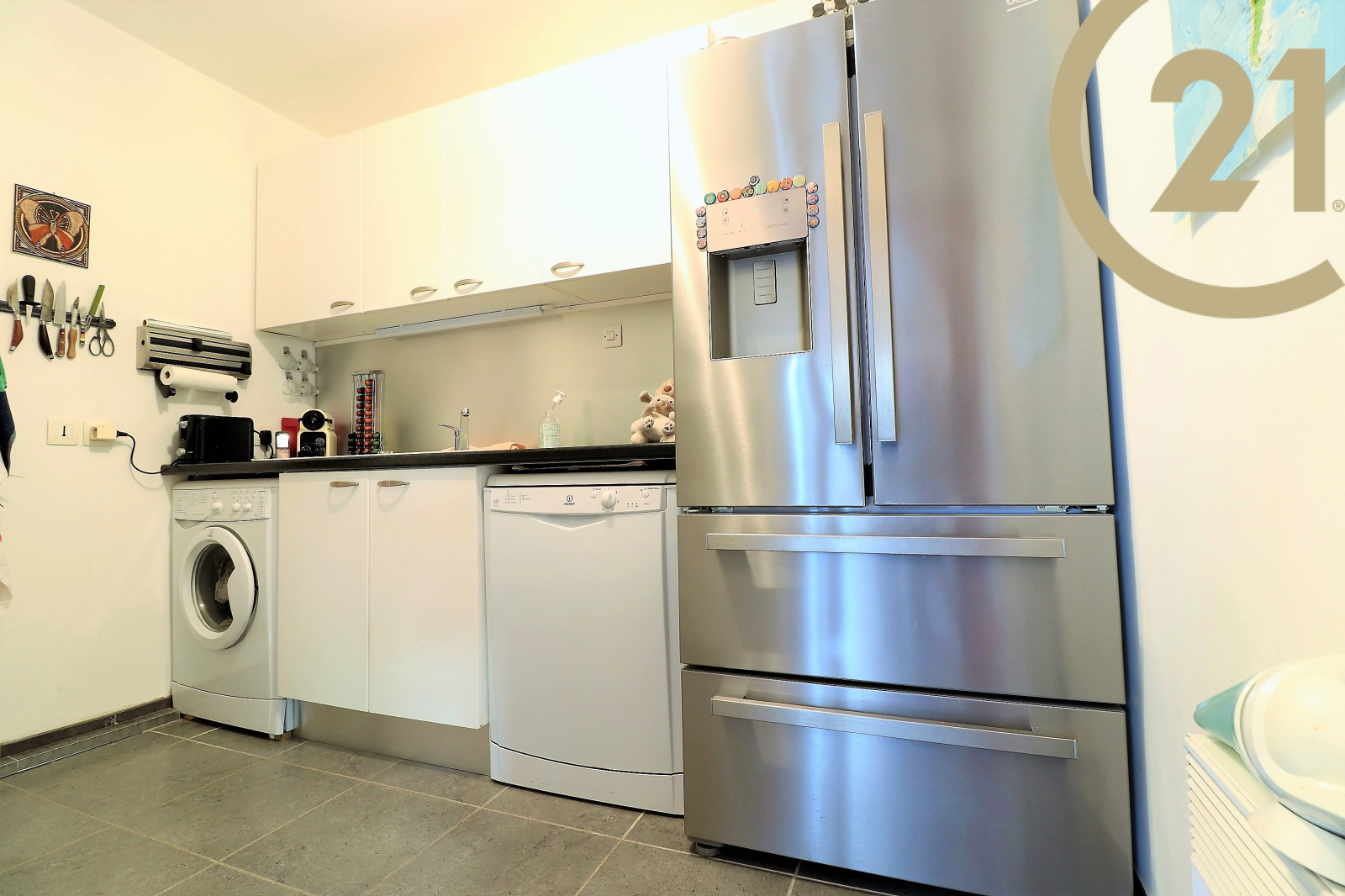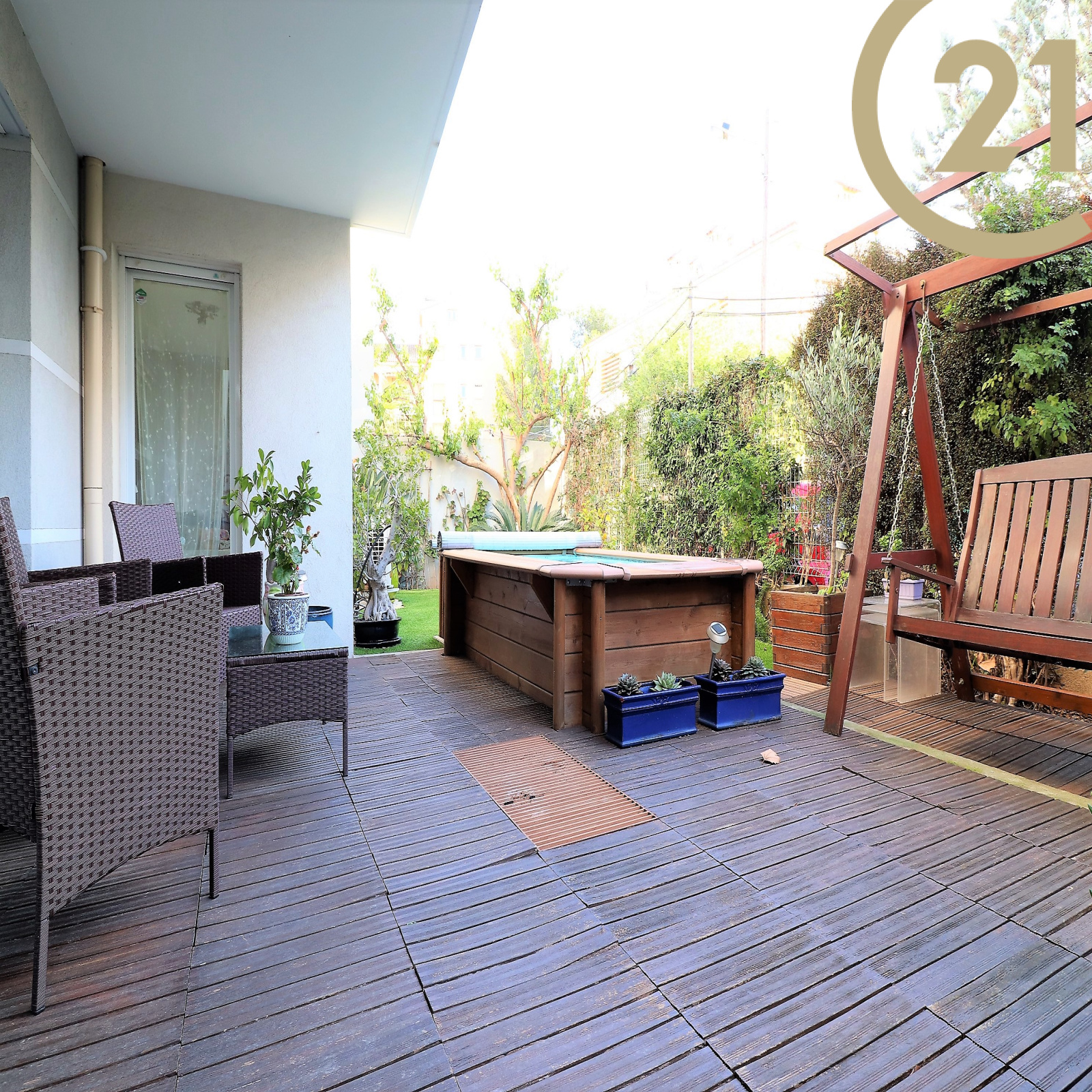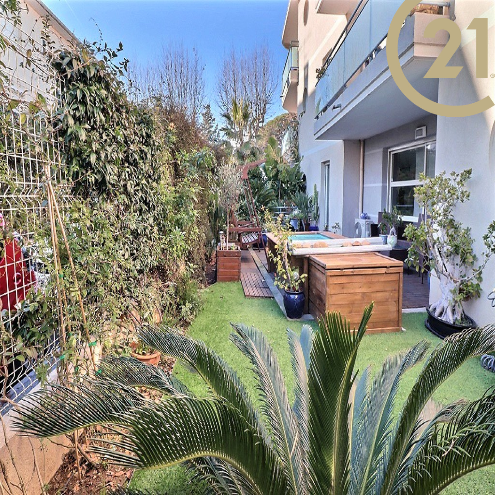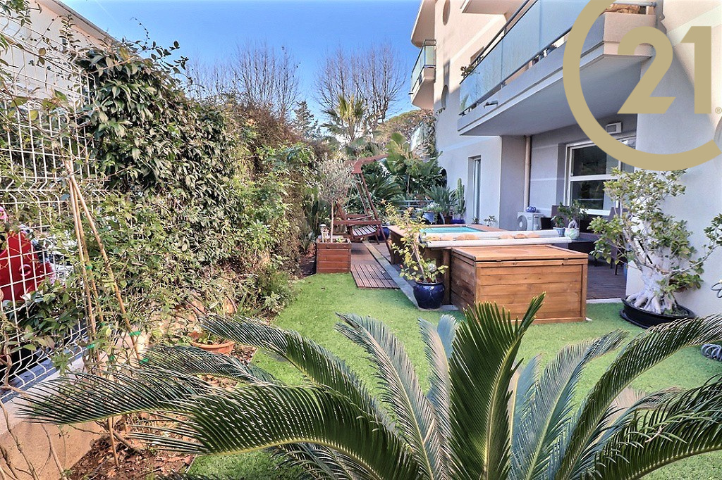 ENTRE PORT FREJUS II ET PORT FREJUS, à deux pas de la base nature, des plages/mer et des commerces, dans une résidence sécurisée, appartement 2/3 pièces en rez-de-jardin (transformable en 3 pièces) bénéficiant d'une terrasse de 15 m² et d'un jardin méditerranéen avec son jacuzzi. L'appartement se compose d'une entrée, d'un lumineux séjour, d'une cuisine, d'une salle à manger (2ième chambre), d'une grande chambre de 18m² avec son dressing, d'une salle d'eau et d'un wc indépendant. Un box (garage) en sous-sol complète ce bien. Bien en copropriété de 12 lots (6 appartements) charges annuelles de 1280 euros - Foncier 1086 euros.