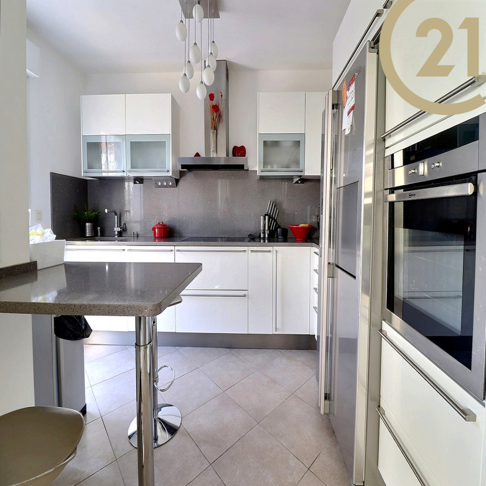 Le séjour et la cuisine s'ouvrent sur une terrasse de plus de 40m² puis sur un jardin privatif de 114m².