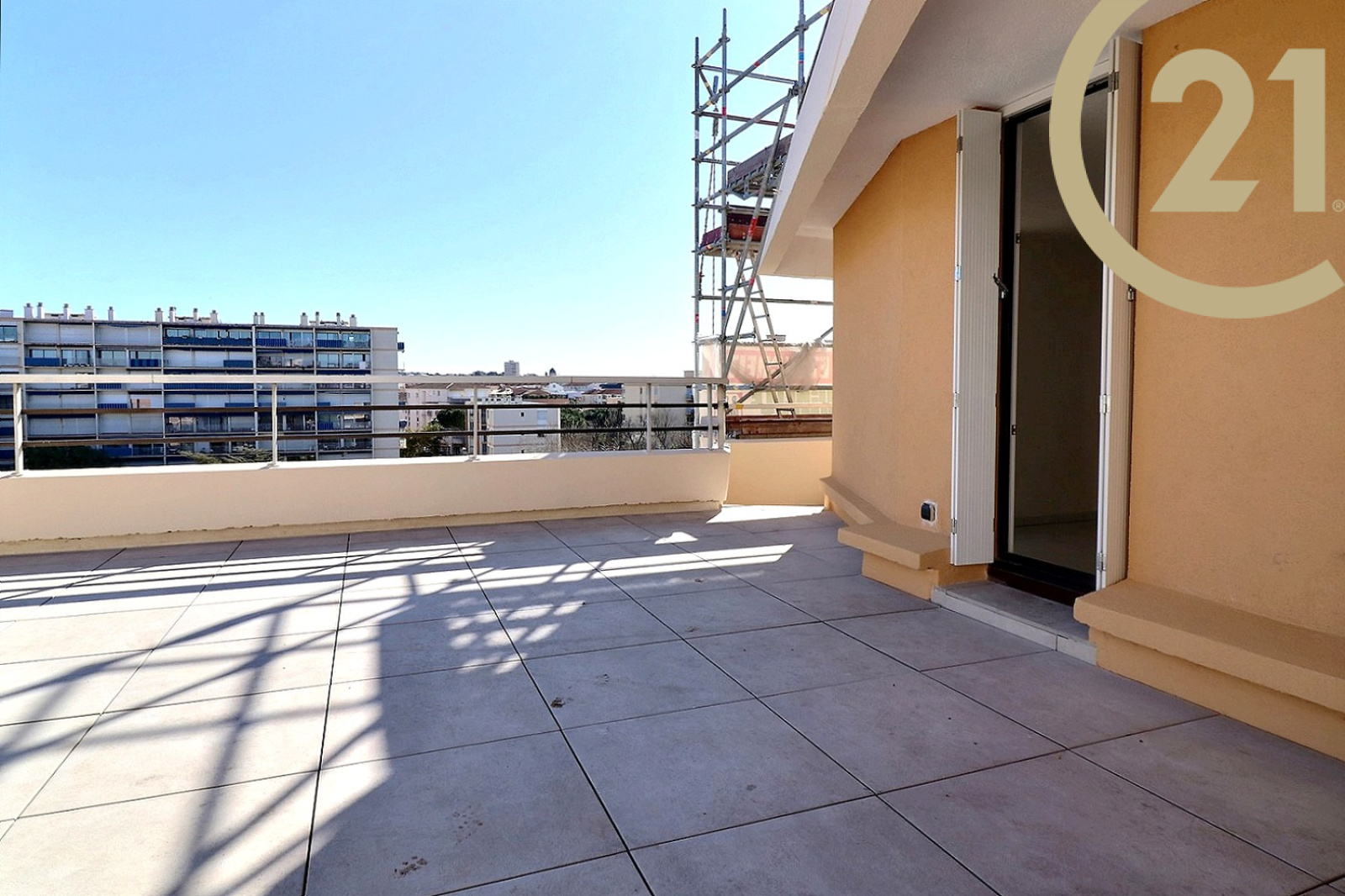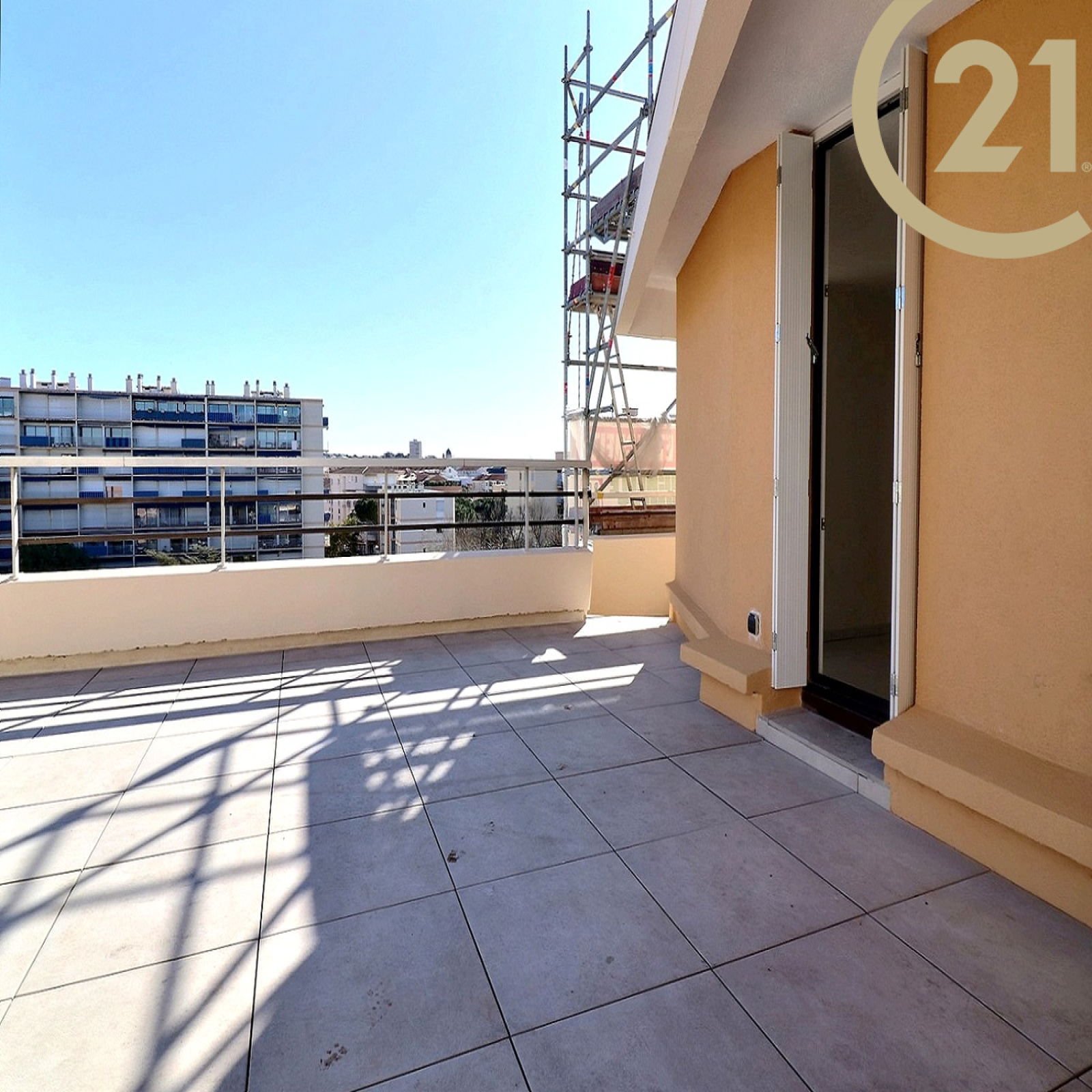 EXCLUSIVITE FREJUS PLAGE, dans une résidence très prisée avec piscine, ce studio bénéficie du dernier étage et d'une terrasse de 68,30 m². Il se compose d'une entrée avec placard, d'une pièce de vie donnant sur la terrasse, d'une kitchenette et d'une salle de bains avec wc.