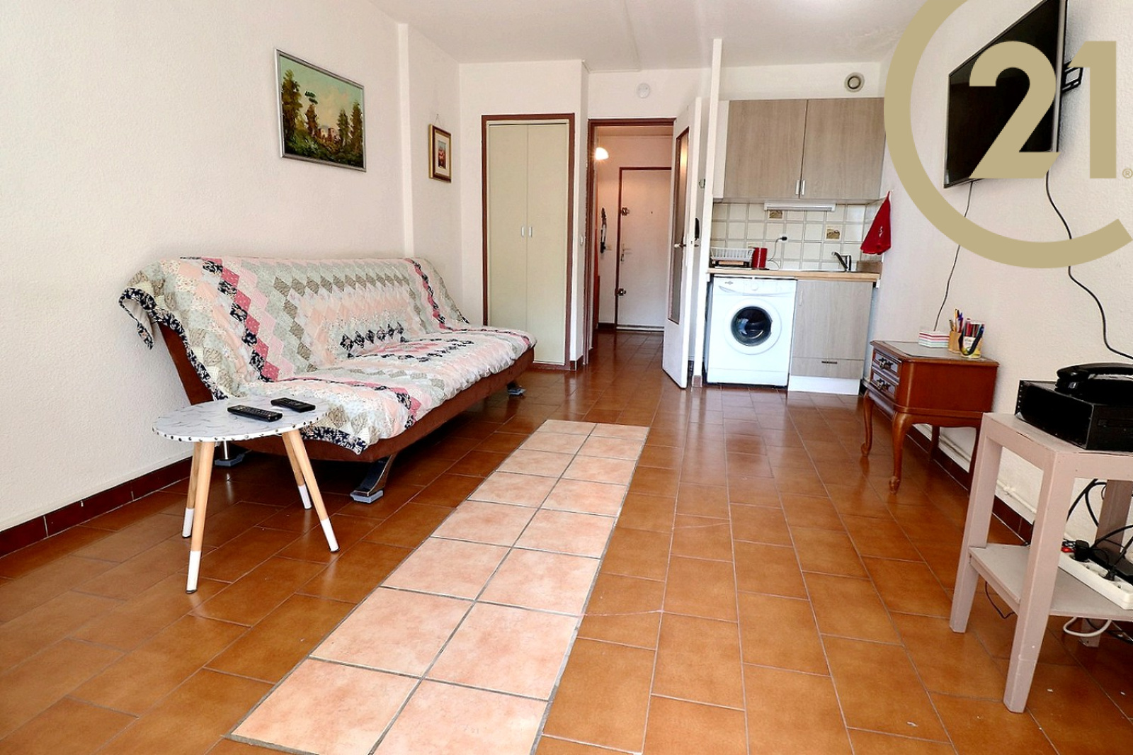 VENTE - FREJUS, studio cabine dans une résidence sécurisée avec piscine et tennis et proche du centre ville à pied et de la base nature. Il est composé d'une entrée/cabine, d'une salle d'eau, d'un wc, d'une pièce à vivre avec kitchenette et d'une terrasse fermée.