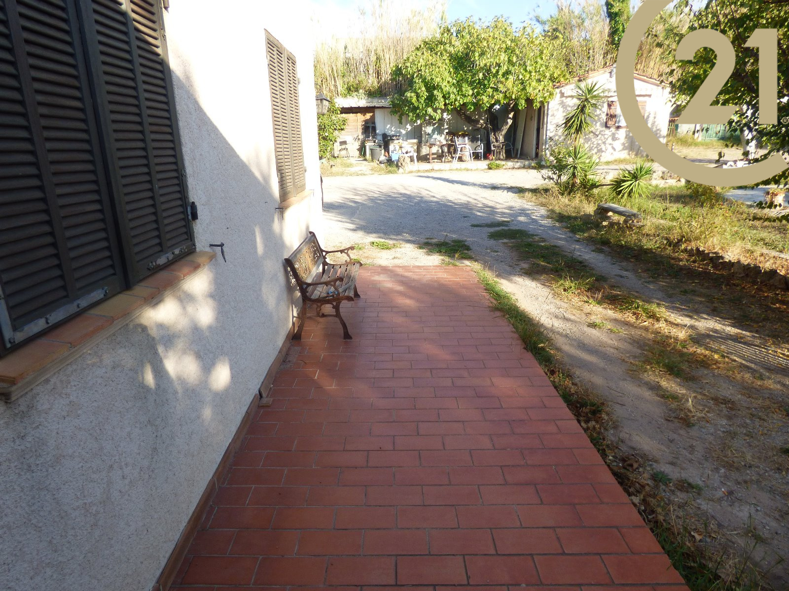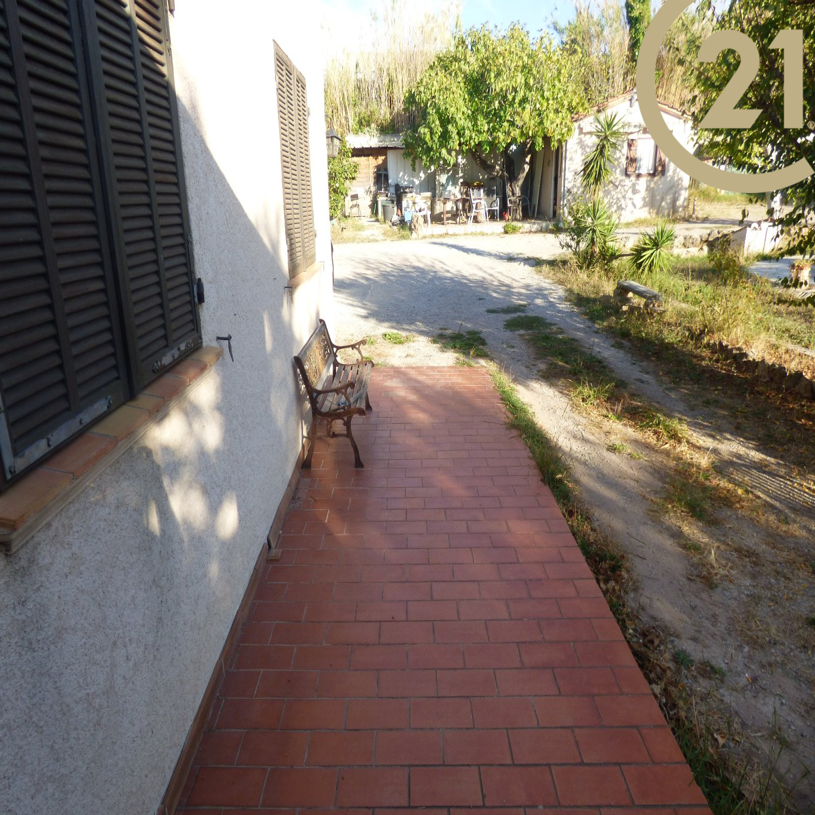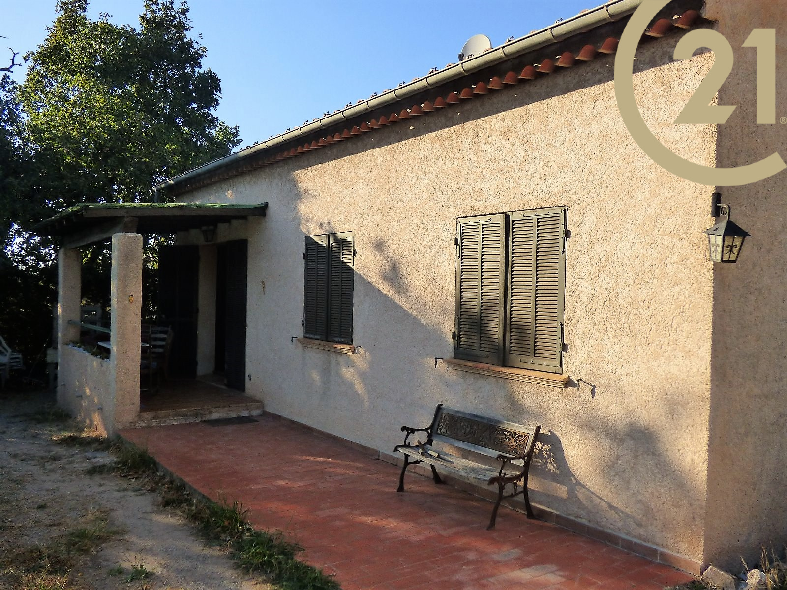 FREJUS, dans quartier résidentiel, hors lotissement, au calme en fond d'impasse, villa provençale 4 pièces de plain-pied, elle se compose d'un séjour double, d'une cuisine indépendante, d'un dégagement, de 2 chambres (possibilité 3ième chambre), d'une salle de bains et wc. Dépendance sur le terrain. Exposition sud. Terrain de 1432 m². Terrain très ensoleillé et piscinable.