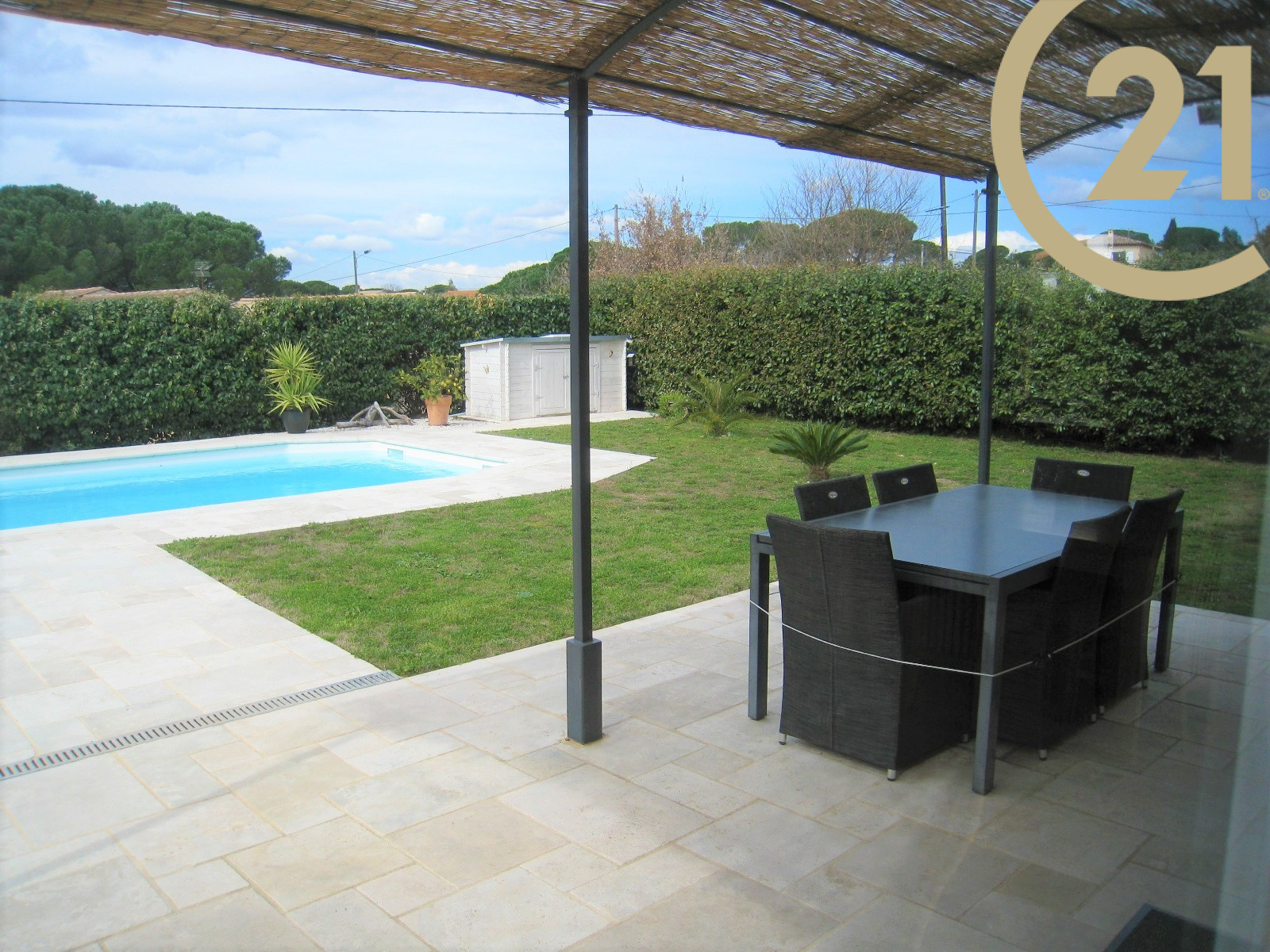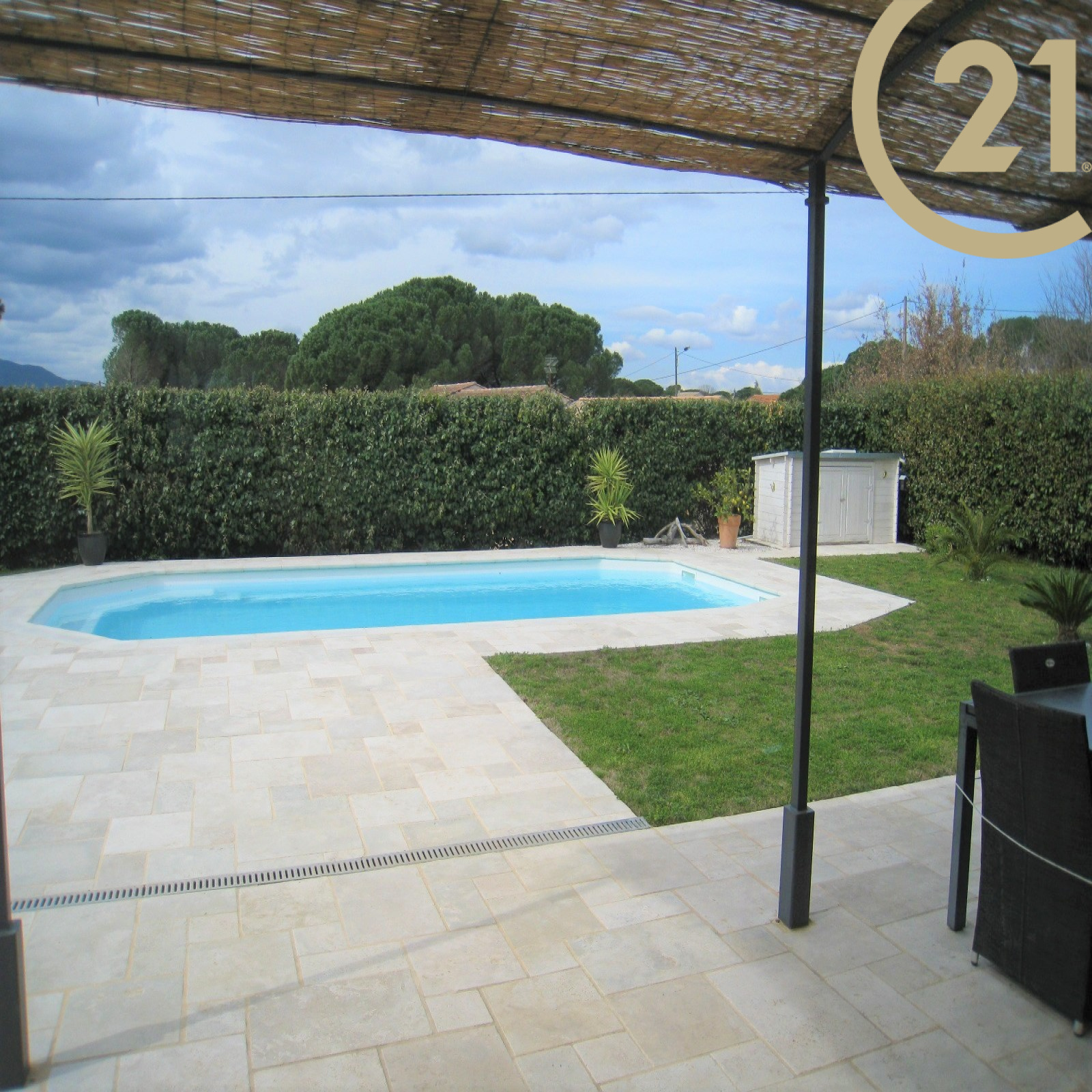 FREJUS, quartier de Cais, dans résidence sécurisée, belle villa se situant à 800 mètres des commerces et des écoles. Elle se compose en rez de chaussée d'une entrée, d'un WC, d'un séjour avec cuisine aménagée de 36m² donnant sur un jardin de 519m² avec sa belle piscine 8.5x4.1m². A l'étage le coin nuit avec ses 3 chambres, une salle de bains avec double-vasque et un WC indépendant. Climatisation réversible - alarme - arrosage automatique - Garage 31m². Aucun travaux à prévoir.