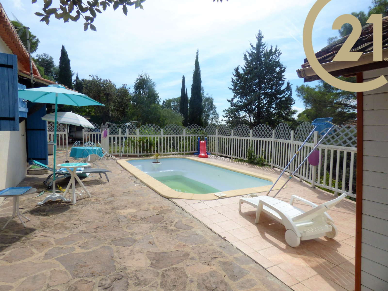 Villa N°2 composée d'un séjour, d'une cuisine indépendante, de deux chambres dont une avec accès de l'extérieur et d'une salle de bains. Piscine, cuisine d'été, et cabanon.