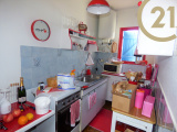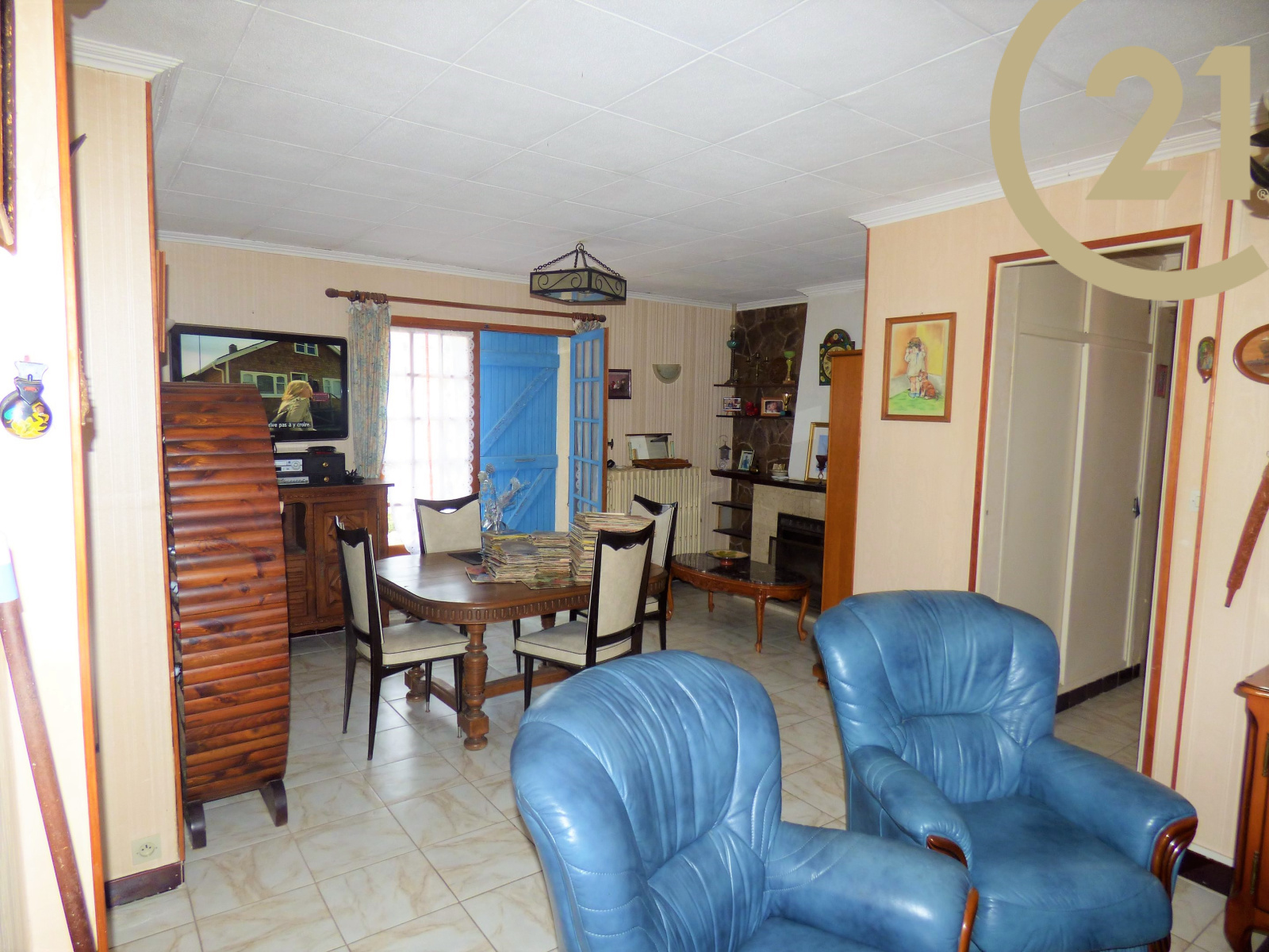 Villa N°1 de plain-pied composée d'un séjour avec cheminée, d'une cuisine indépendante, de deux chambres et d'une salle de bains.