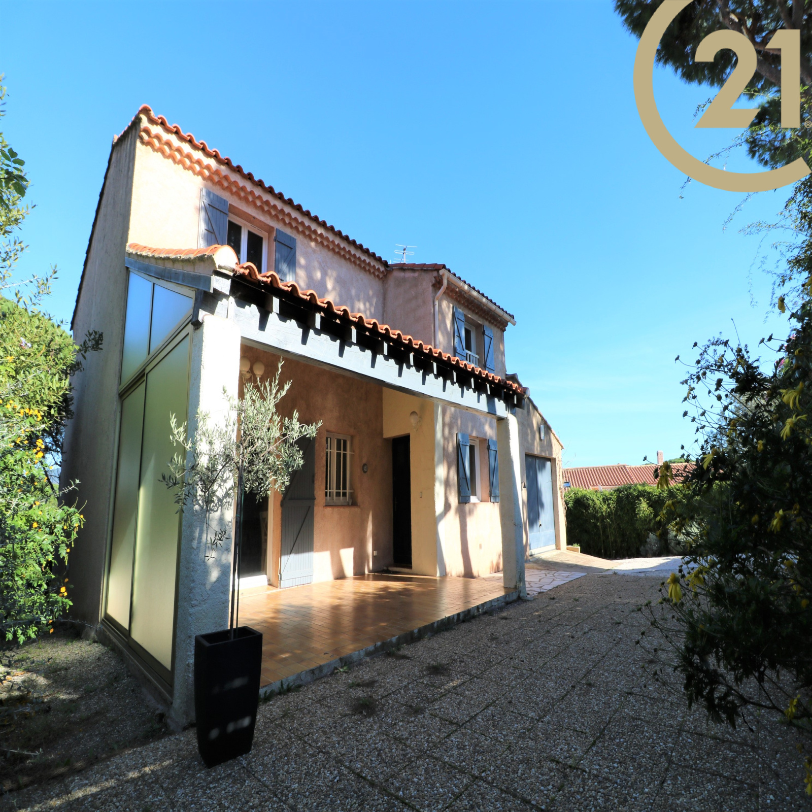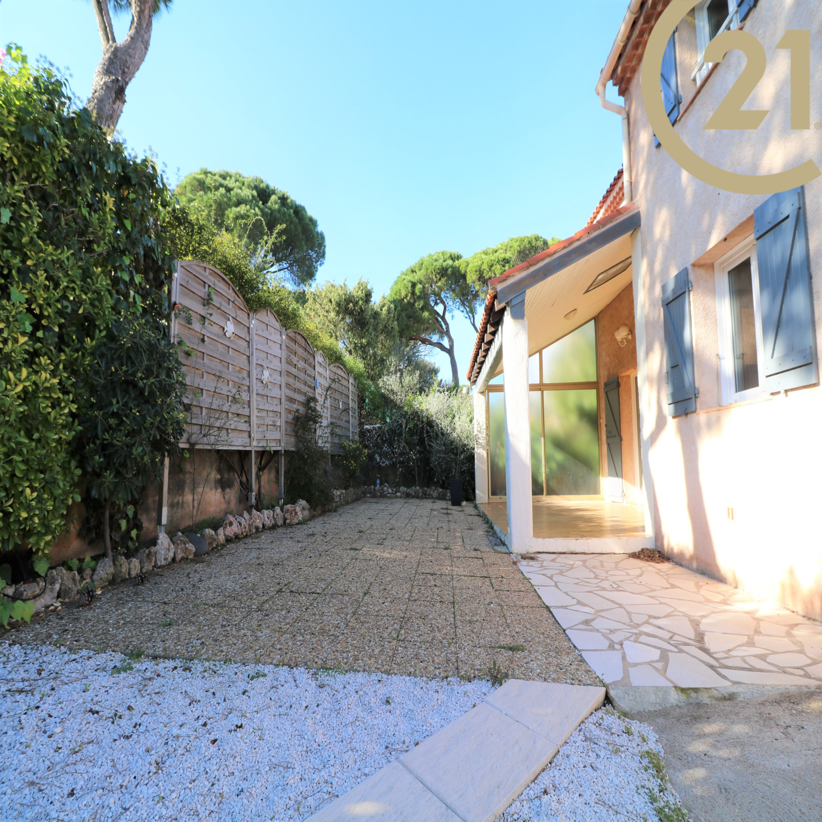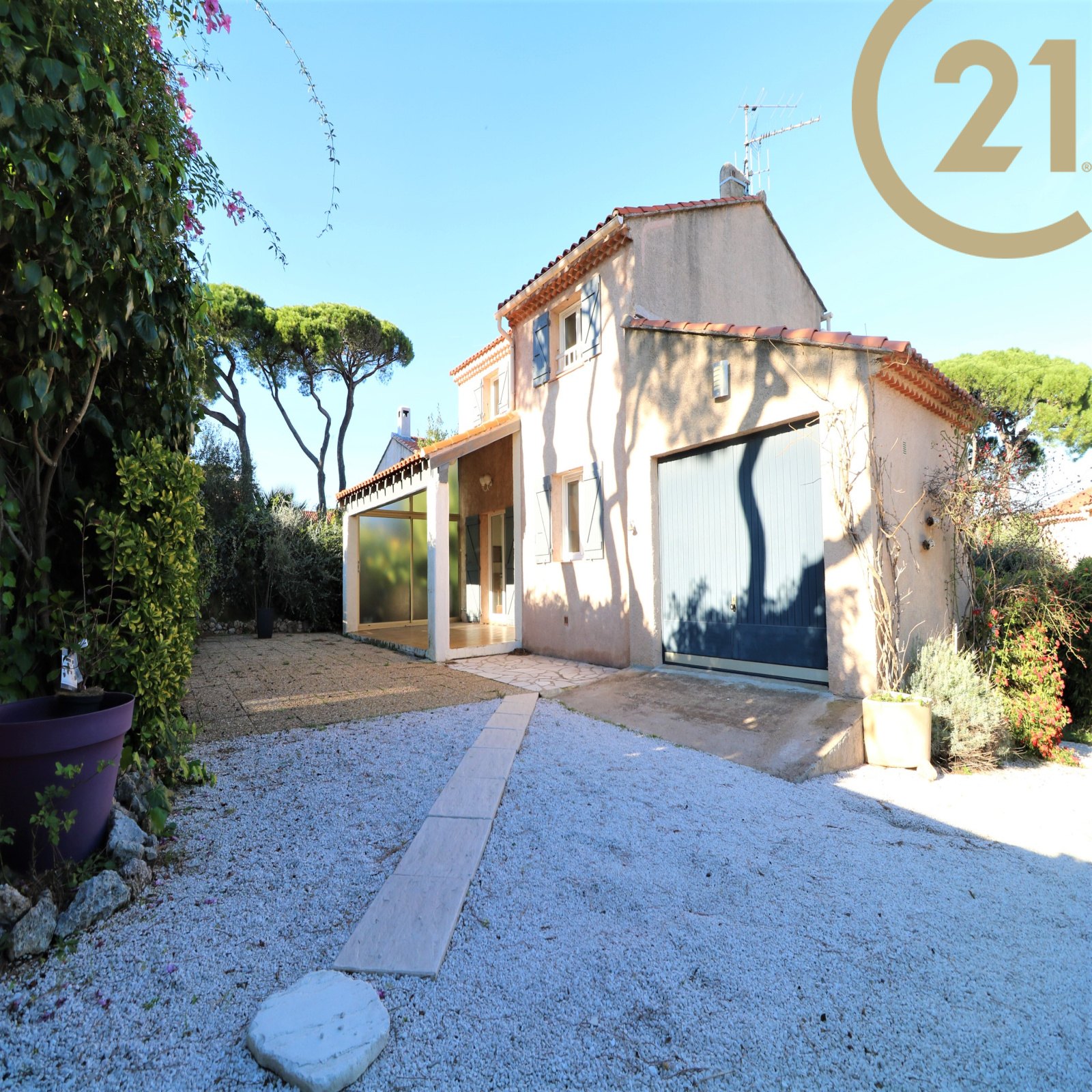 EXCLUSIVITE - FREJUS - TOUR DE MARE - Charmante villa 4 pièces individuelle de 90 m² édifiée sur un terrain de 350 m² dans un quartier résidentiel de la Tour de Mare. Cette jolie maison rénovée récemment offre un spacieux et lumineux séjour traversant de 30 m², une cuisine indépendante équipée, 3 chambres, une salle d'eau avec WC et une salle de bains avec WC. L'espace séjour et la cuisine bénéficient d'un accès direct sur une vaste terrasse exposée plein Sud. La maison comprend également un garage. Commerces accessibles à pied. Environnement très calme et absence totale de vis-à-vis. Fenêtres double vitrage oscillo-battantes. Centre commercial à quelques minutes à pied. Etablissements scolaires, centre-ville et autoroute accessibles rapidement.