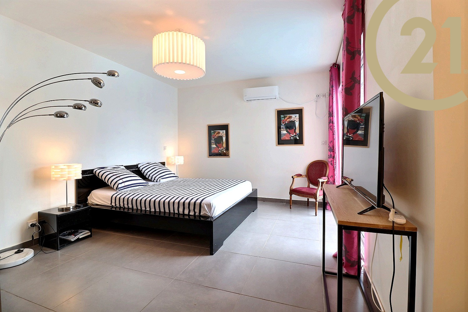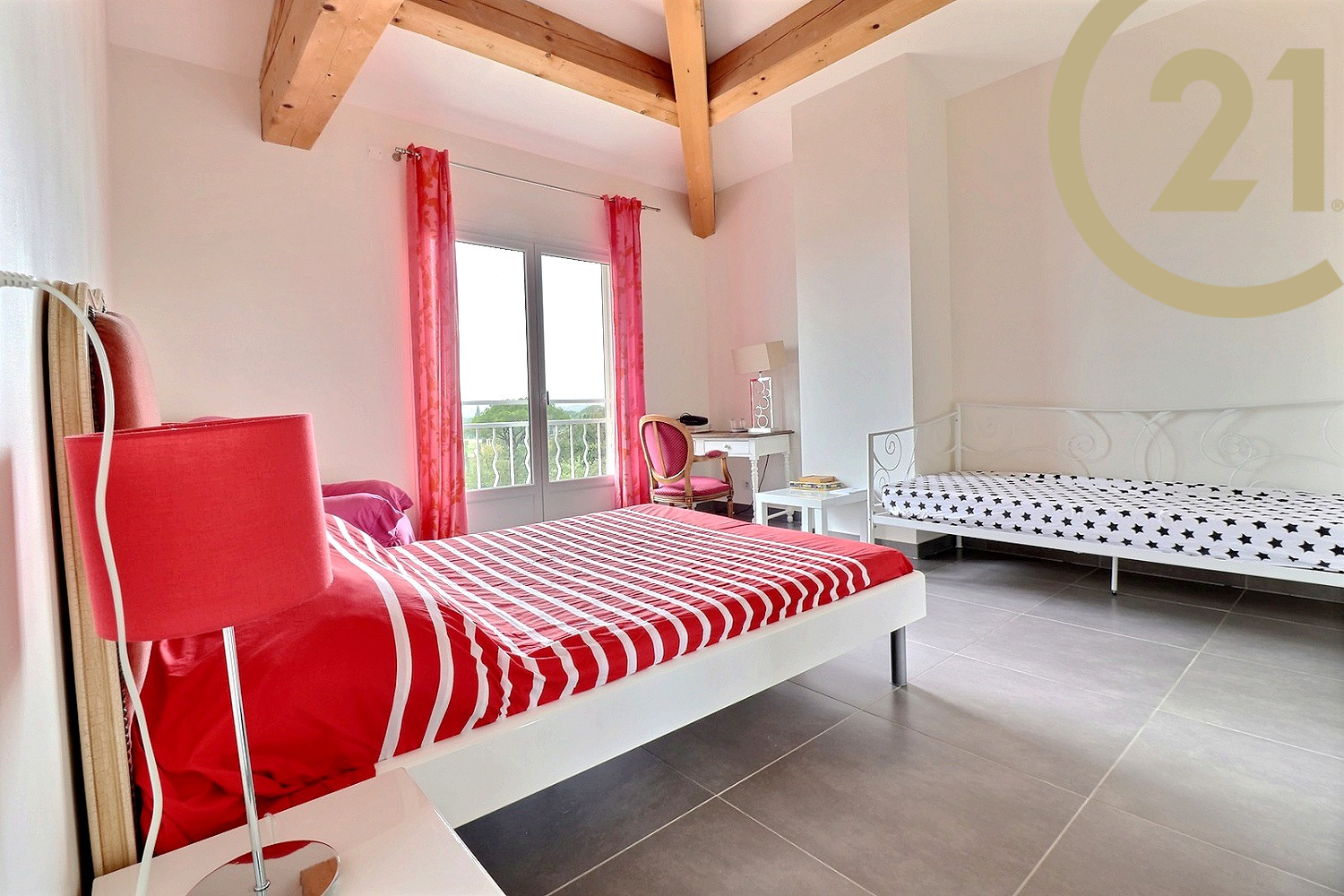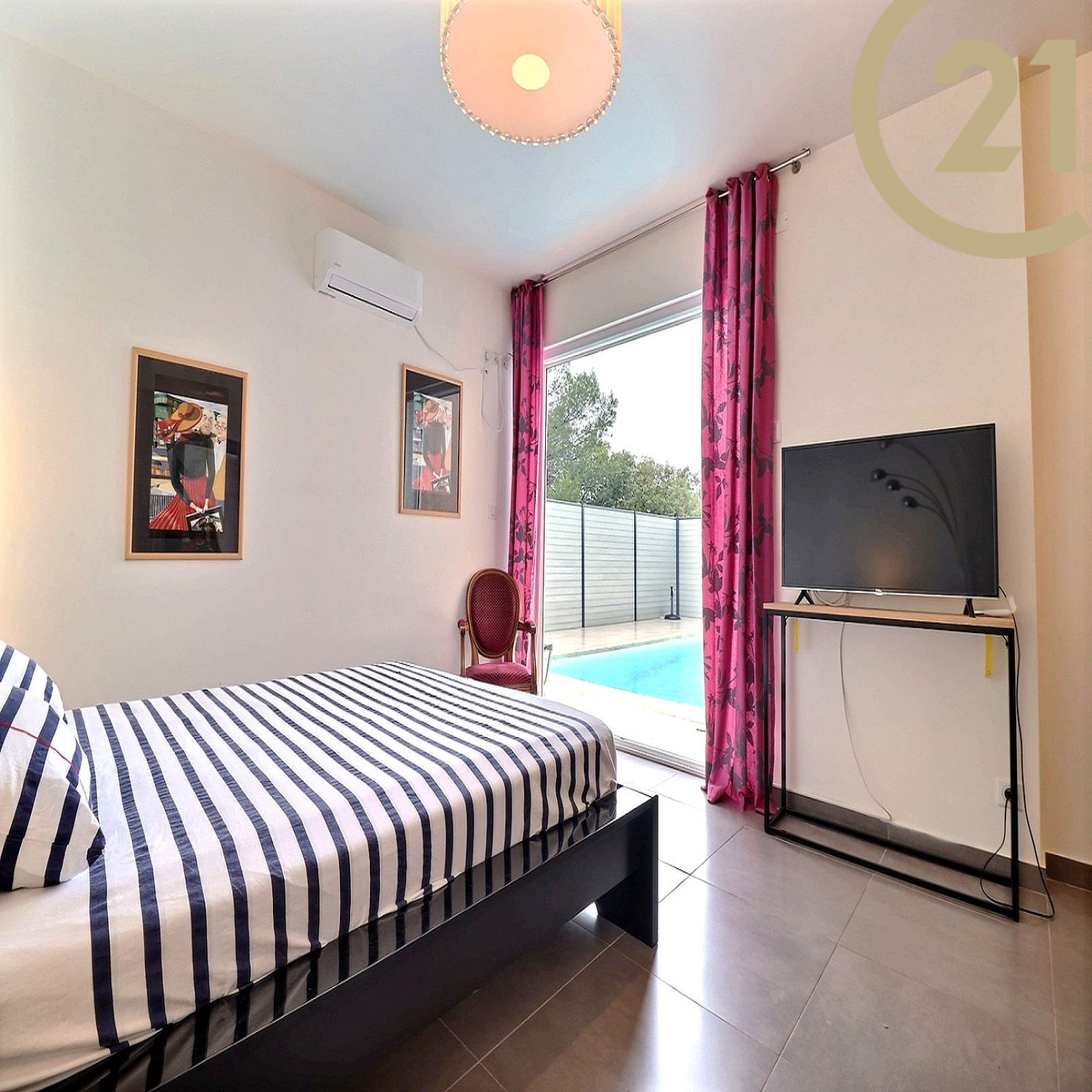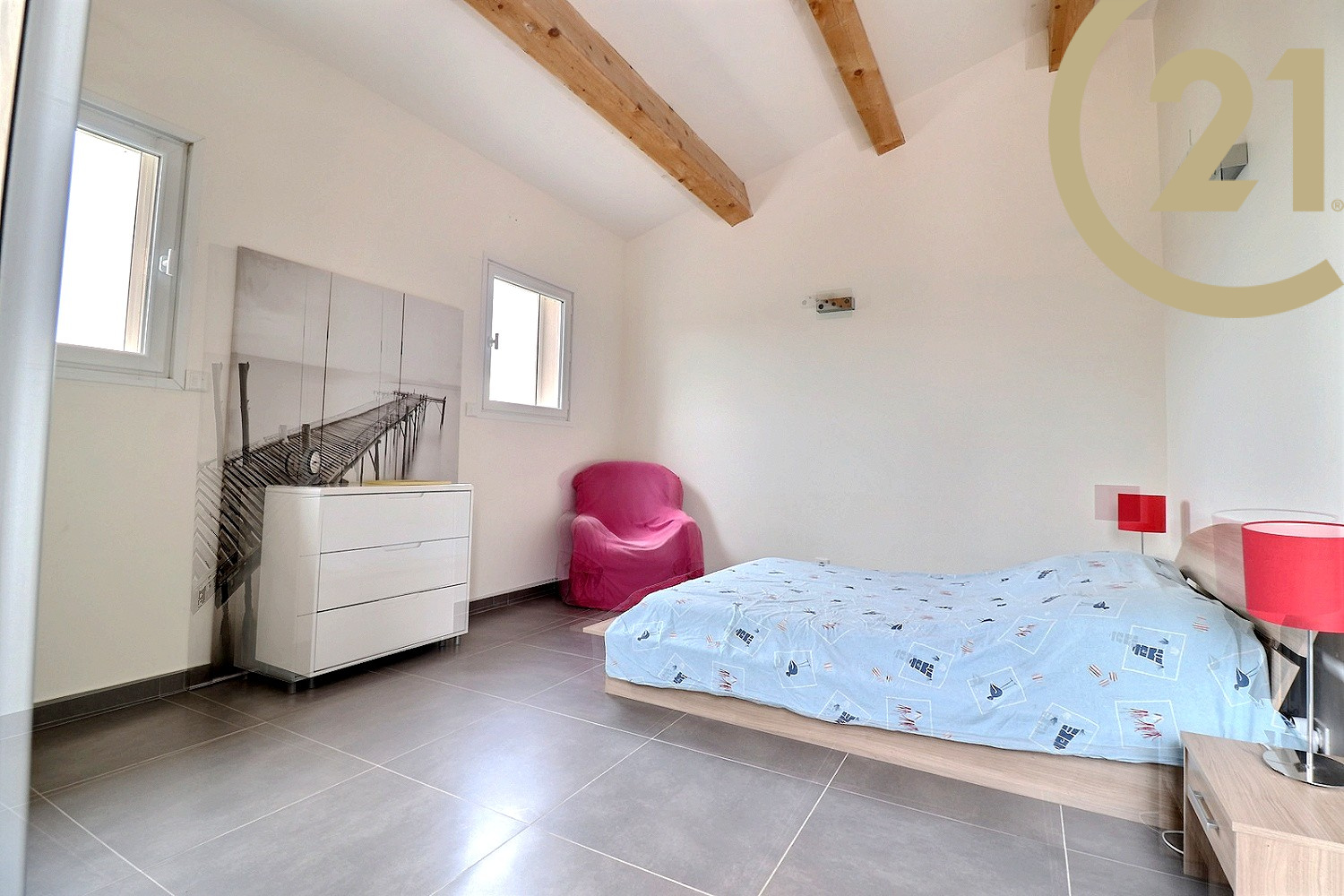 Cette villa moderne construite en 2011 et idéalement agencée offre de plain pied : une entrée avec WC, une magnifique pièce de vie de 40 m² avec cuisine semi-ouverte entièrement équipée, une chambre parentale avec dressing, une salle de bain et une deuxième chambre. L'étage se compose de deux grandes chambres dont une donne sur un solarium, d'une salle d'eau et de WC indépendant. Le rez-de-chaussée offre un accès direct à l'espace extérieur doté d'une grande terrasse avec vue dégagée sur le rocher de Roquebrune et d'une belle piscine.