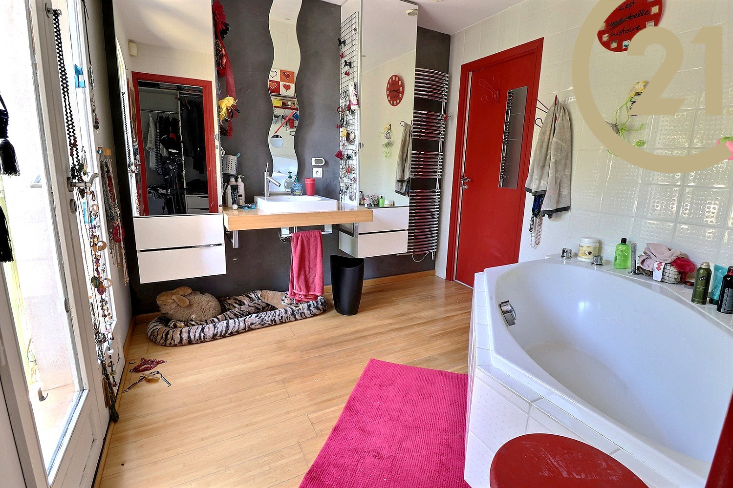 A l'étage se trouvent 3 chambres, un bureau, une buanderie, une salle d'eau et un dressing.