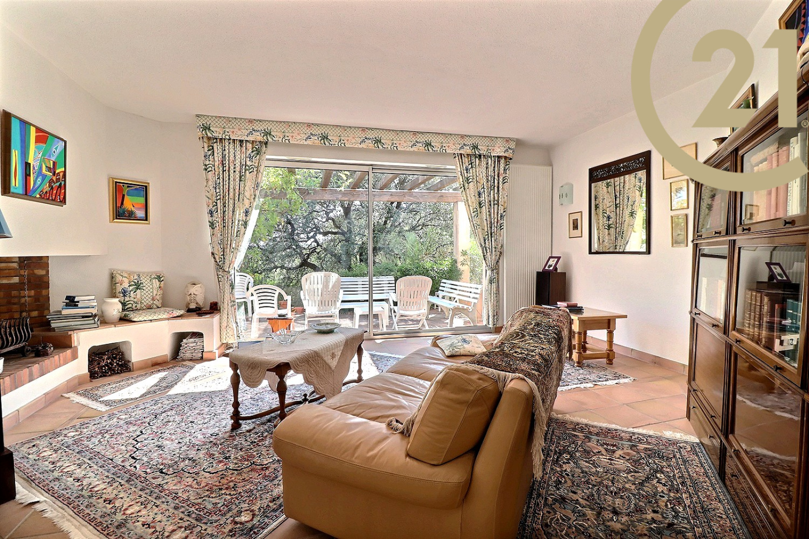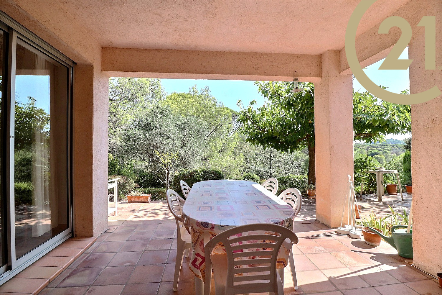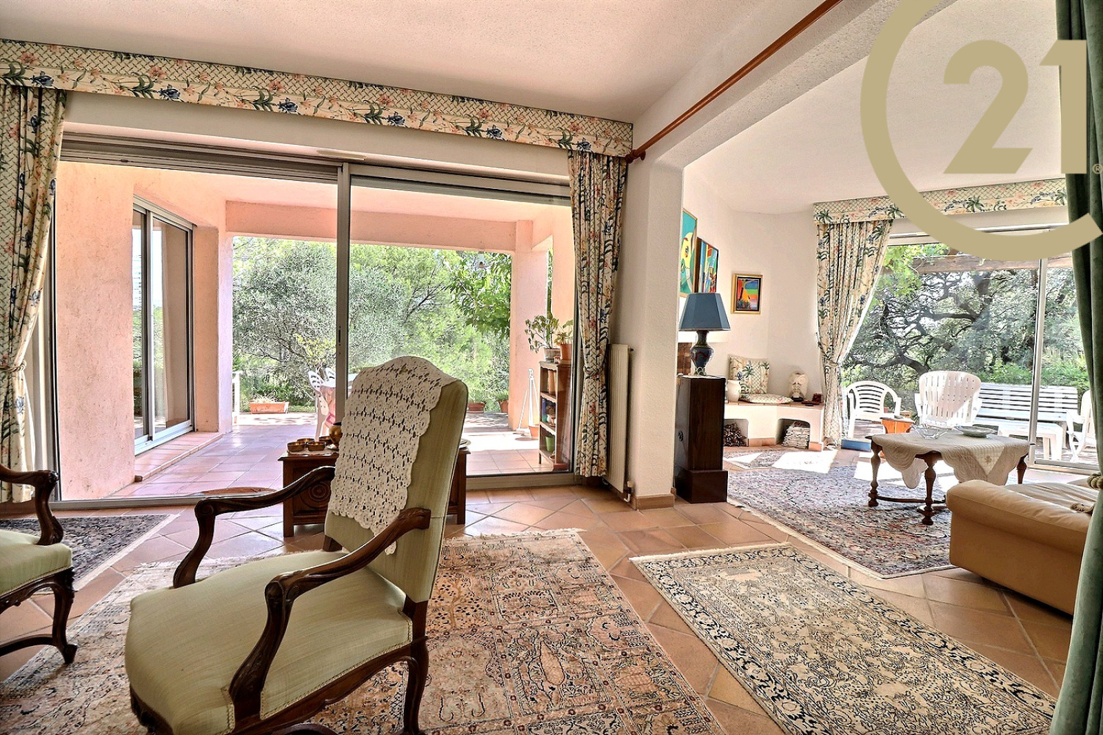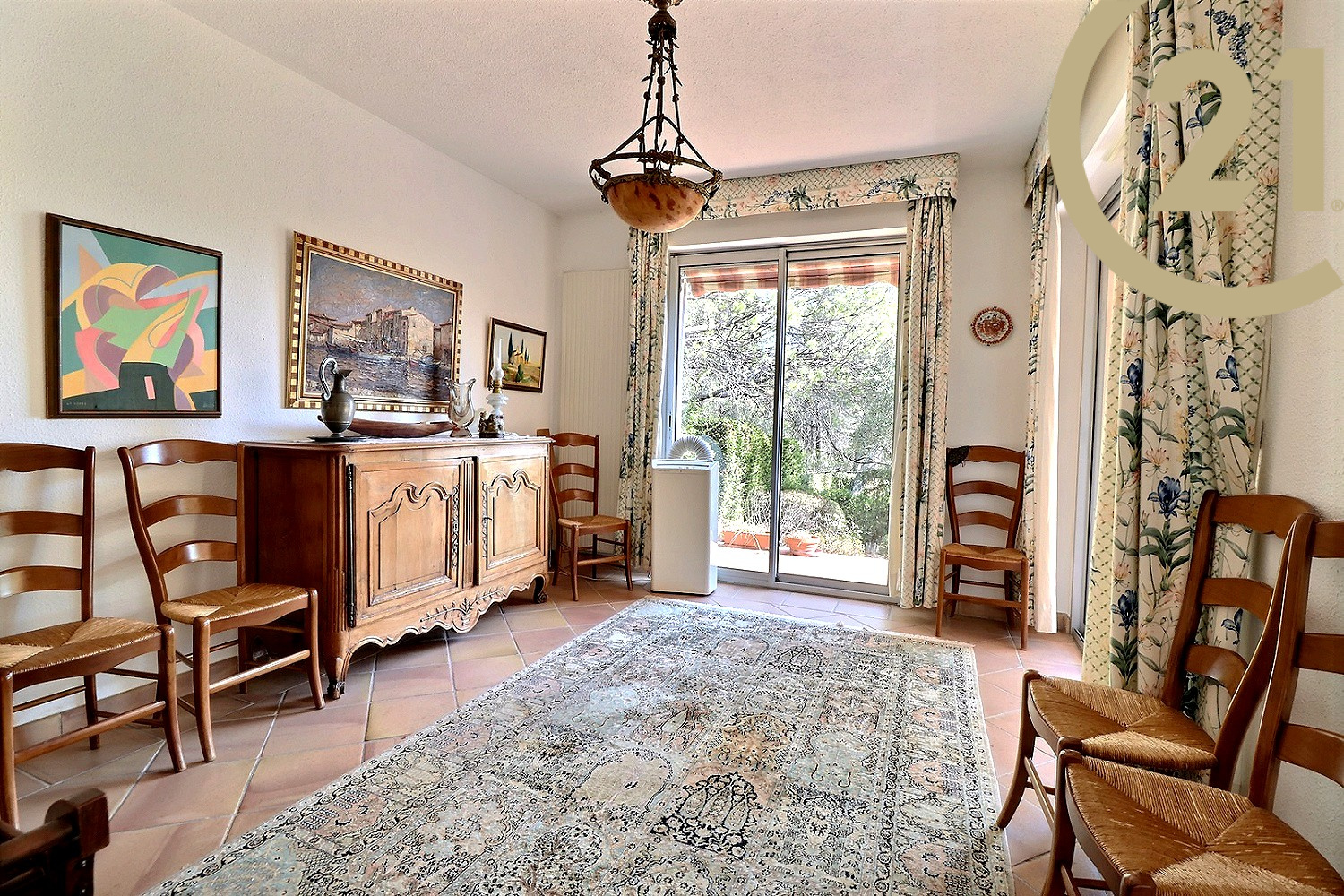 EXCLUSIVITE FREJUS - Belle villa de caractère de 160 m² située dans un quartier calme et arboré. Cette villa offre en rez-de-jardin : un hall d'entrée, un triple séjour lumineux donnant sur une terrasse exposée plein Sud avec vue dégagée, une cuisine indépendante avec arrière cuisine, une grande suite parentale avec salle de bain et WC, une chambre avec placards, une salle d'eau et des WC. L'étage est composé de deux grandes chambres et d'une salle de bain avec WC. Double garage. L'habitation est implantée sur un vaste terrain arboré de 1302 m² en position dominante, nécessitant peu d'entretien et piscinable. Calme absolu et absence de vis-à-vis. Ecoles, centre-ville et accès autoroute accessibles rapidement. Charges annuelles : 193 €.