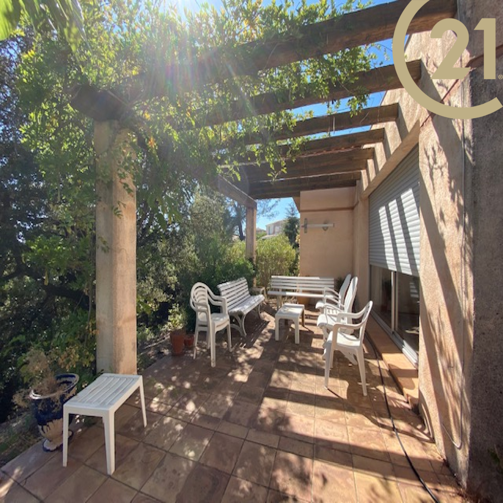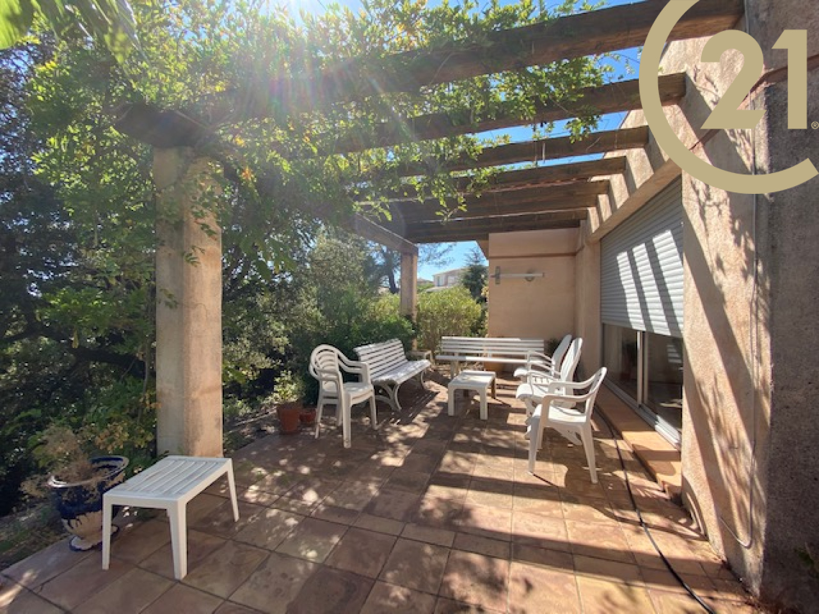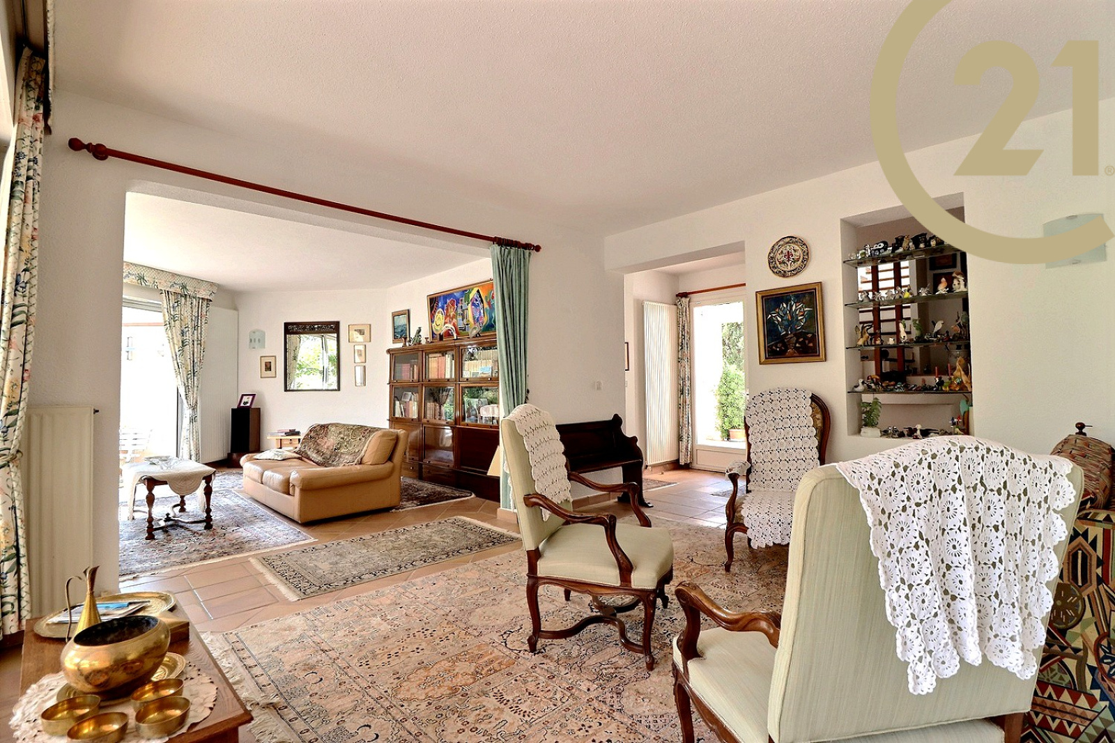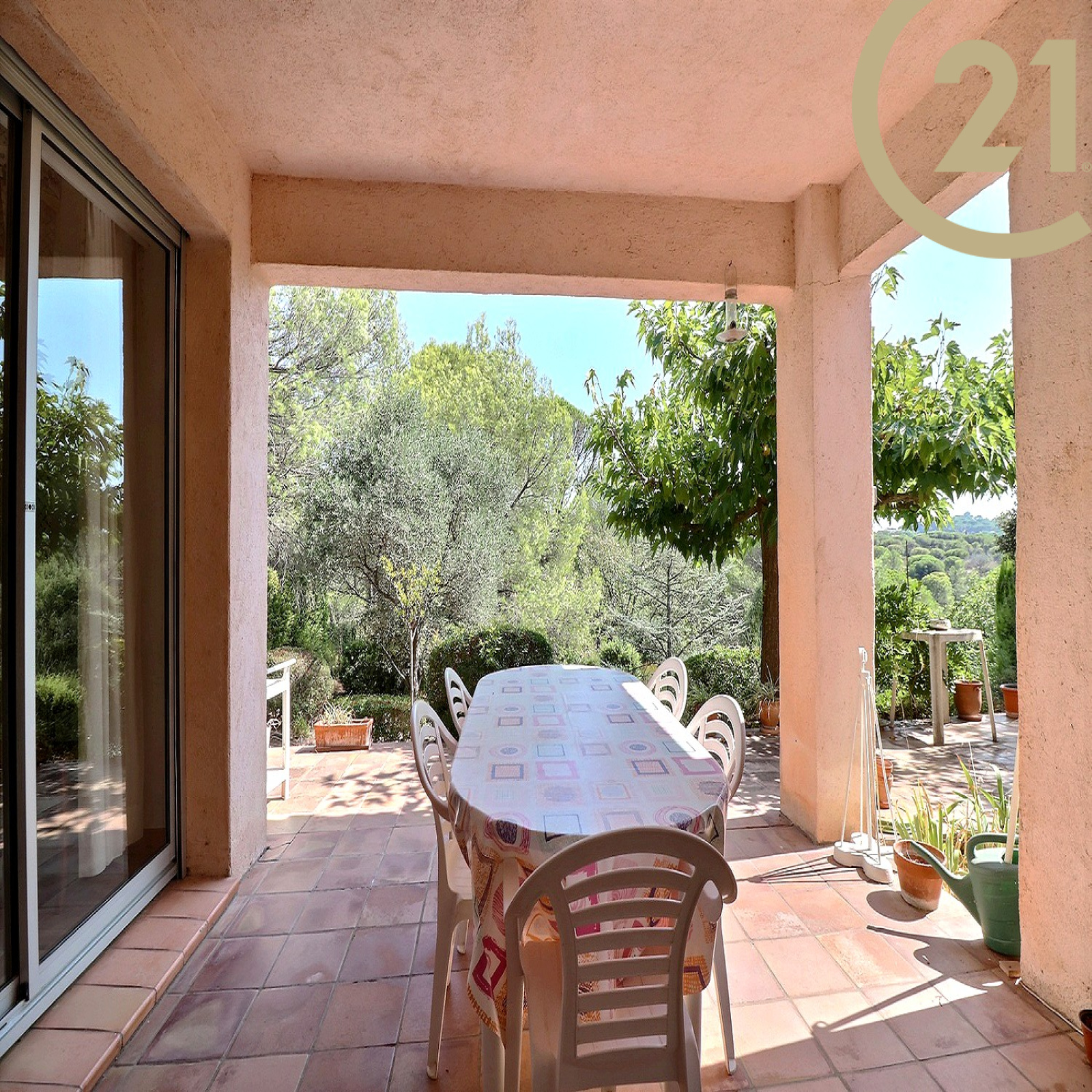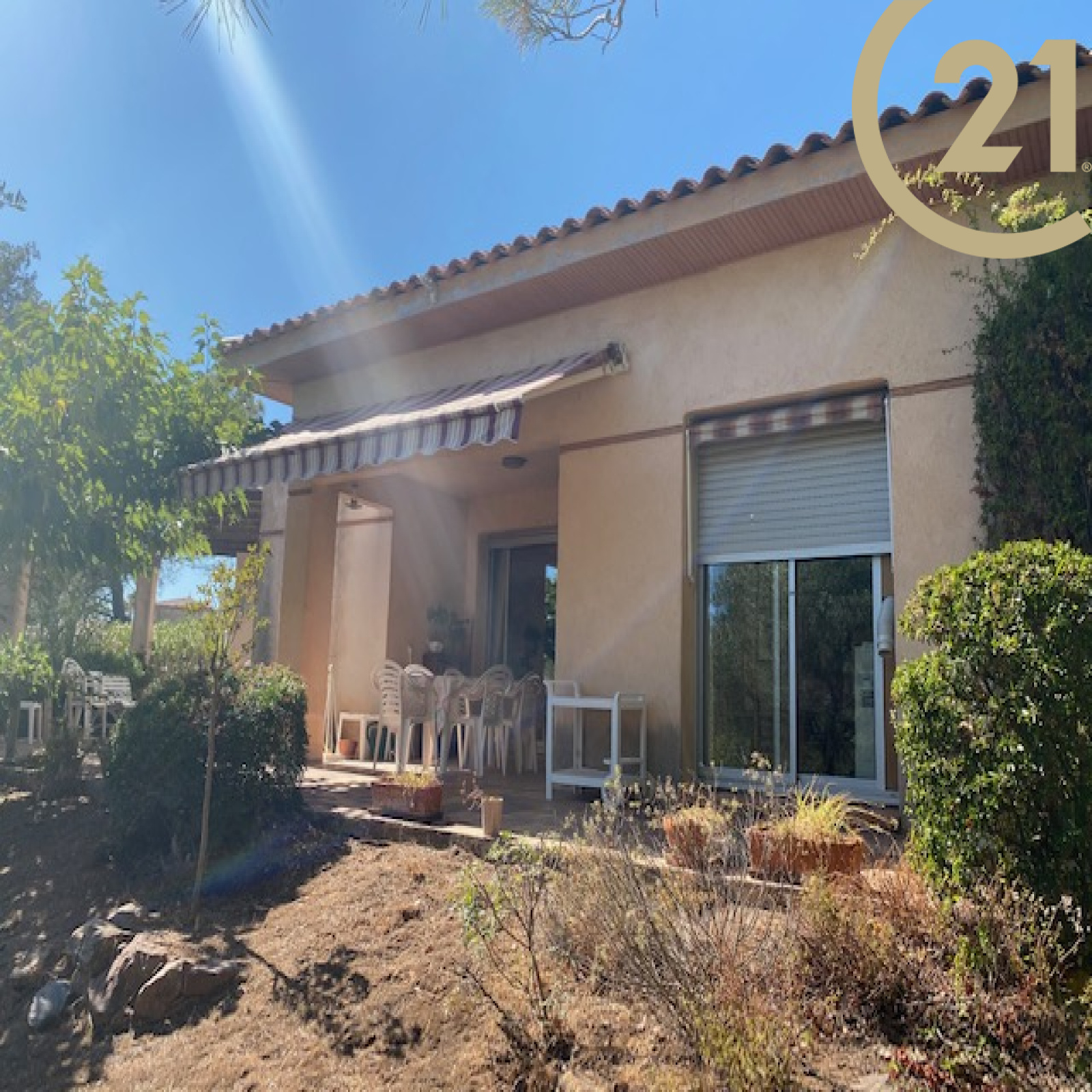 EXCLUSIVITE FREJUS - Belle villa de caractère de 160 m² située dans un quartier calme et arboré. Cette villa offre en rez-de-jardin : un hall d'entrée, un triple séjour lumineux donnant sur une terrasse exposée plein Sud avec vue dégagée, une cuisine indépendante avec arrière cuisine, une grande suite parentale avec salle de bain et WC, une chambre avec placards, une salle d'eau et des WC. L'étage est composé de deux grandes chambres et d'une salle de bain avec WC. Double garage. L'habitation est implantée sur un vaste terrain arboré de 1302 m² en position dominante, nécessitant peu d'entretien et piscinable. Calme absolu et absence de vis-à-vis. Ecoles, centre-ville et accès autoroute accessibles rapidement. Charges annuelles : 193 €.