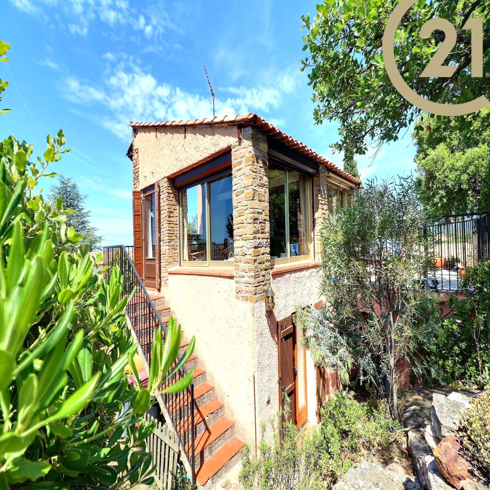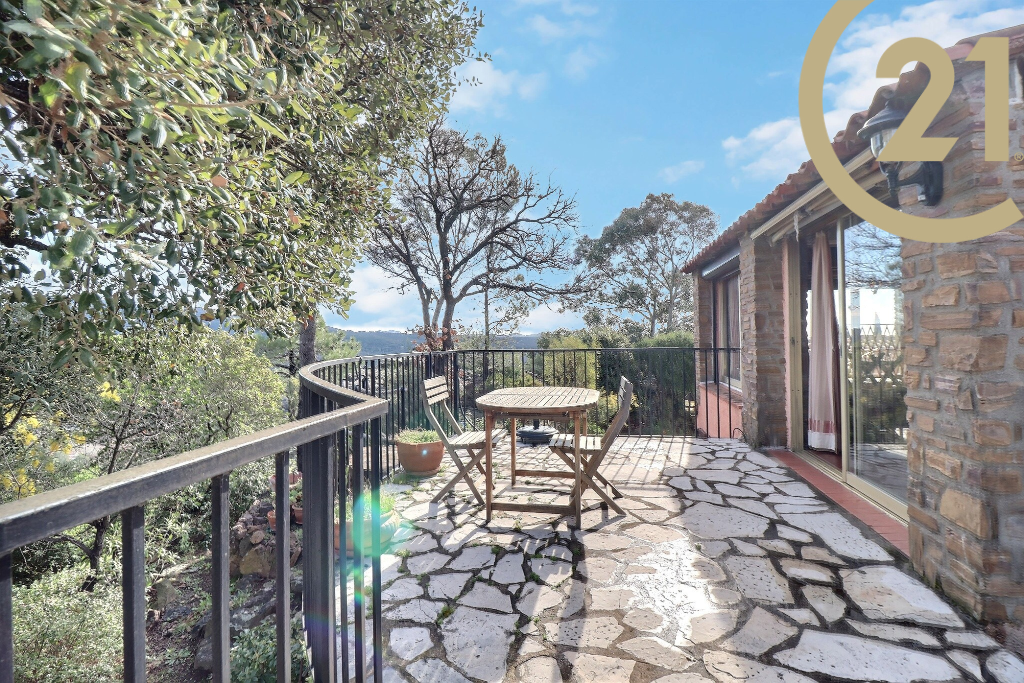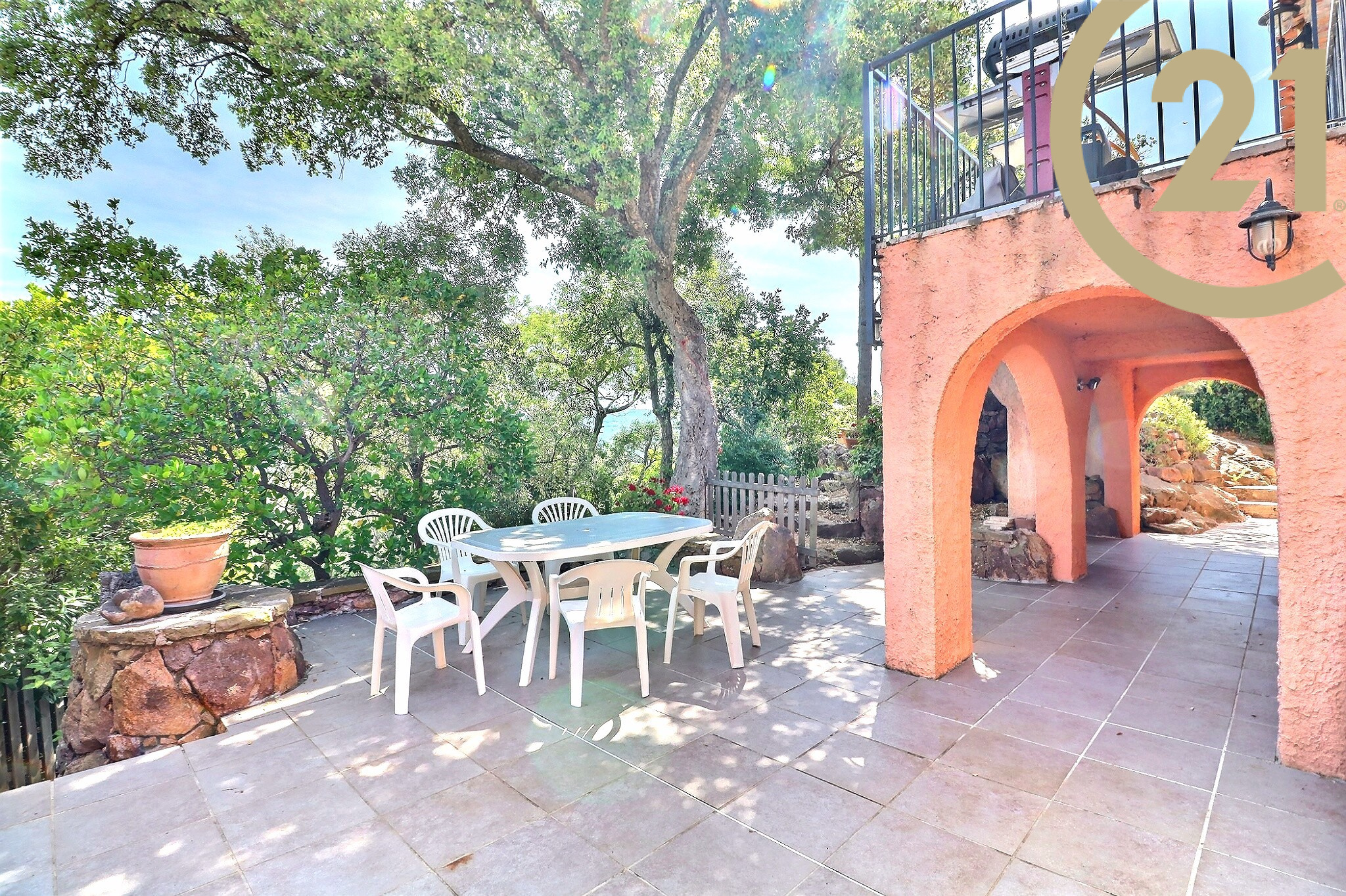 EXCLUSIVITE FREJUS VILLA AVEC VUE DEGAGEE SUR LA MER ET LE MASSIF DE L'ESTEREL - Villa individuelle sans vis-à-vis avec vue dégagée sur les massifs de l'Estérel et des Maures, la mer située dans un beau domaine sécurisé avec gardien, piscines, tennis et aire de jeux. Cette villa édifiée sur un terrain de 600 m² et divisée en deux appartements offre au niveau principal : une entrée avec cuisine, une salle à manger, une grande pièce de vie bénéficiant d'une superbe vue dégagée sur le massif de l'Estérel, la mer et le rocher de Roquebrune-sur-Argens donnant sur une terrasse, une chambre avec salle d'eau et des WC séparés. Le rez-de-chaussée se compose d'une grande pièce de vie ouverte sur une spacieuse terrasse, de deux chambres, d'une salle d'eau et de WC séparés. Vous apprécierez la position dominante, la vue dégagée et l'absence totale de vis-à-vis. Possibilité de réunir les deux appartements. Autoroute et commerces accessibles en quelques minutes. Charges annuelles courantes : 1263 €.