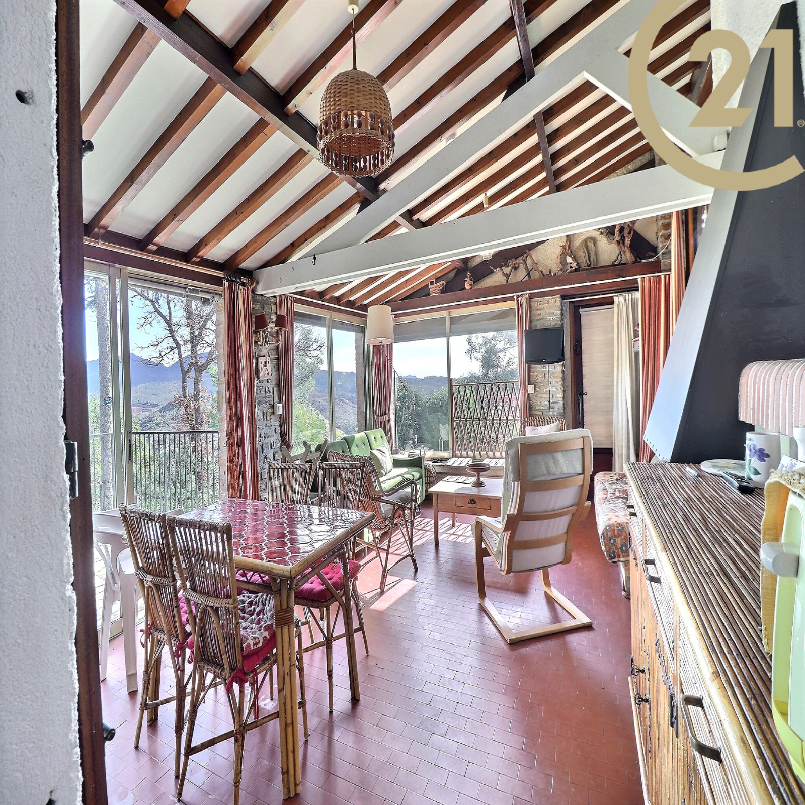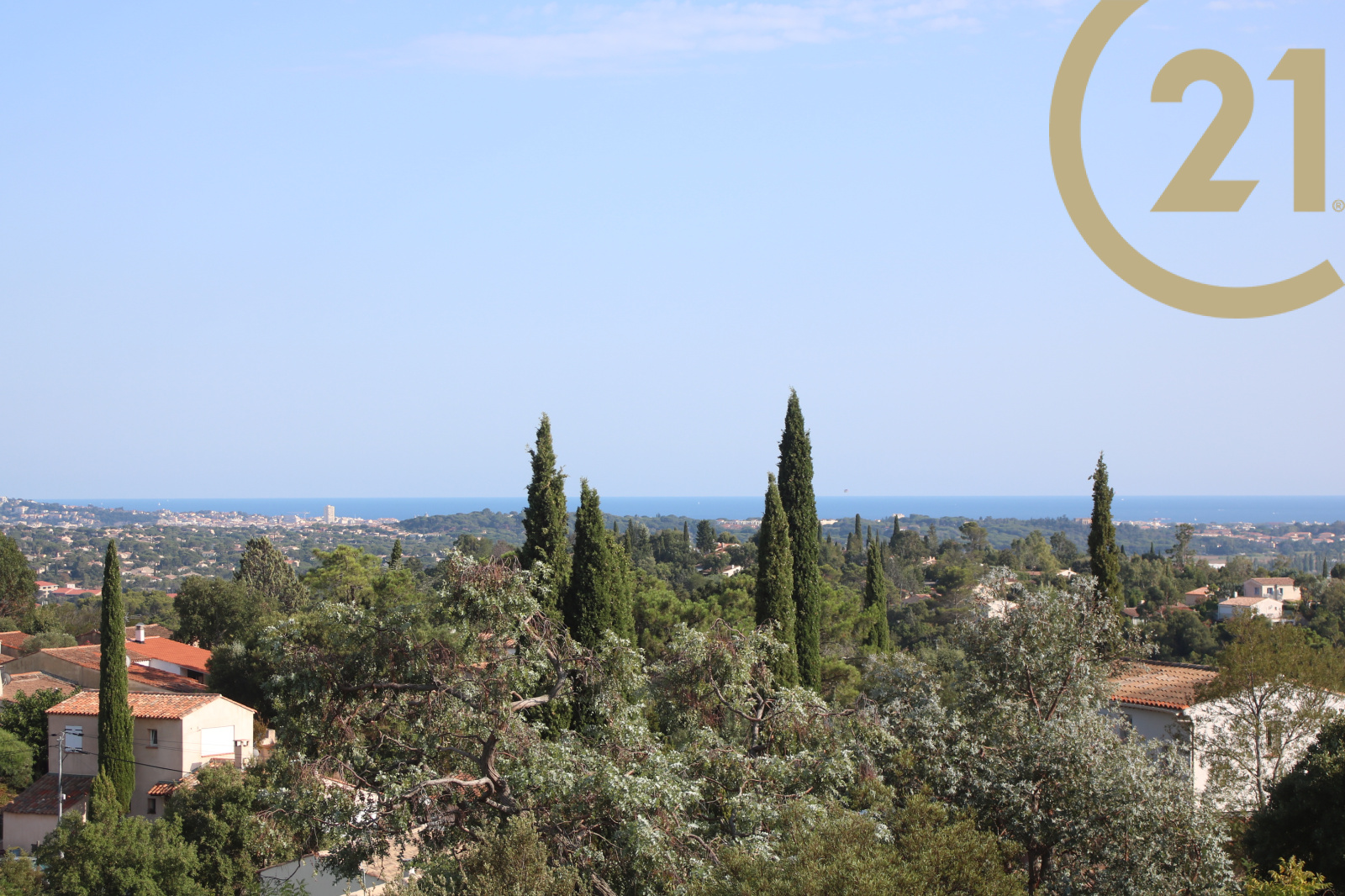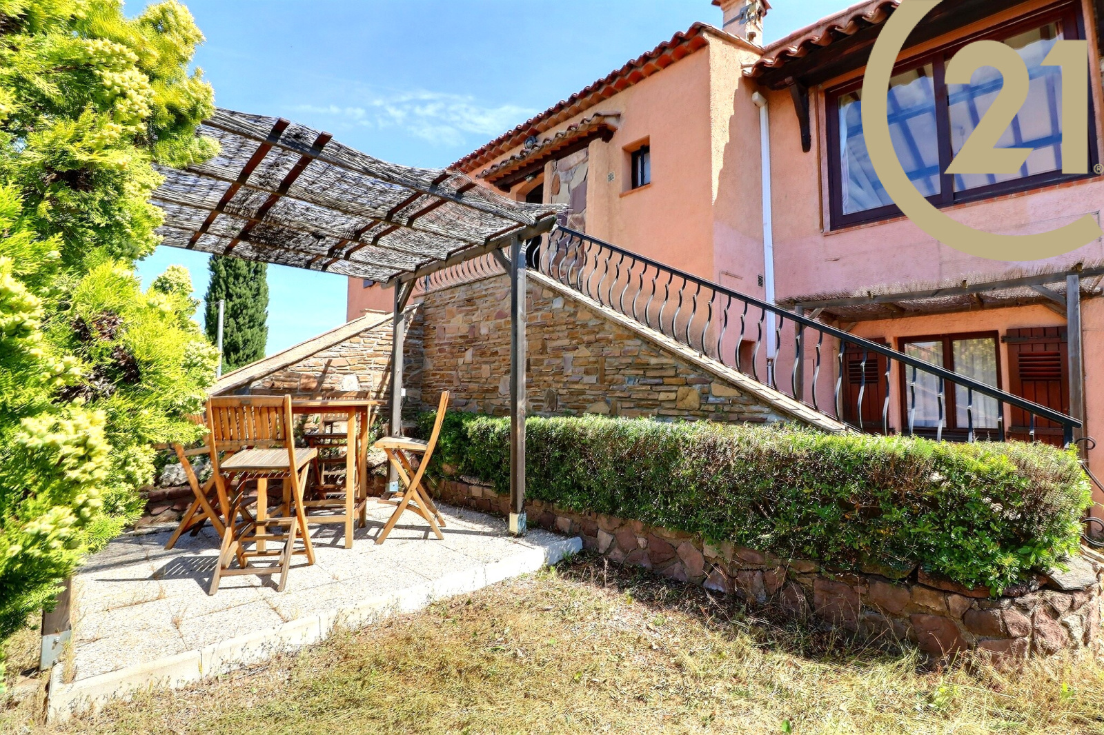 EXCLUSIVITE FREJUS VILLA AVEC VUE DEGAGEE SUR LA MER ET LE MASSIF DE L'ESTEREL - Villa individuelle sans vis-à-vis avec vue dégagée sur les massifs de l'Estérel et des Maures, la mer située dans un beau domaine sécurisé avec gardien, piscines, tennis et aire de jeux. Cette villa édifiée sur un terrain de 600 m² et divisée en deux appartements offre au niveau principal : une entrée avec cuisine, une salle à manger, une grande pièce de vie bénéficiant d'une superbe vue dégagée sur le massif de l'Estérel, la mer et le rocher de Roquebrune-sur-Argens donnant sur une terrasse, une chambre avec salle d'eau et des WC séparés. Le rez-de-chaussée se compose d'une grande pièce de vie ouverte sur une spacieuse terrasse, de deux chambres, d'une salle d'eau et de WC séparés. Vous apprécierez la position dominante, la vue dégagée et l'absence totale de vis-à-vis. Possibilité de réunir les deux appartements. Autoroute et commerces accessibles en quelques minutes. Charges annuelles courantes : 1263 €.