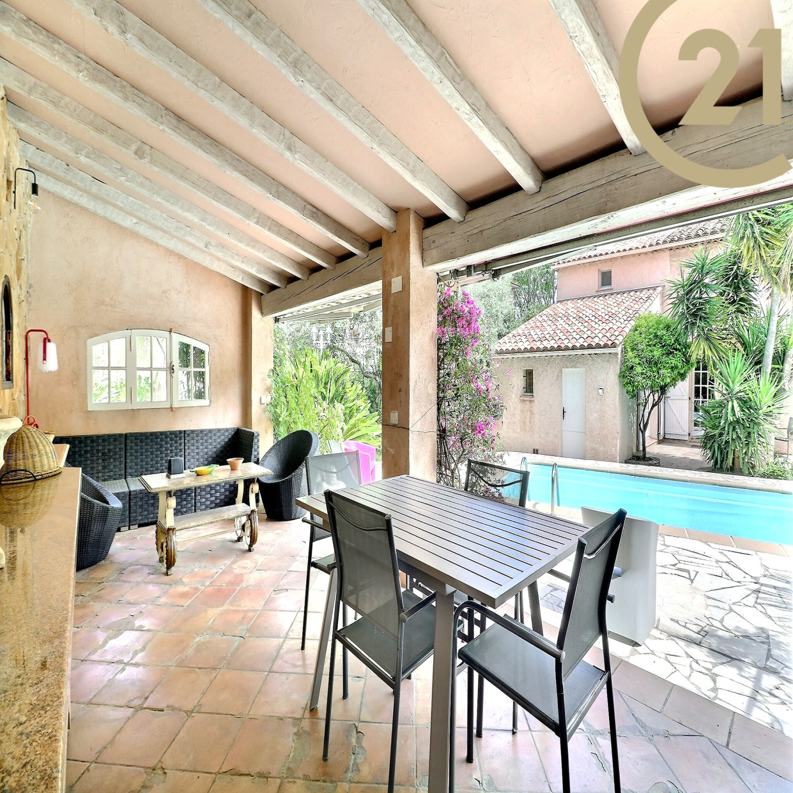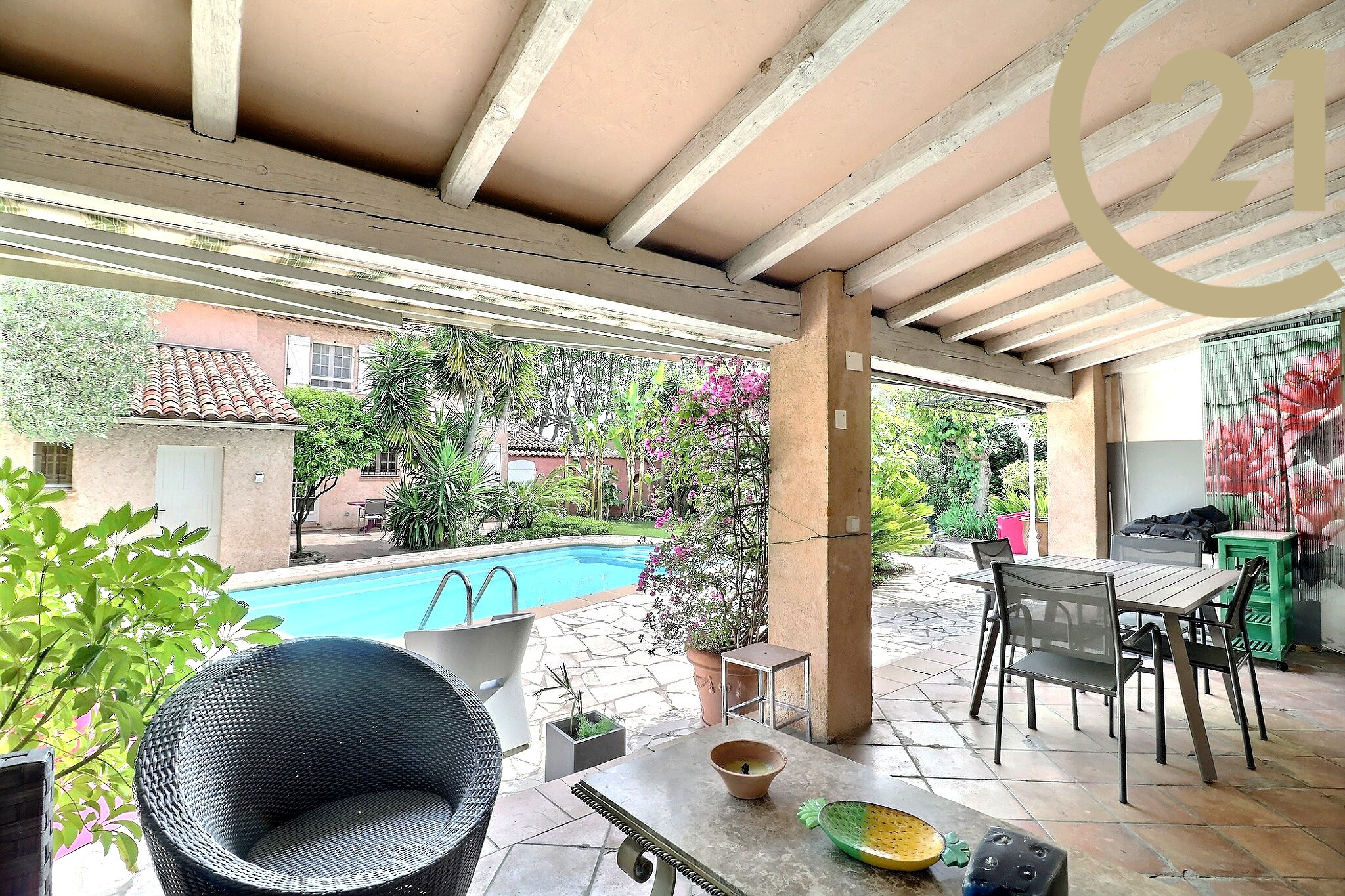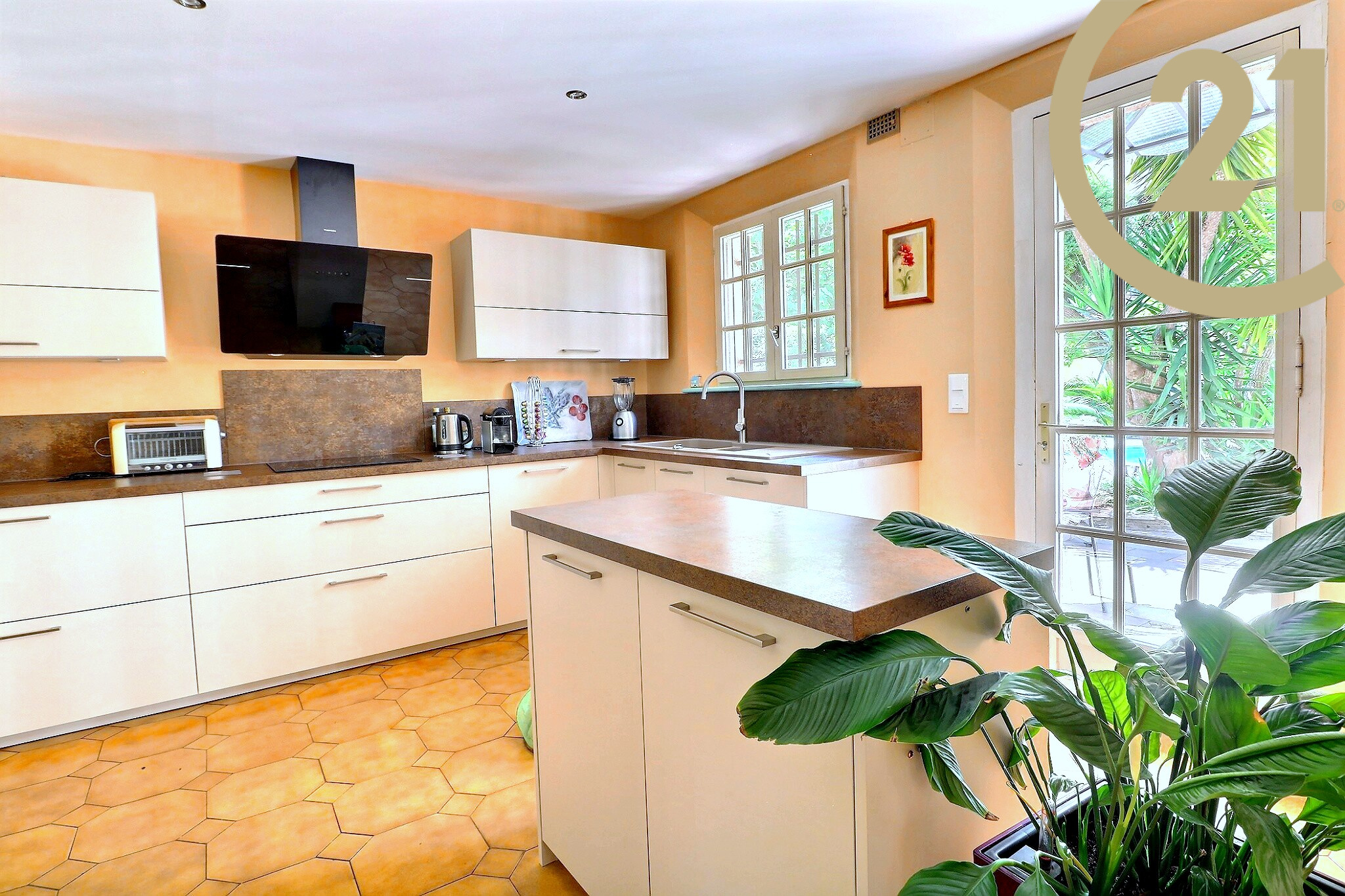 FREJUS - Belle villa individuelle 5 pièces de 155 m² nichée dans un cocon de verdure à deux pas de toutes les commodités. Cette maison parfaitement entretenue offre un large hall d’entrée avec rangements et WC, un espace buanderie, un double séjour salle à manger de plus de 51 m2 donnant sur l'extérieur, une cuisine ouverte haut de gamme entièrement équipée offrant également un accès à l'extérieur, une chambre avec espace bureau et placards de 20 m², une chambre de 10.98 m² avec placard, une salle d'eau et une grande suite parentale de plus de 22 m² avec salle de bains, WC privatifs et rangements, une salle d’eau, et des toilettes séparés. La maison est édifiée sur un superbe terrain plat et paysager de 956 m2 avec jolie piscine, pool House, deux abris pour voitures et 4 grands espaces de rangements. Centre-ville, plages et tous commerces accessibles à pied en quelques minutes seulement. Vous apprécierez la position centrale de cette villa, son aspect soigné et ses beaux volumes.