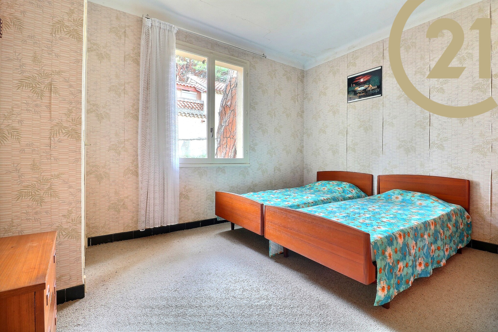 EXCLUSIVITE FREJUS PLAGE - Rare sur le secteur - Villa individuelle de plain-pied idéalement située à 300 mètres des plages de sable et de tous les commerces. Cette villa de caractère édifiée sur un terrain plat de 635 m² offre un hall d'entrée, 3 chambres, un double séjour/salle à manger, une cuisine indépendante, une salle d'eau et des WC séparés. Un appartement 2 pièces de 38 m² composé d'un séjour, d'un espace cuisine, d'une chambre, d'une salle d'eau et de WC séparés complète ce bien. Travaux de remise au goût du jour à prévoir. Vous apprécierez la situation prisée de cette villa, son cachet et son environnement arboré.
