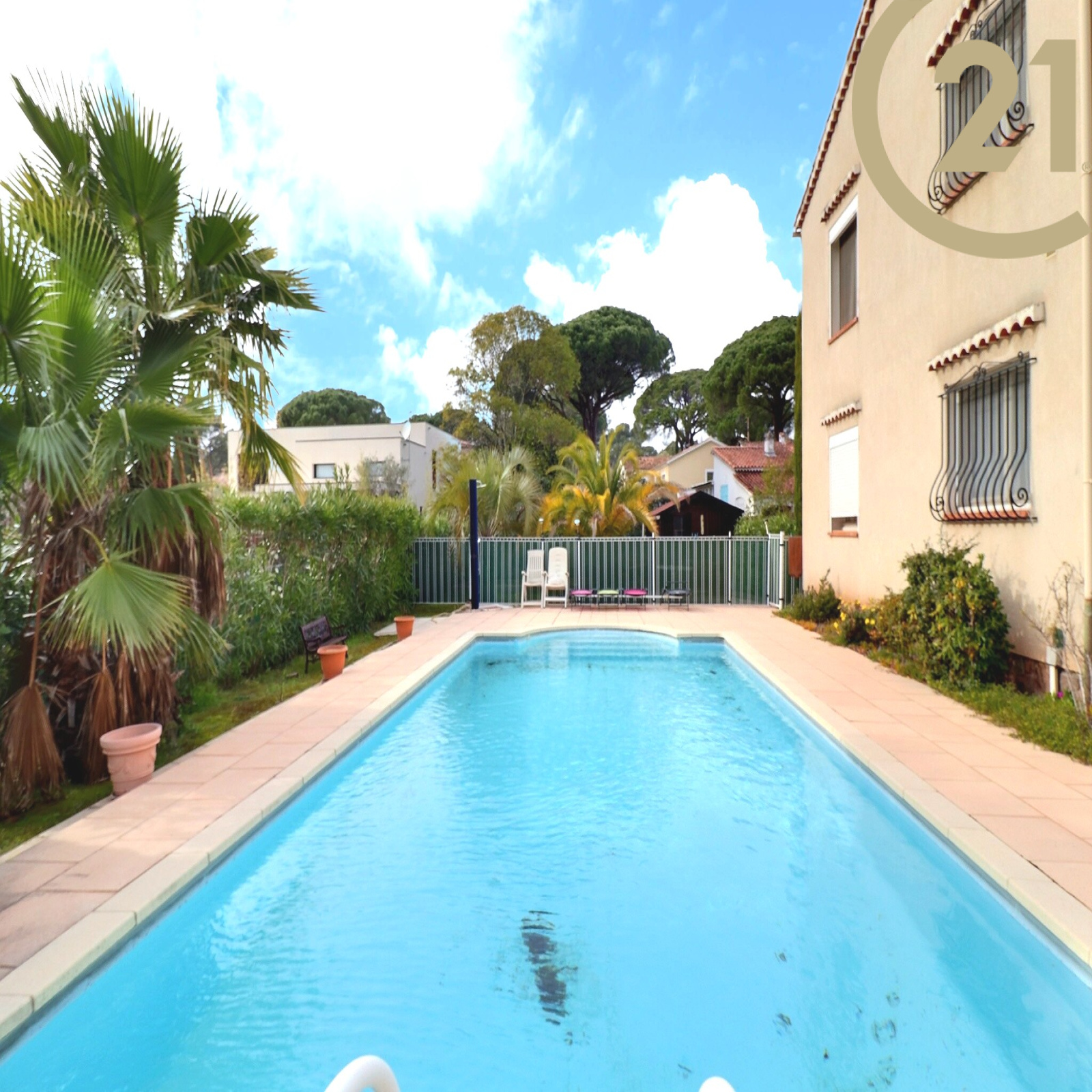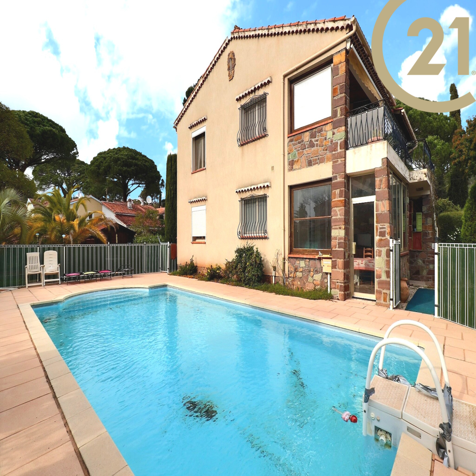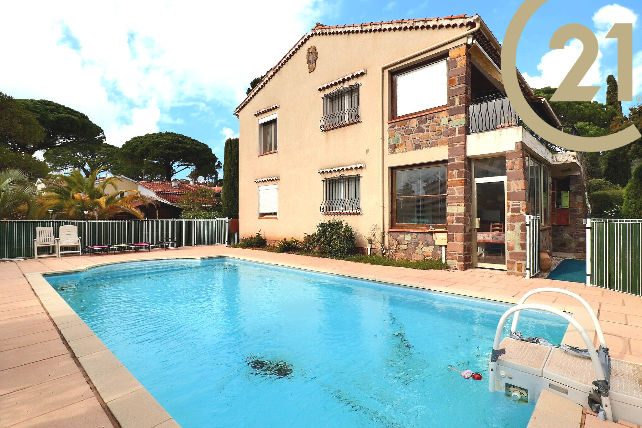 FREJUS TOUR DE MARE - Belle villa individuelle 6 pièces de 142 m² édifiée sur beau un terrain plat de 963 m² avec piscine idéalement située au cœur du quartier de la Tour de Mare. Cette maison présentant une belle qualité de construction est divisée en deux appartements. L'étage se compose d'un séjour avec cheminée ouvert sur une terrasse, d'une cuisine indépendante donnant également sur la terrasse, de deux grandes chambres, d'une belle salle d'eau et de WC indépendants. Le rez-de-chaussée offre une cuisine ouverte sur une terrasse fermée ensoleillée, deux chambres spacieuses, une salle d'eau et des WC séparés. Un garage fermé complète ce bien. Grand espace piscine avec plage aménagée et abri de jardin.