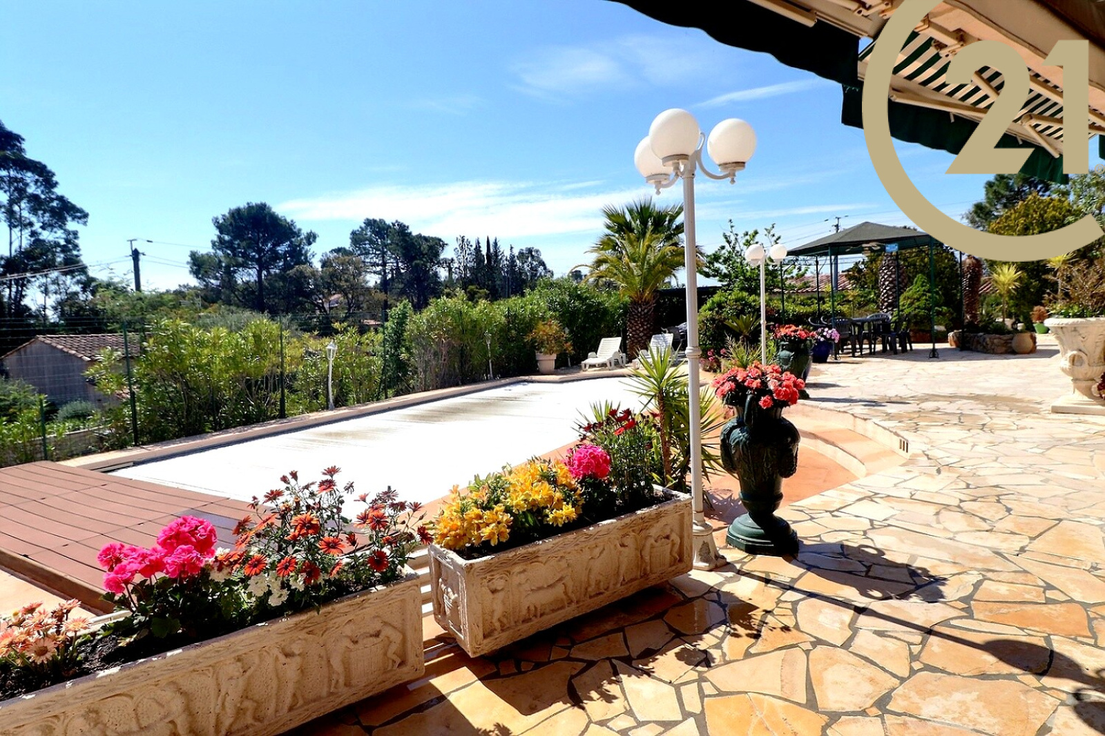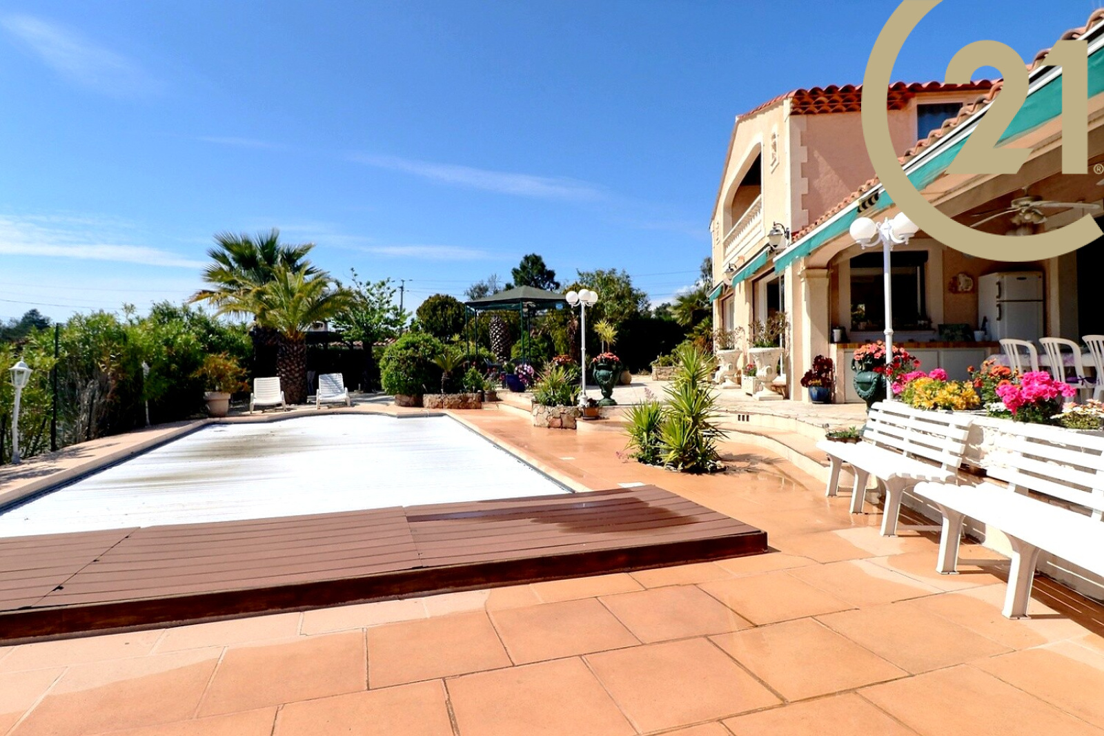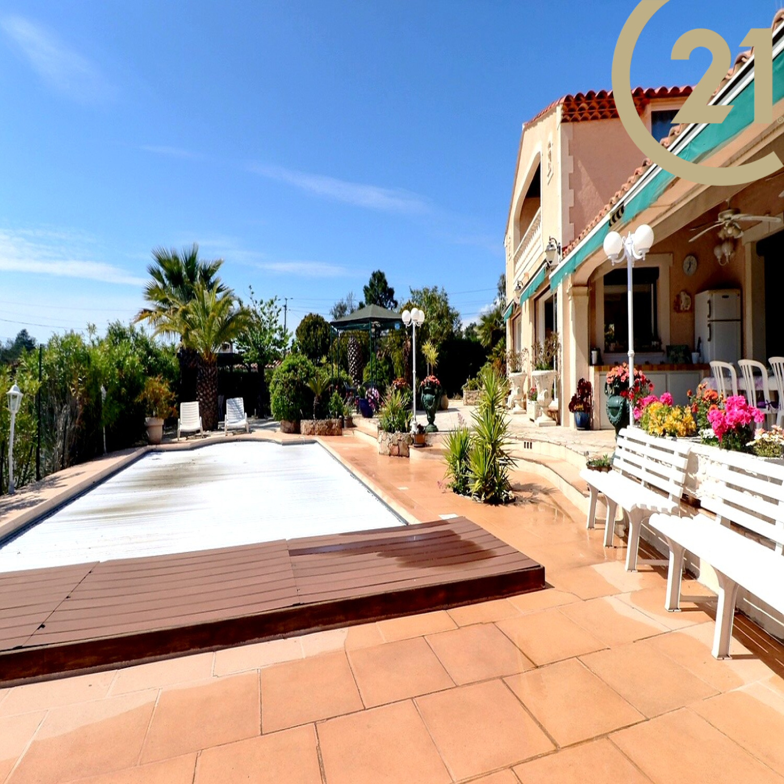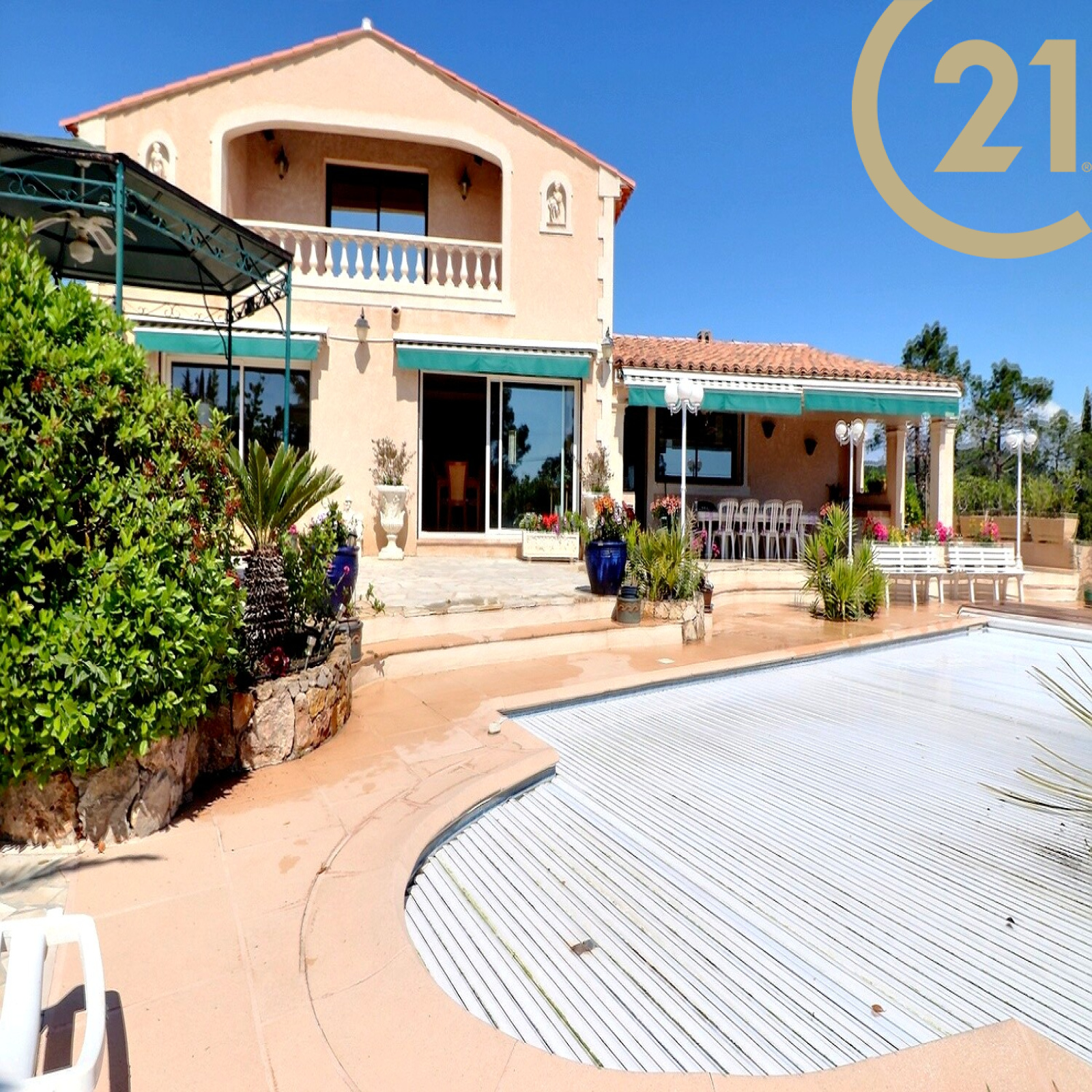 VENTE EN EXCLUSIVITE - FREJUS - À quelques minutes de l'autoroute, magnifique villa édifiée sur un terrain d'environ 600 m² en position dominante avec une belle piscine couverte et chauffée.