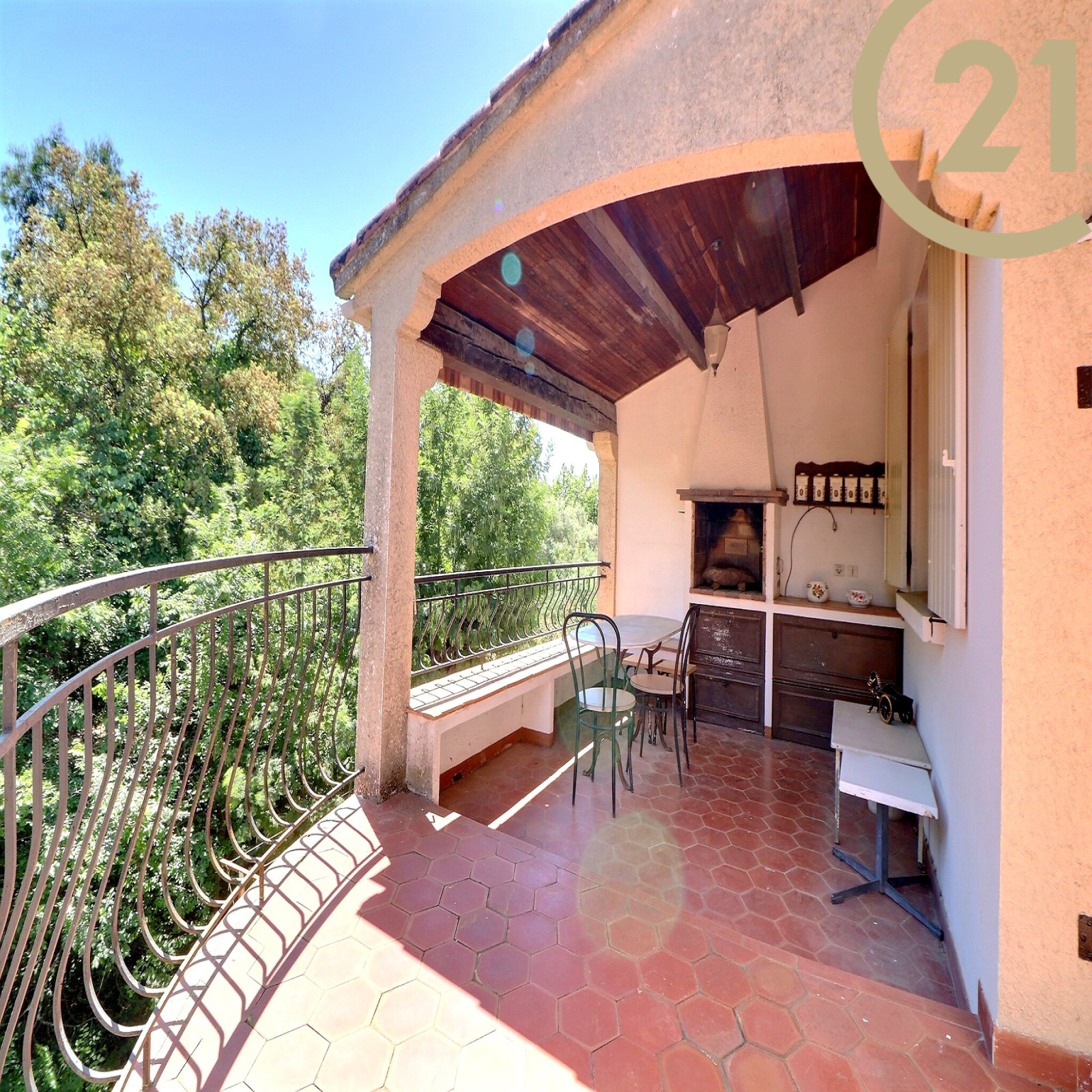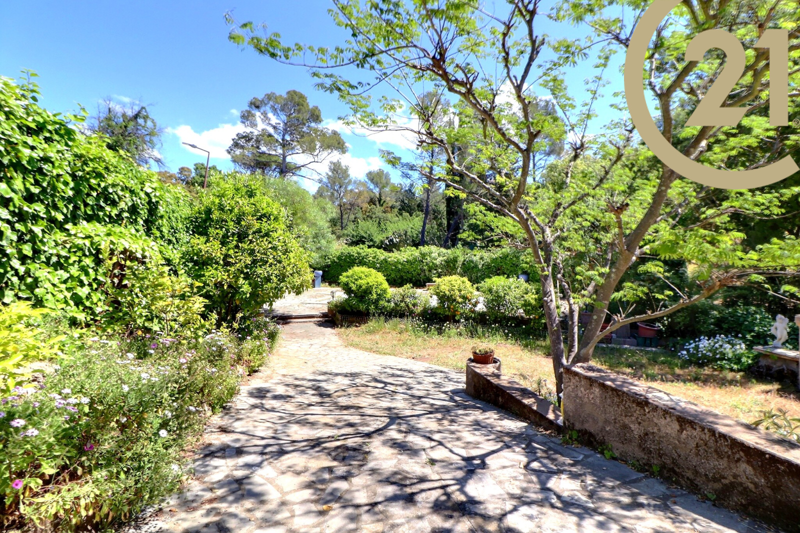 La maison est implantée sur un beau jardin arboré avec piscine. Possibilité de stationner plusieurs véhicules sur le terrain.
