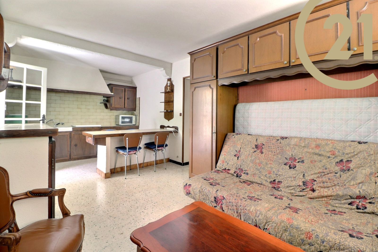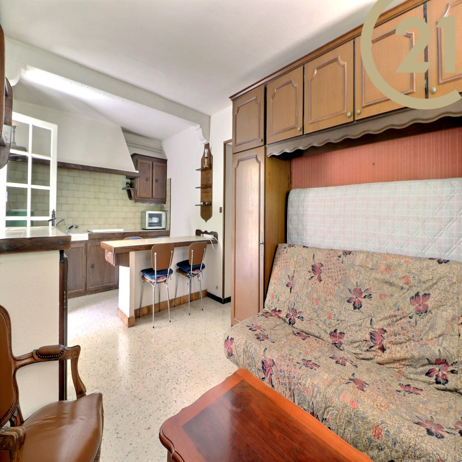 Elle se compose d'un appartement deux pièces en rez-de-jardin avec : séjour et cuisine ouverte donnant sur le jardin, une chambre, une salle d'eau et un WC indépendant.