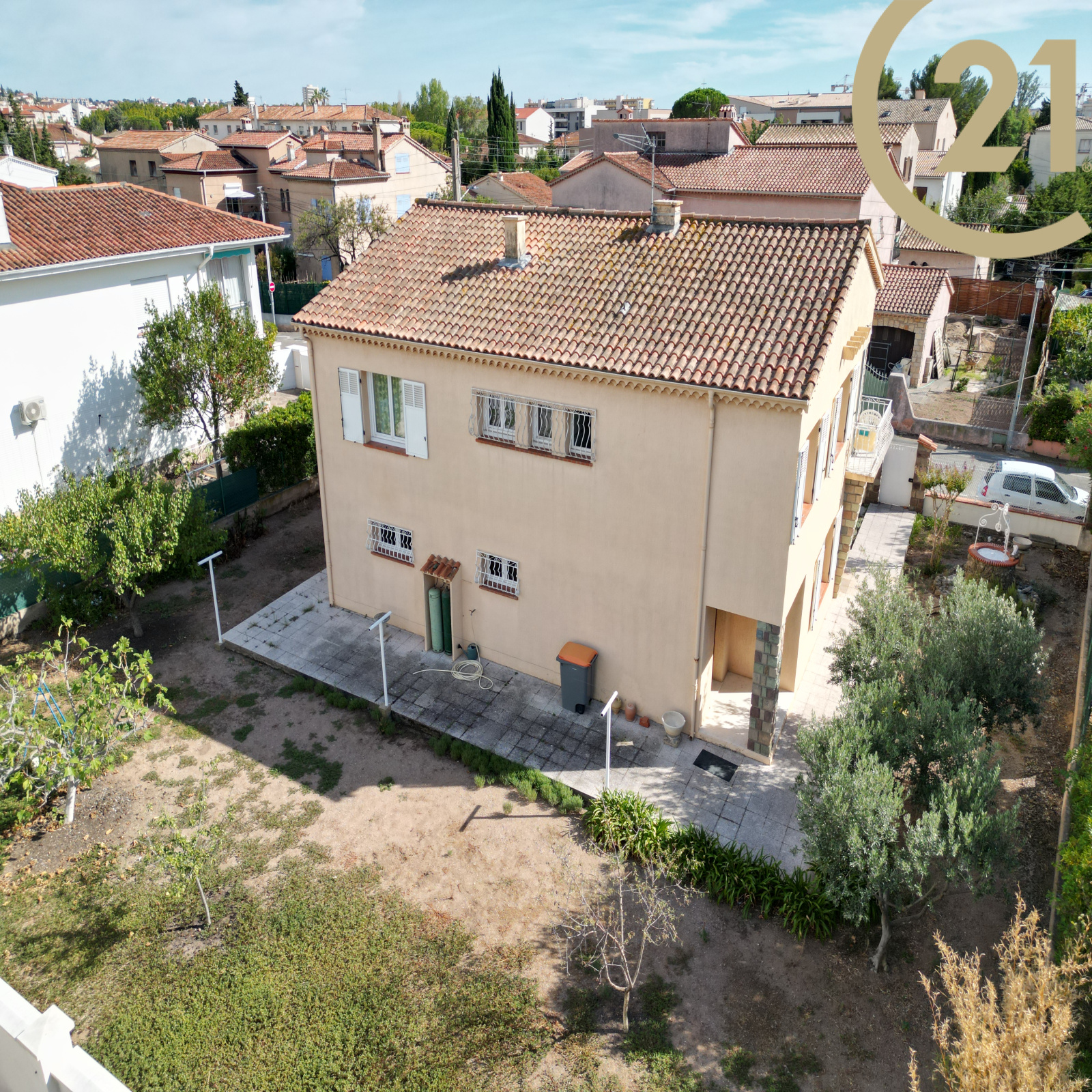 EXCLUSIVITE FREJUS - situé à 15min à pied de la mer, dans un quartier calme à proximité immédiate des commerces et des commodités, belle villa individuelle édifiée sur un terrain plat de 598 m². La partie principale à l'étage se compose d'un hall d’entrée, d'un double séjour/salle à manger de 25 m² ouvert sur une terrasse exposée Sud, d'une cuisine, de trois chambres, une salle de bains et un WC indépendant. Le rez-de-chaussée accueille un hall d'entrée donnant accès à l'étage, un bureau de 17m² ainsi qu'un grand garage/atelier de 60m². Vous apprécierez la proximité des commodités, les volumes et l'environnement calme de ce bien. Cette maison offre de nombreuse possibilité : réunir les deux niveaux, créer deux appartement, atelier de stockage pour entrepreneur ou bien encore cabinet libéral. Absence de charges de lotissement.