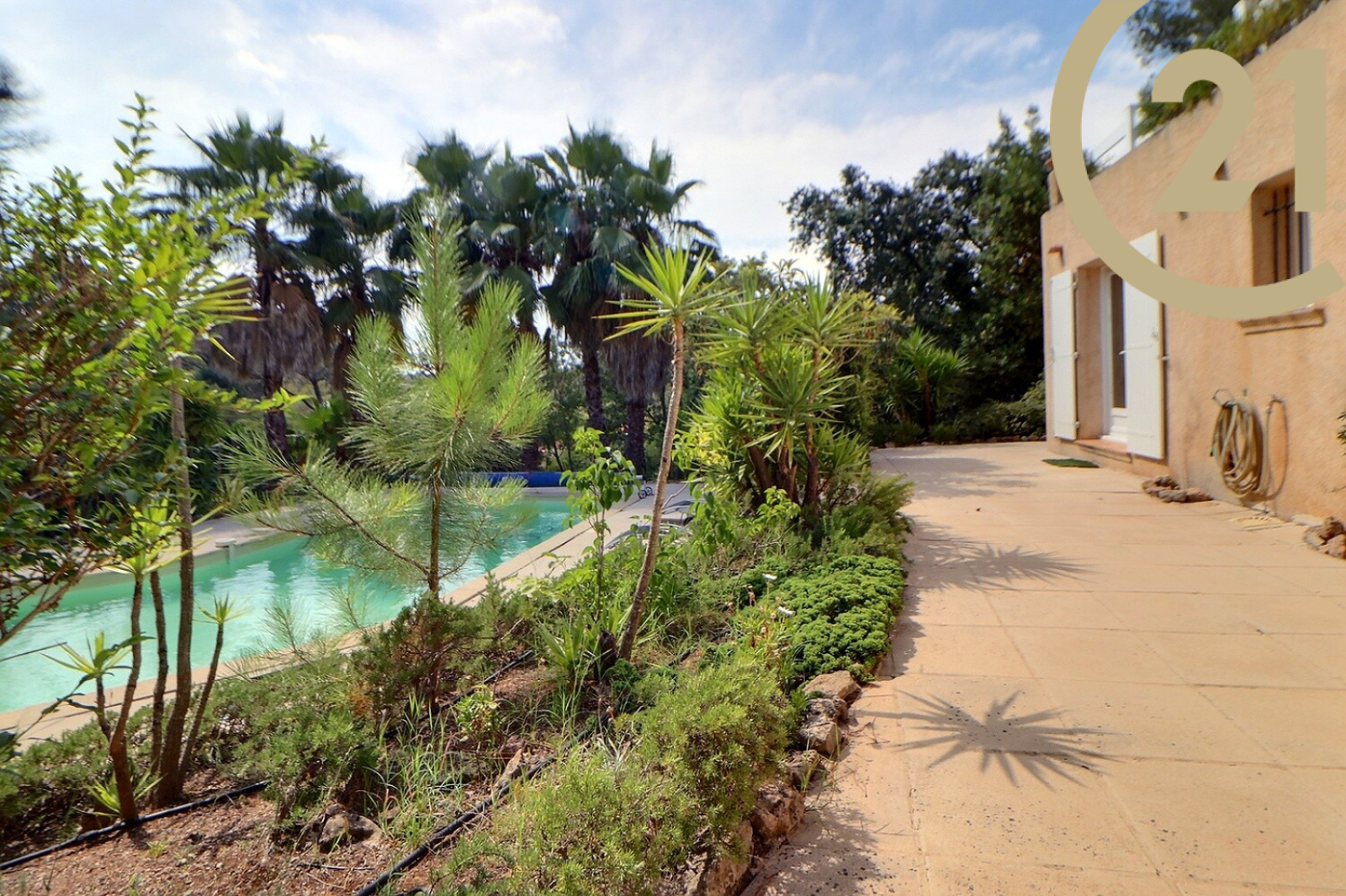 Vous pourrez profiter d'une belle piscine chauffée dans un joli jardin méditerranéen.
