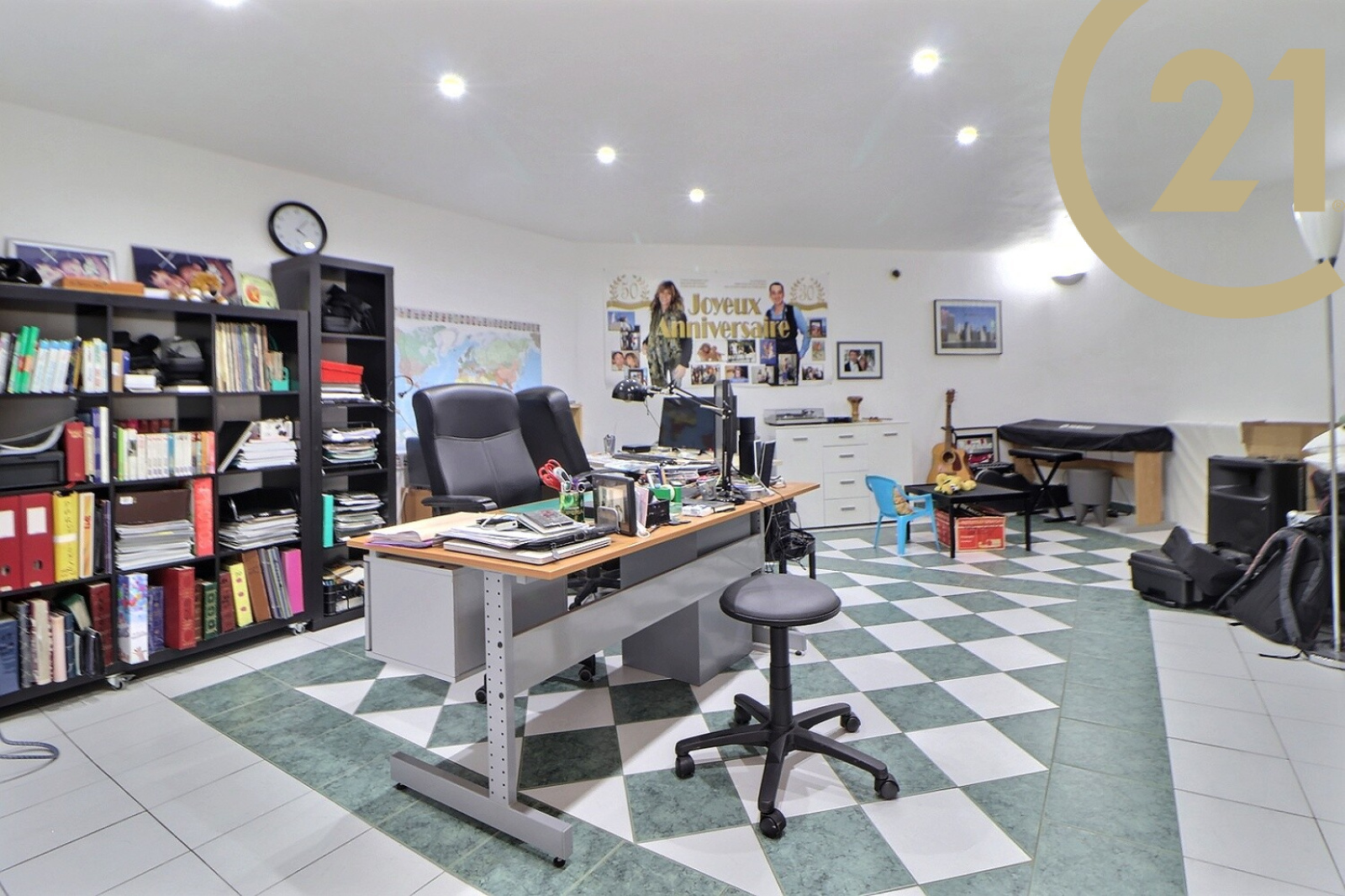A l'étage inférieur : une grande pièce pouvant faire office de bureau ou salle de jeux, deux chambres avec placard, une salle de bains, un WC indépendant, une buanderie et un garage. Le bien dispose également d'un vide sanitaire.