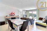 Le séjour donne sur un extérieur exposé SUD nécessitant peu d'entretien avec stores électriques.