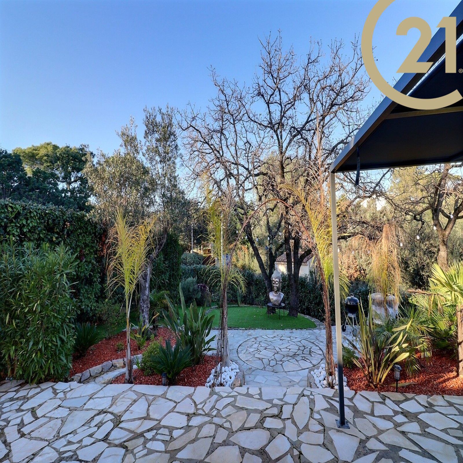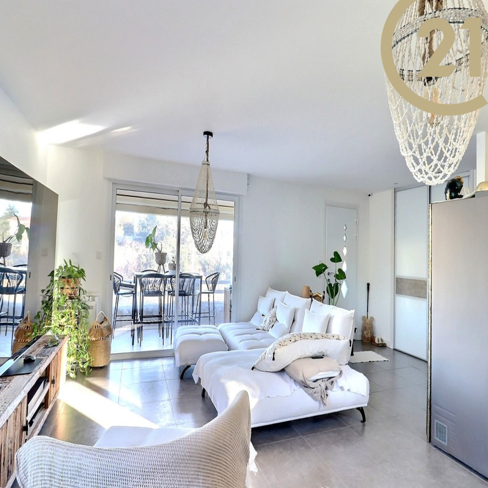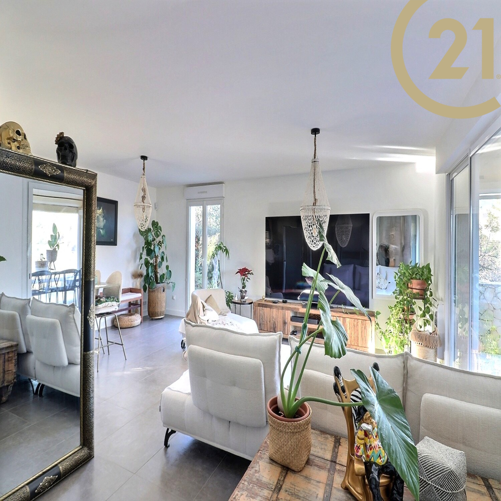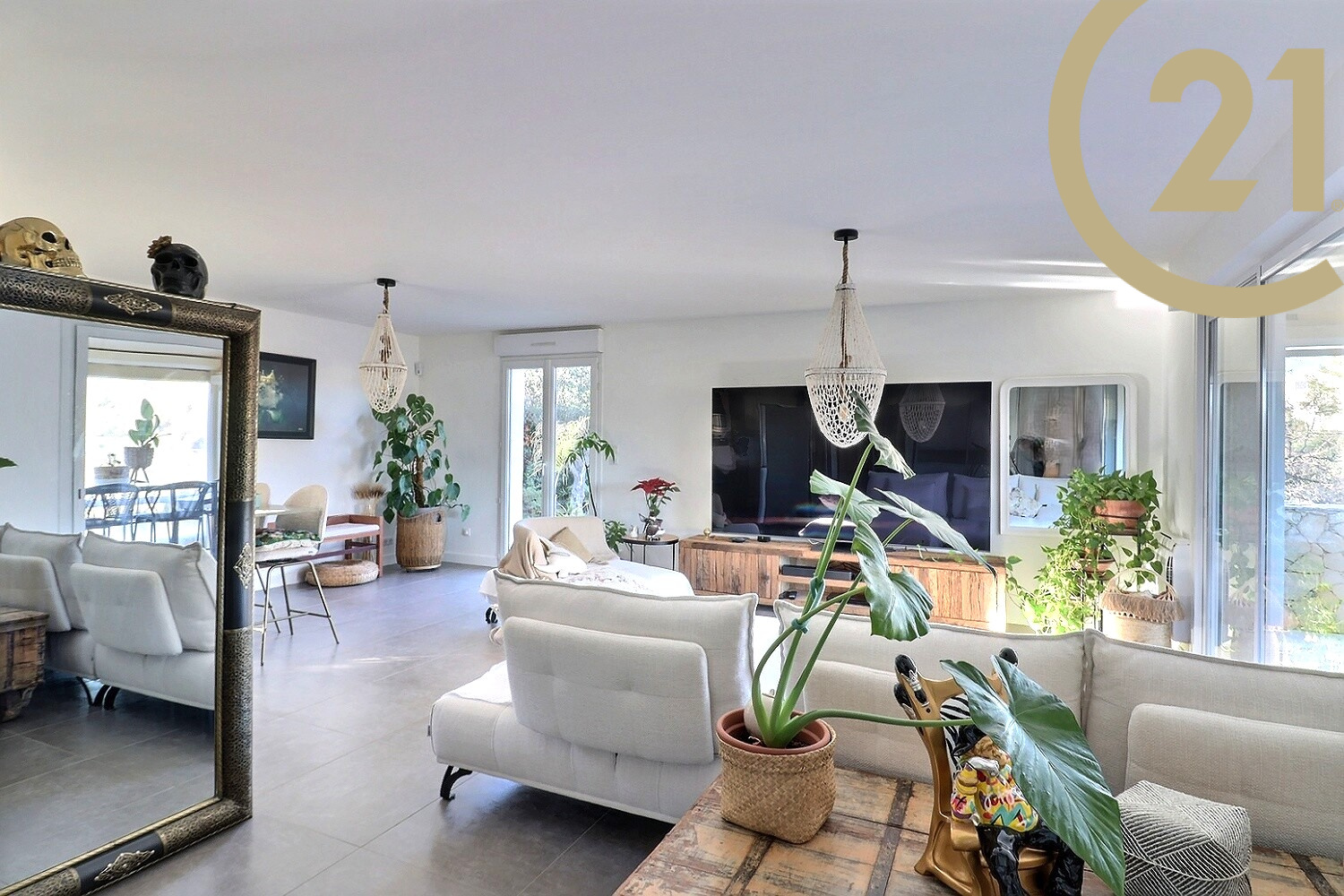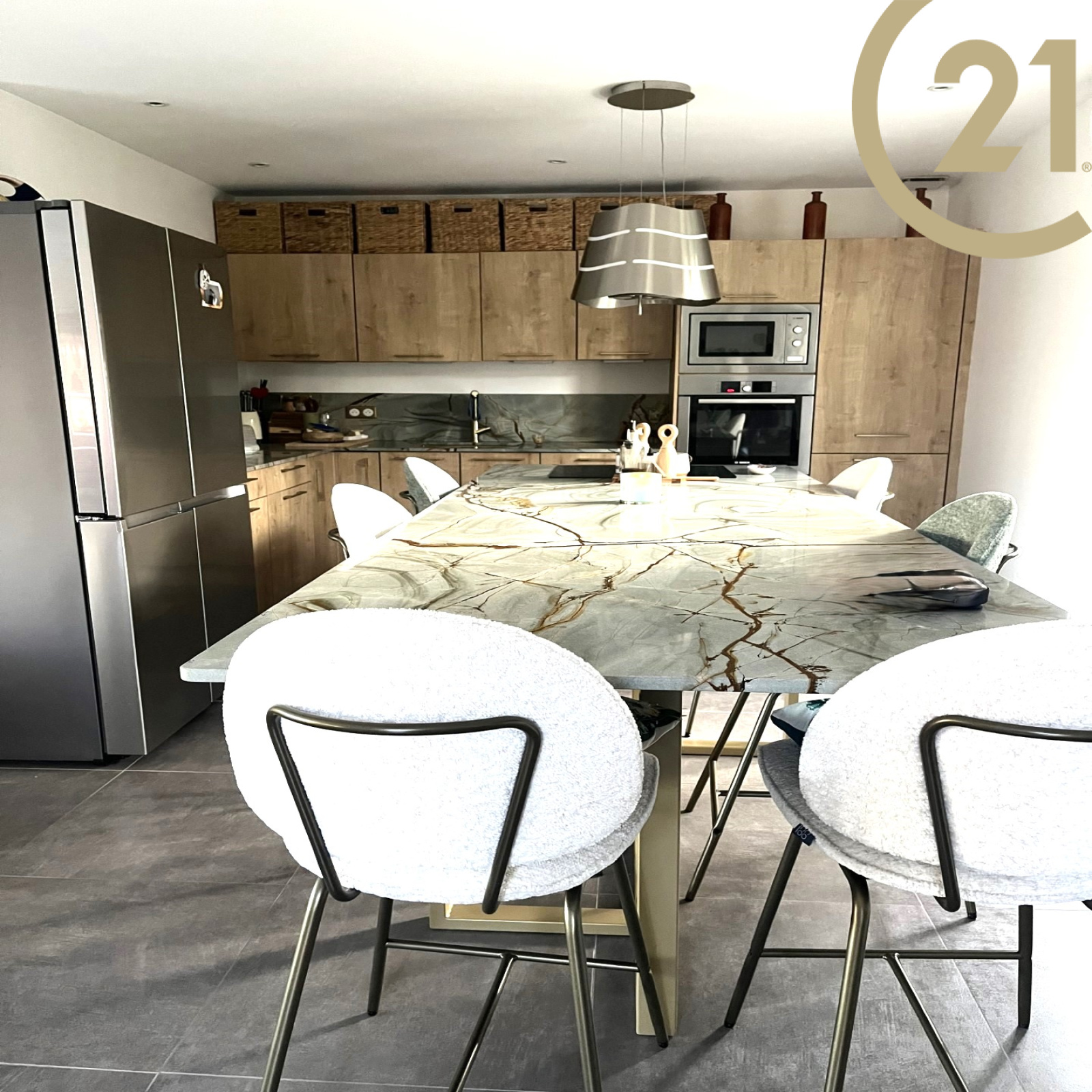 Dès l’entrée, vous serez séduit par un bel espace de vie d'environ 50 m², avec un grand séjour baigné de lumière et une cuisine ouverte avec un plan de travail en marbre. Cette pièce de vie s’ouvre sur la véranda, une grande terrasse et le jardin.