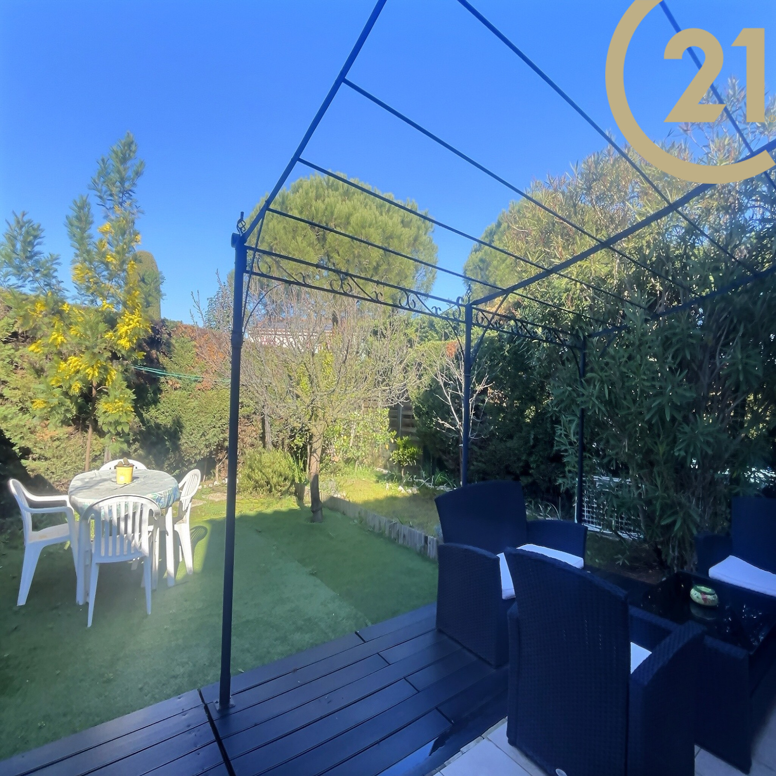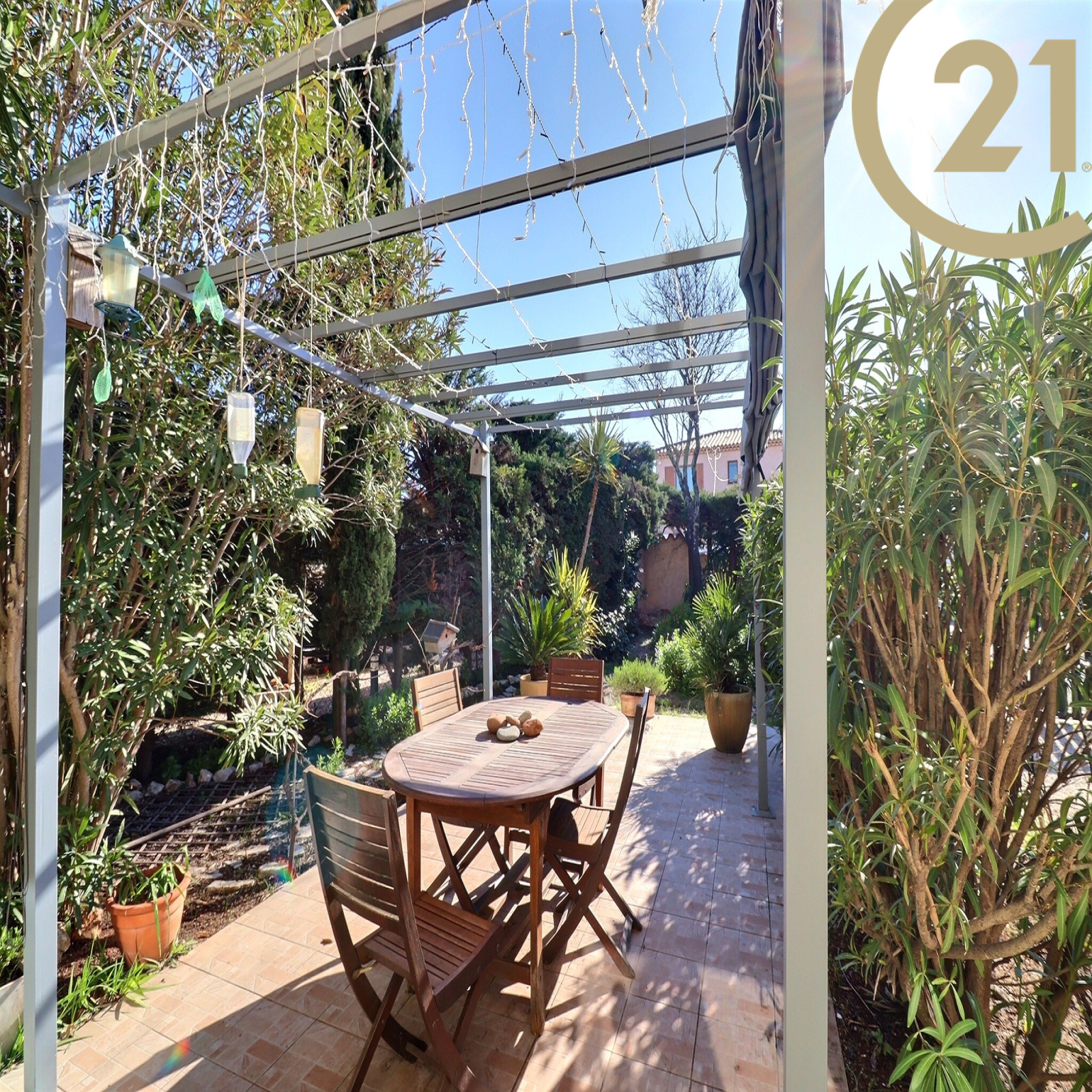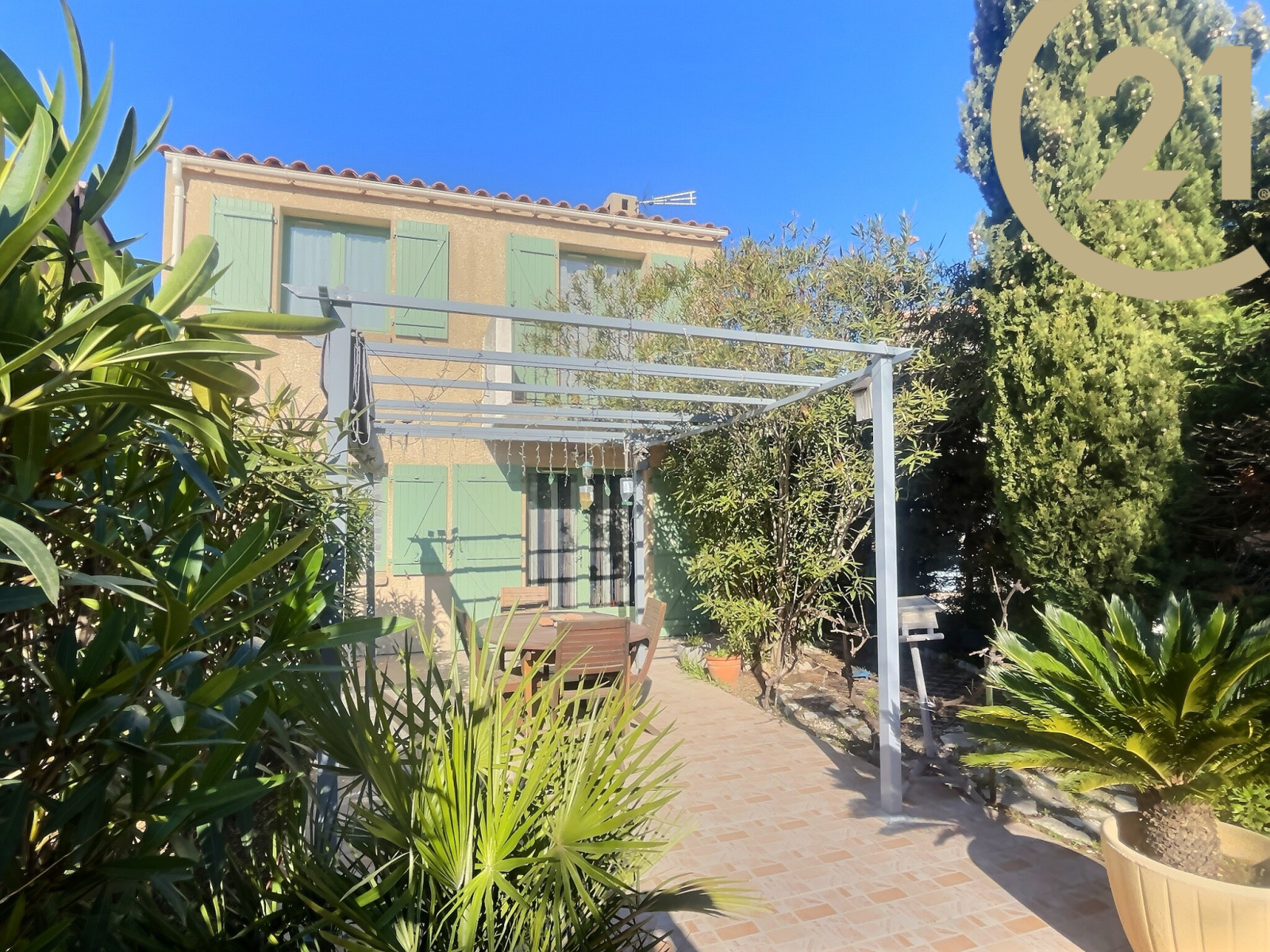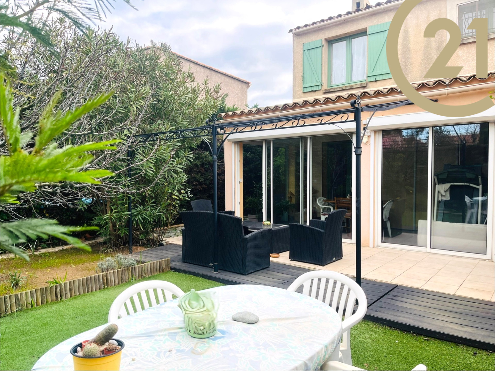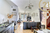 VENTE EN EXCLUSIVITE - FREJUS - VILLA 5P - Au calme tout en étant proche des commodités, découvrez cette villa mitoyenne par le garage d'environ 94 m2 dont 75.65 m² en loi carrez sur un terrain de 370 m2 clos et arboré. Elle se compose en rez-de-chaussée : d'une entrée, d'un séjour traversant avec cheminée, d'une cuisine indépendante aménagée avec possibilité d'ouvrir sur le séjour, un WC séparé, une véranda d'environ 15 m2 équipée de volets électriques, une salle d'eau. A l'étage: 3 chambres dont une avec un balcon exposé sud, une salle de bains avec WC. Vous disposez d'un garage de 15 m² + 2 stationnements sur le terrain. Bel espace extérieur arboré et clos, double exposition pour profiter pleinement. Bien en copropriété de 70 lots - charges annuelles 200 euros - Foncier 1 297 euros