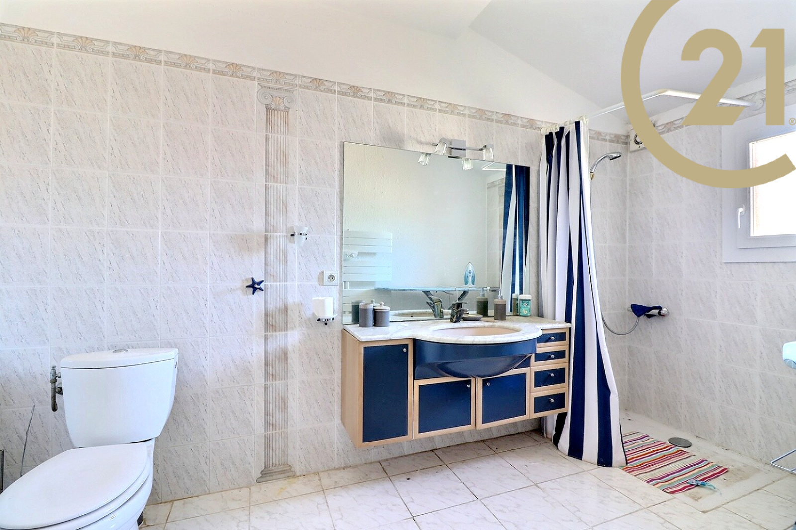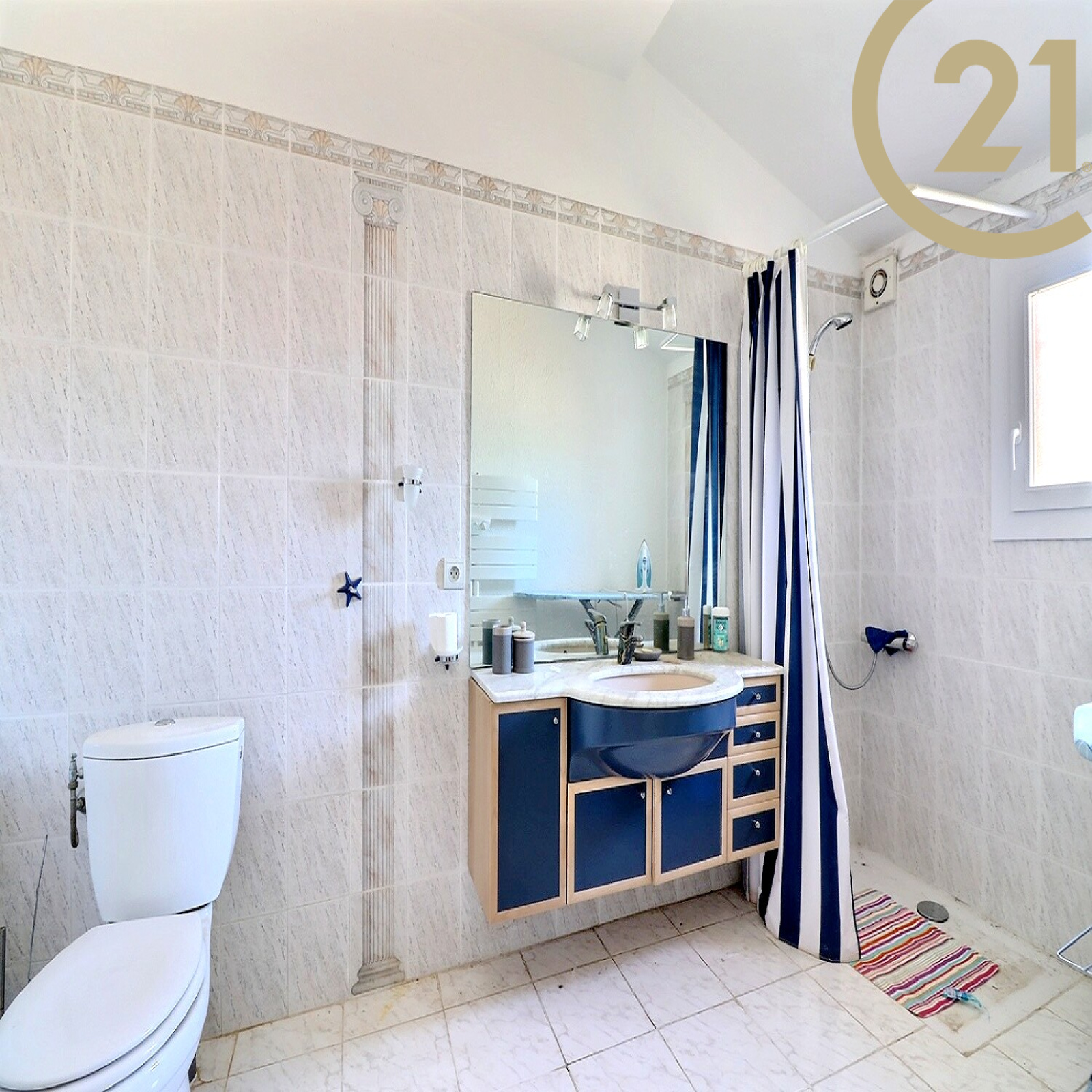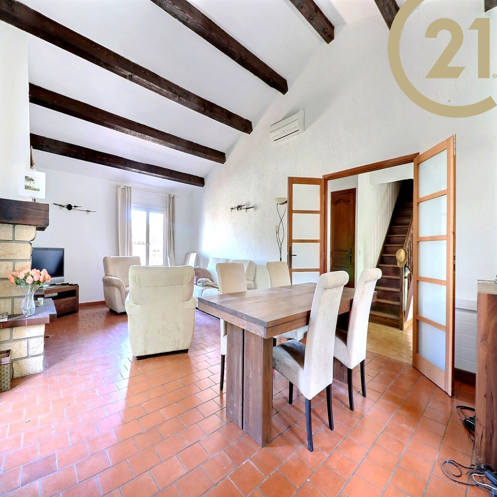 Elle se compose de plain-pied : d'un séjour, d'une cuisine séparée, de trois belles chambres dont une suite parentale avec salle d'eau et WC, d'une salle de bains avec douche et baignoire et d'un WC séparé.