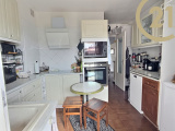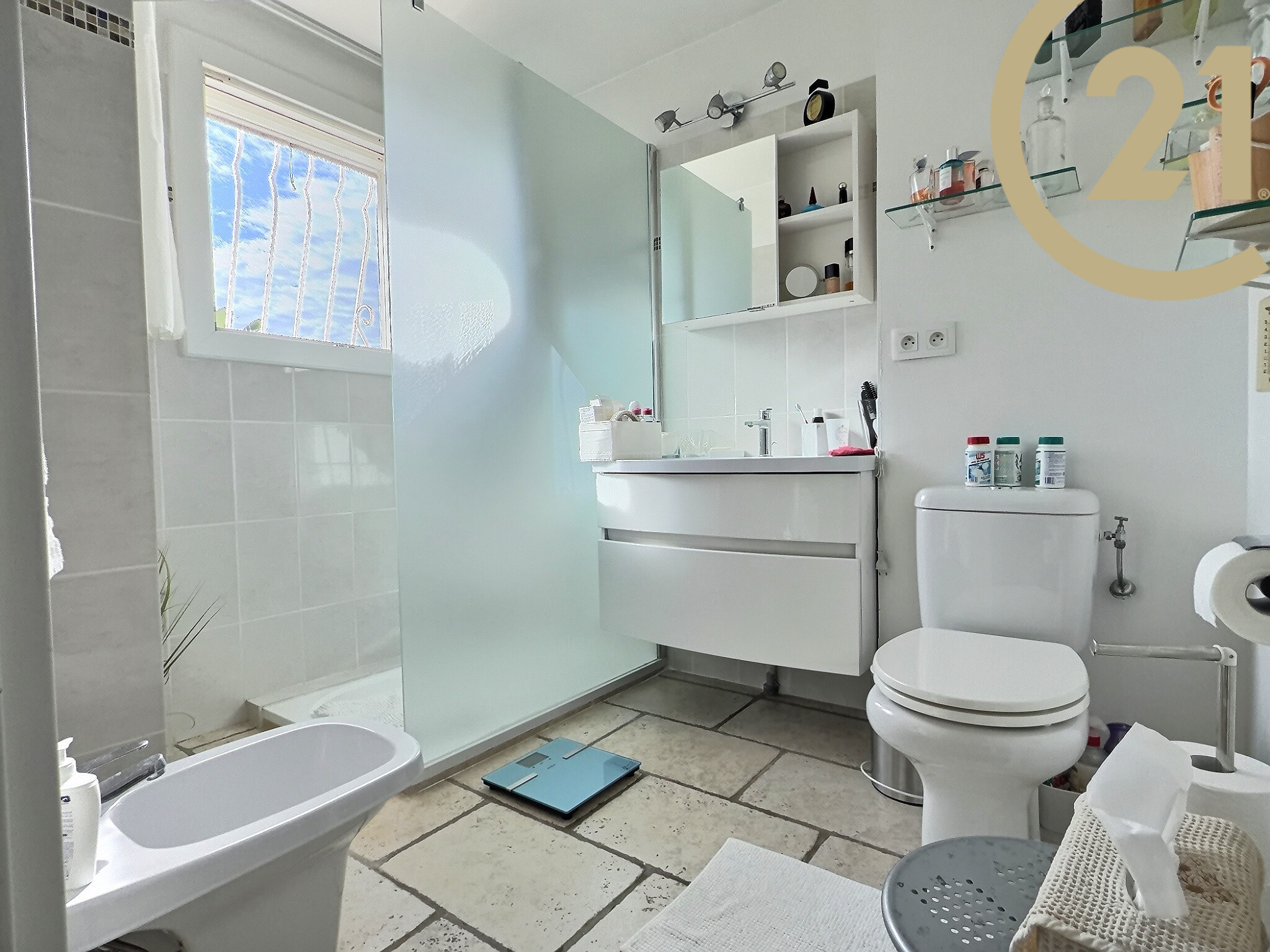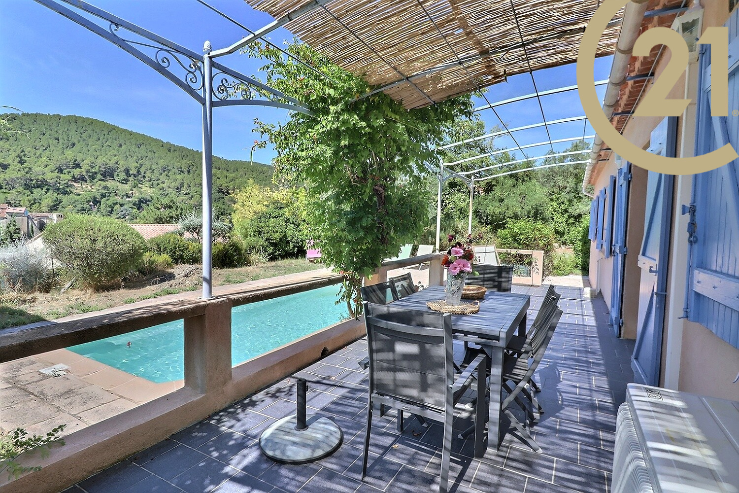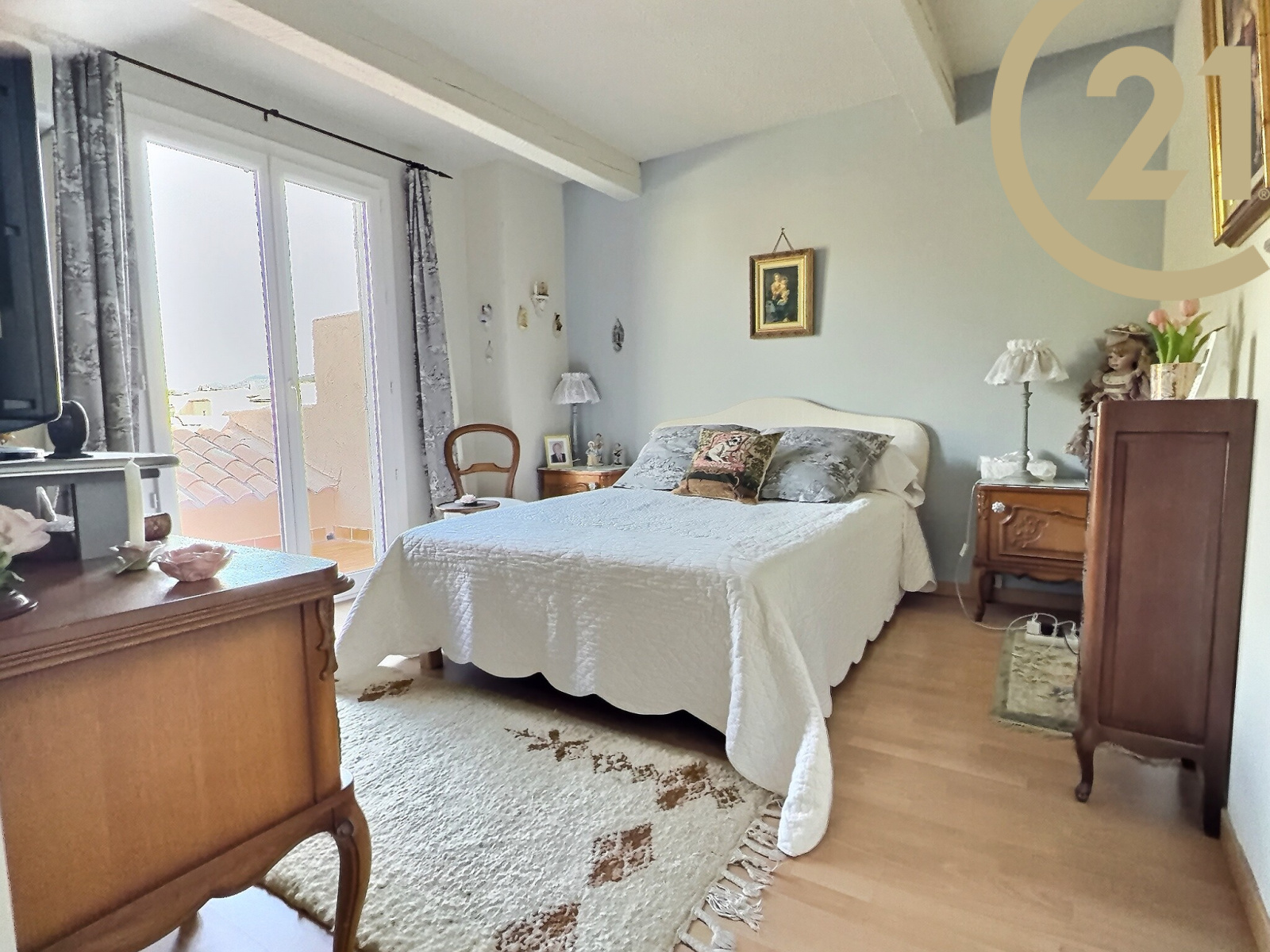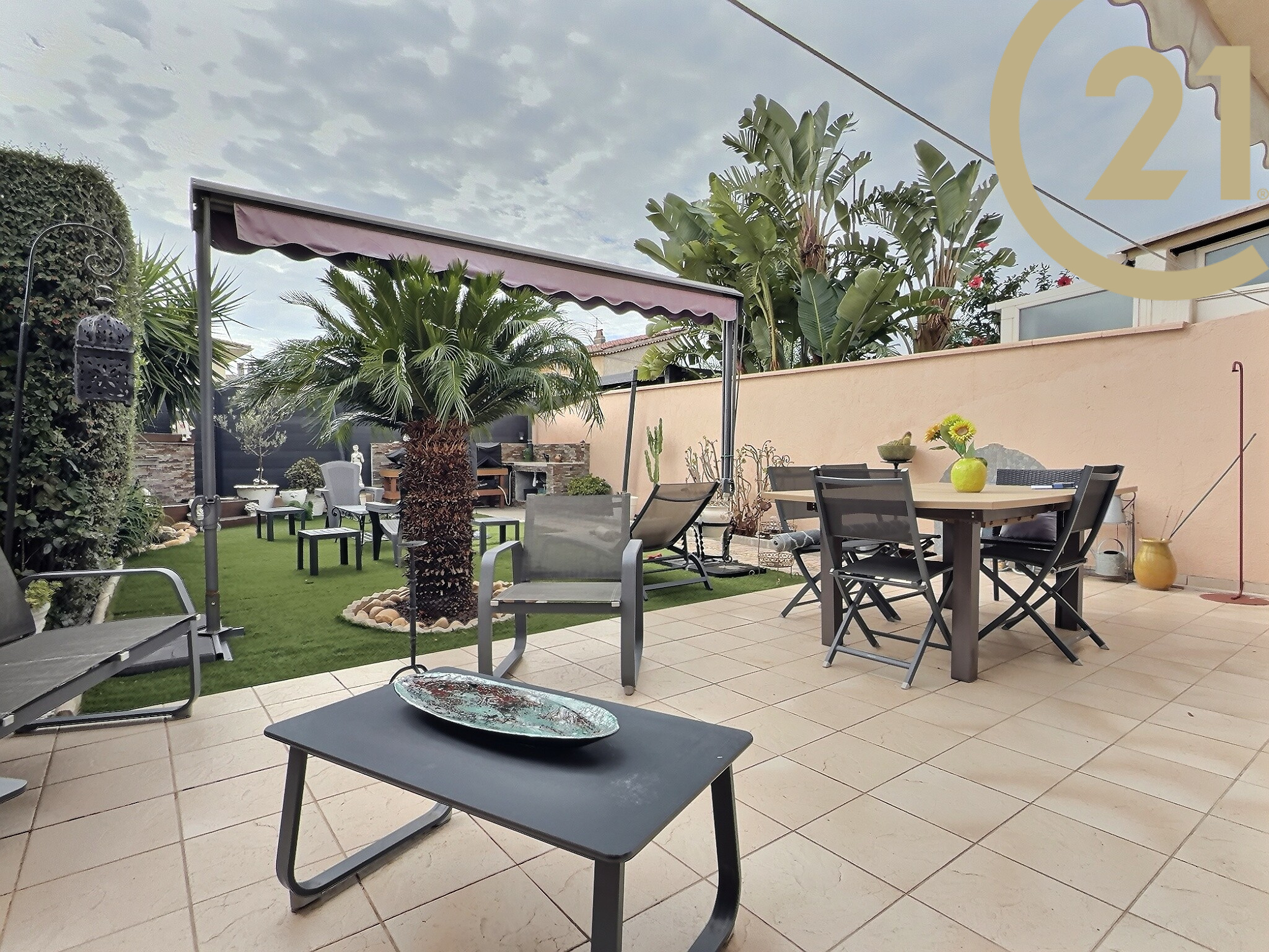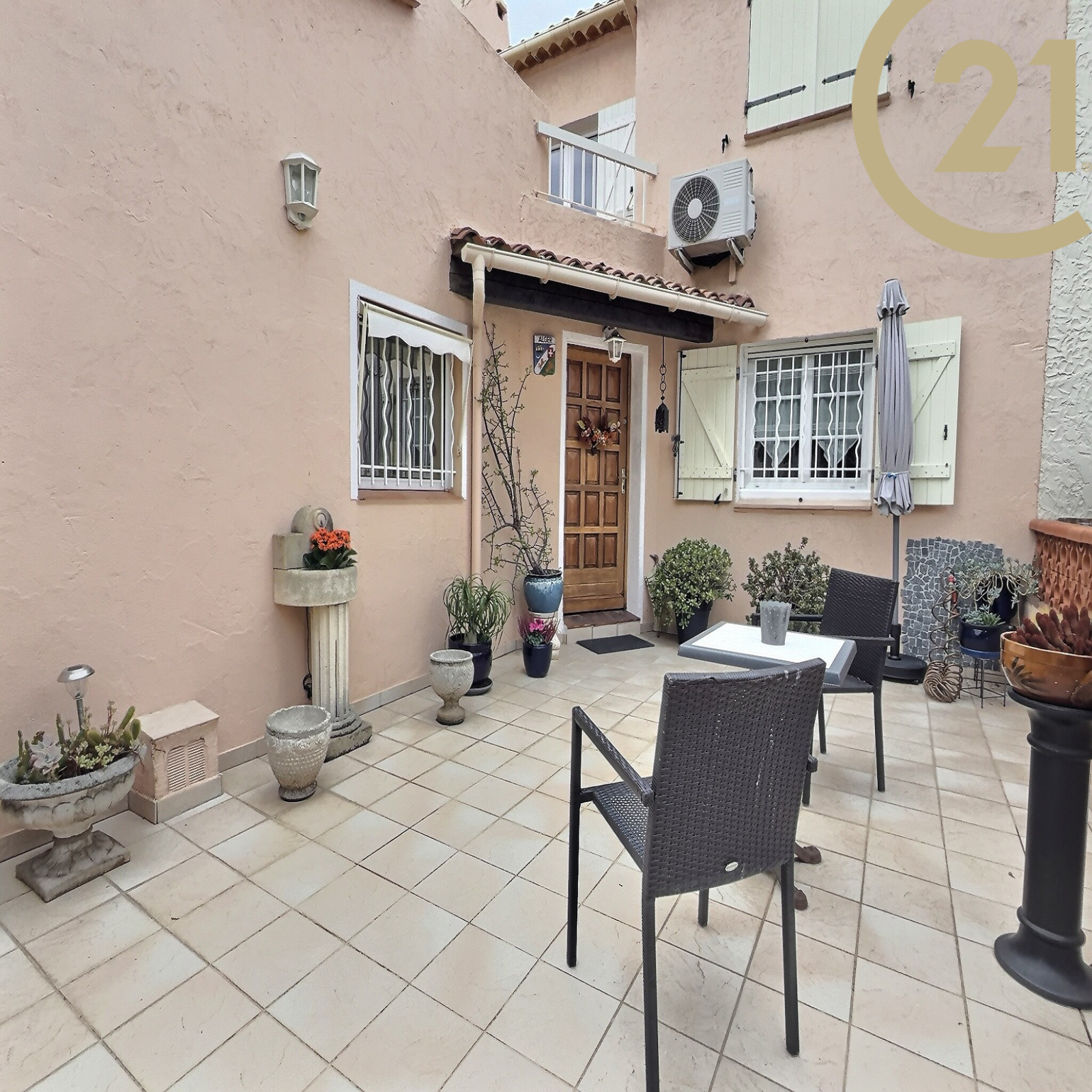 FREJUS MAISON, situé dans un domaine fermé, à mi-chemin entre la mer et la tour de Mare, jolie maison avec garage. Elle se compose de plain-pied d'une entrée donnant sur un beau séjour-salle à manger, une cuisine indépendante, une salle d'eau avec wc et un bureau. L'étage lui comprend 3 chambres dont une avec terrasse tropézienne et une salle d'eau avec wc. Vous pourrez profiter d'un splendide jardin de 80m² exposé SUD ainsi qu'une terrasse à l'ombre côté NORD. Un demi-garage et une cave en sous-sol complètent ce bien.