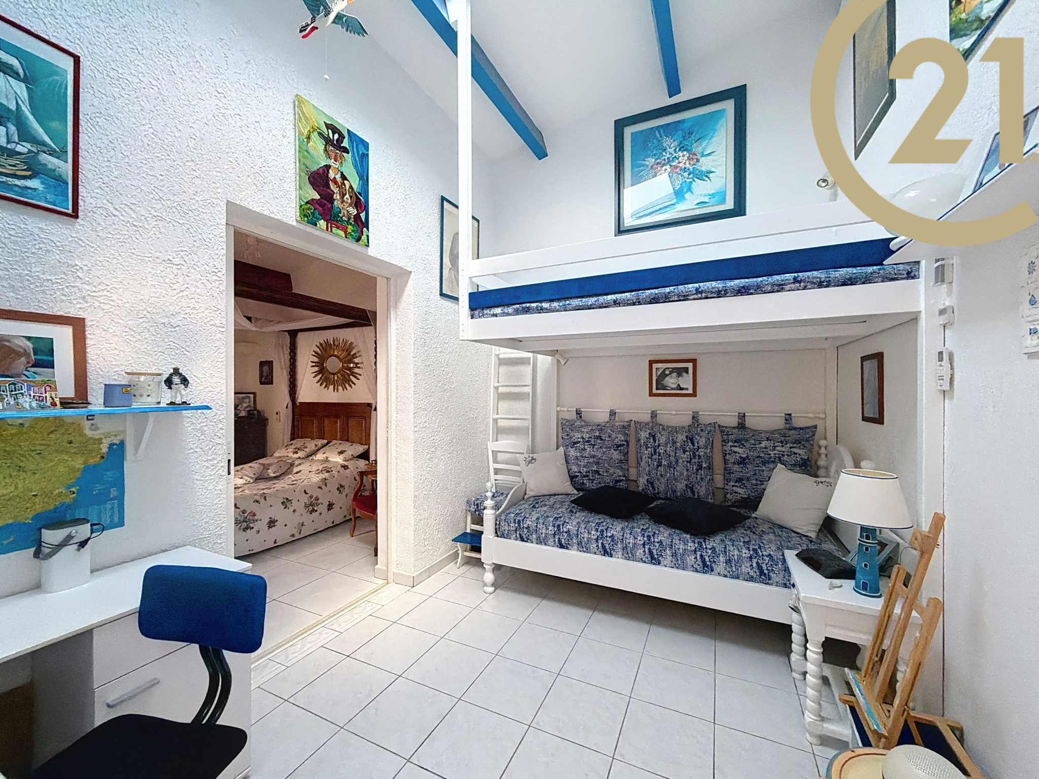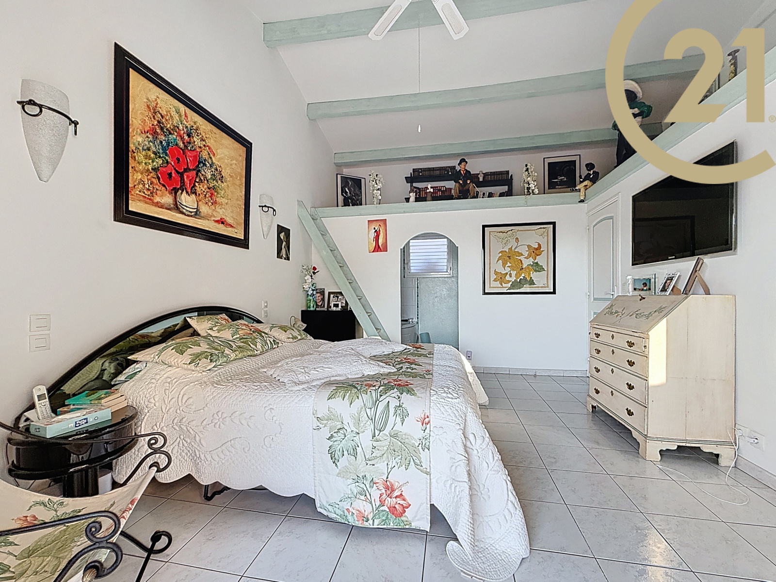 Celle-ci se compose d'une pièce de vie avec cuisine ouverte et une belle hauteur sous plafond, une arrière cuisine, deux chambres en enfilade, une salle d'eau avec WC et dressing, une chambre avec baignoire balnéothérapie et dressing et un WC indépendant.