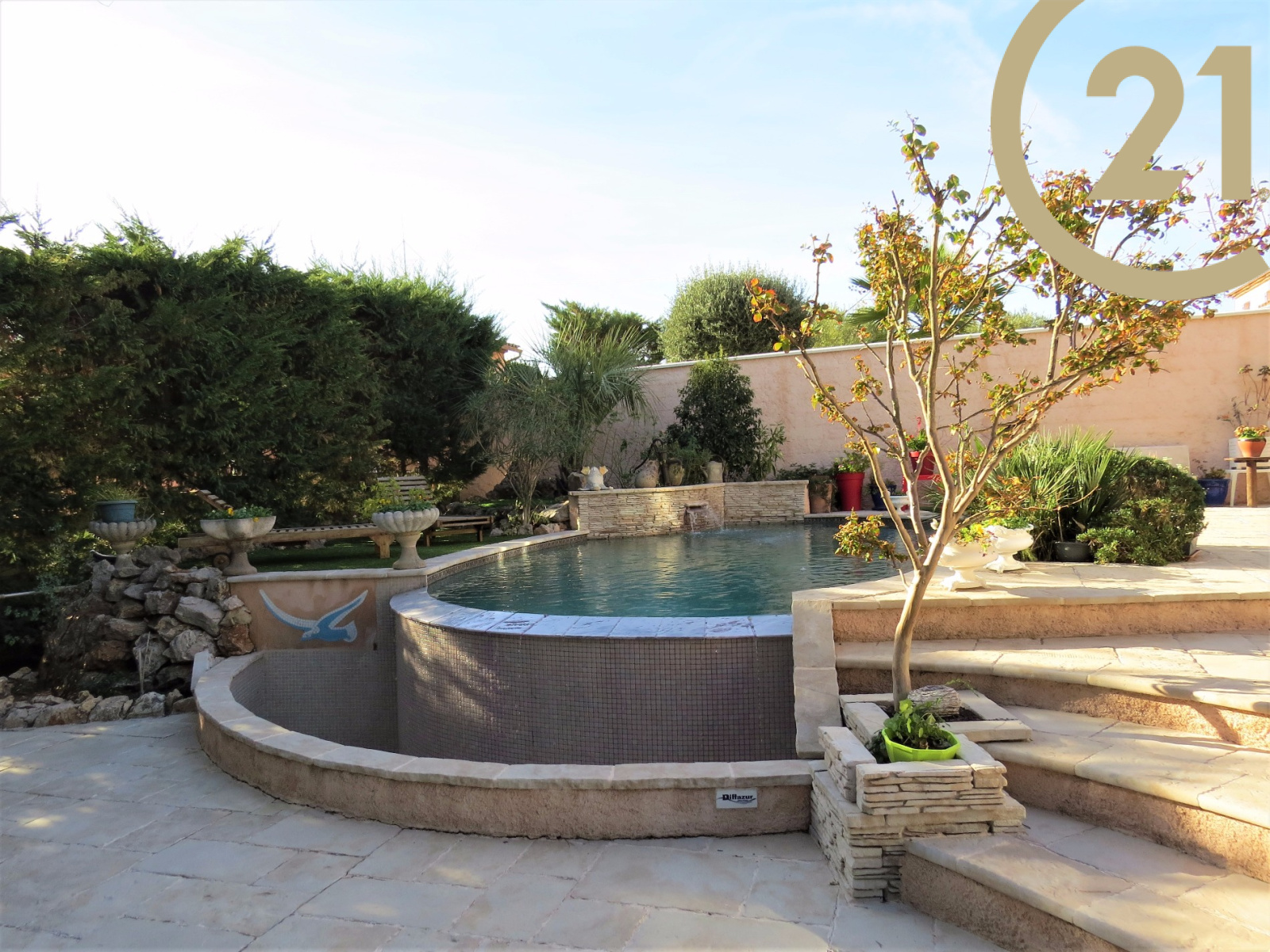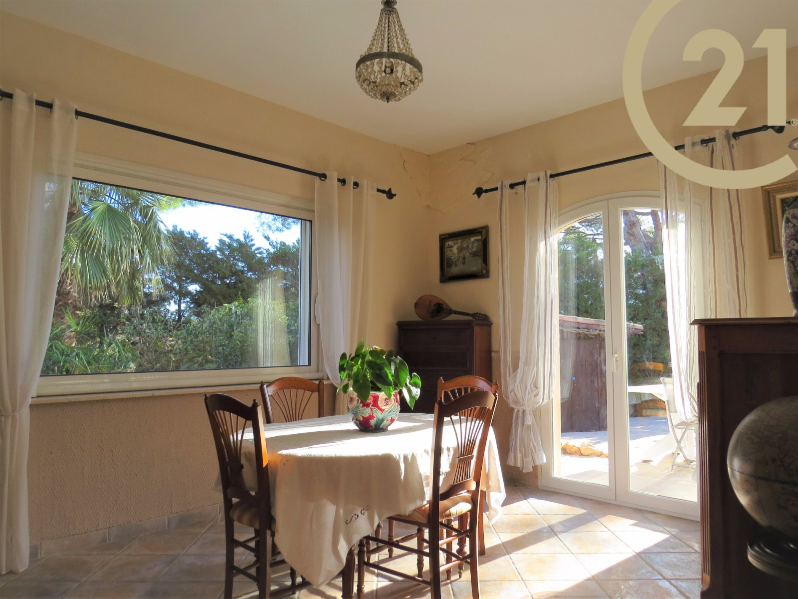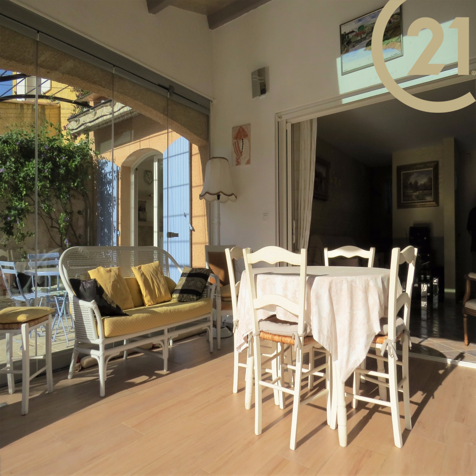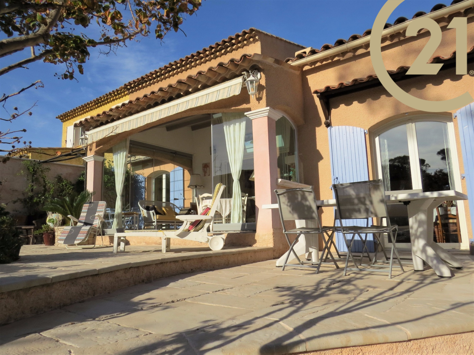 FREJUS - TOUR DE MARE - Charmante villa 4 pièces de 117 m² implantée sur un terrain soignement aménagé de 791 m² dans un quartier résidentiel de la Tour de Mare. Cette maison parfaitement entretenue offre de plain pied : un hall d'entrée, un spacieux séjour ouvert sur une veranda orientée plein sud avec vue sur piscine à débordement, une salle à manger offrant un accès à l'extérieur, une cuisine ouverte entièrement équipée avec cellier donnant sur une terrasse abritée par un store motorisé, une suite parentale comprenant une salle d'eau avec douche à l'italienne et des toilettes séparées. L'étage se compose de 2 chambres, d'une salle de bains/ salle d'eau et de toilettes séparées. Terrain nécessitant très peu d'entretien. Un abri voiture et un grand garage motorisé avec mezzanine viennent compléter ce bien. Belles prestations : baies à galandage, chauffage au sol, volets roulants électriques. Aucun travaux à prévoir. Copropriété de 2 lots. Pas de charge annuelle.